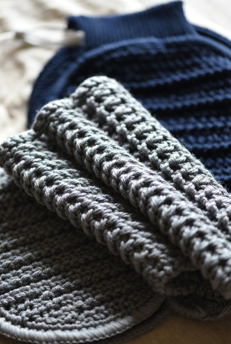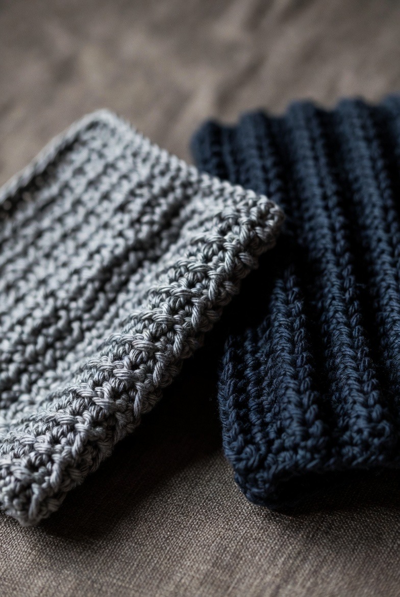 For those who prefer a more rustic, understated look, the ribbed face cloth (created using back-loop-only stitches) is a classic. The ridges in the fabric act as “micro-exfoliators” that gently sweep away dead skin cells without the need for heavy pressure. This design is highly elastic and absorbent, holding onto warm water for a long time, perfect for a “hot cloth cleanse” where you let the steam open your pores. In a slate grey or a deep navy, these cloths look masculine and sophisticated, proving that handmade self-care is for everyone.