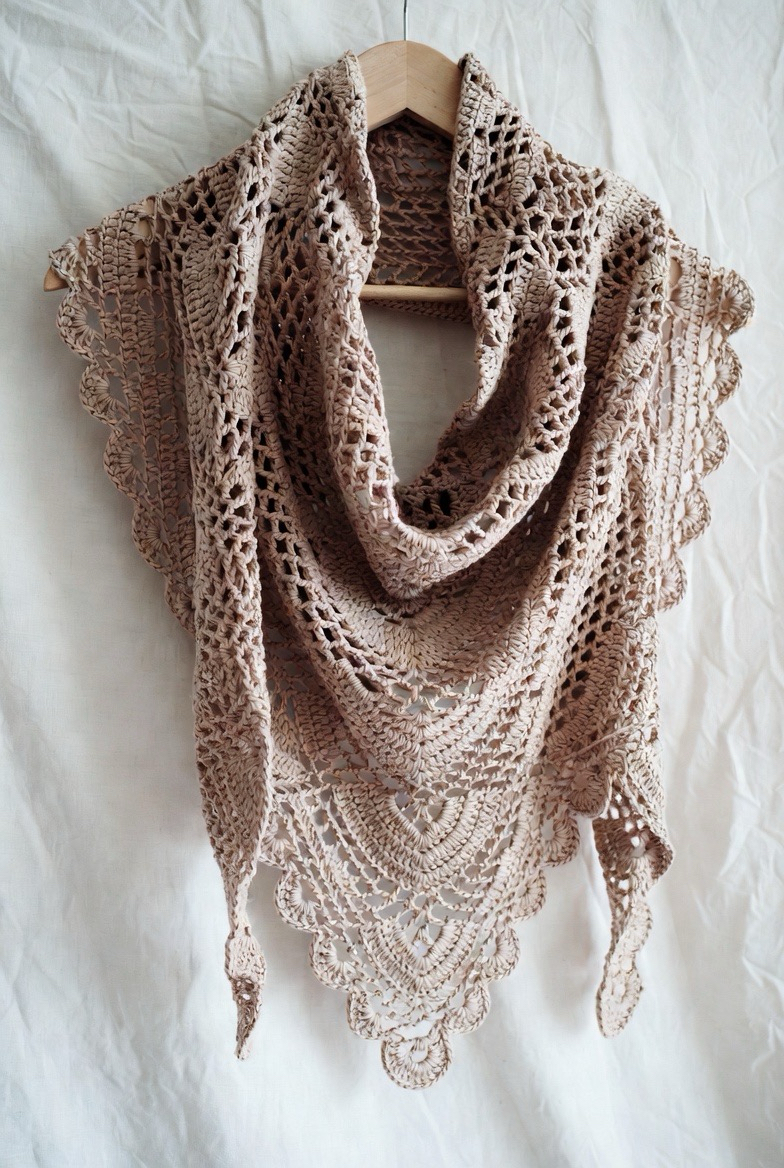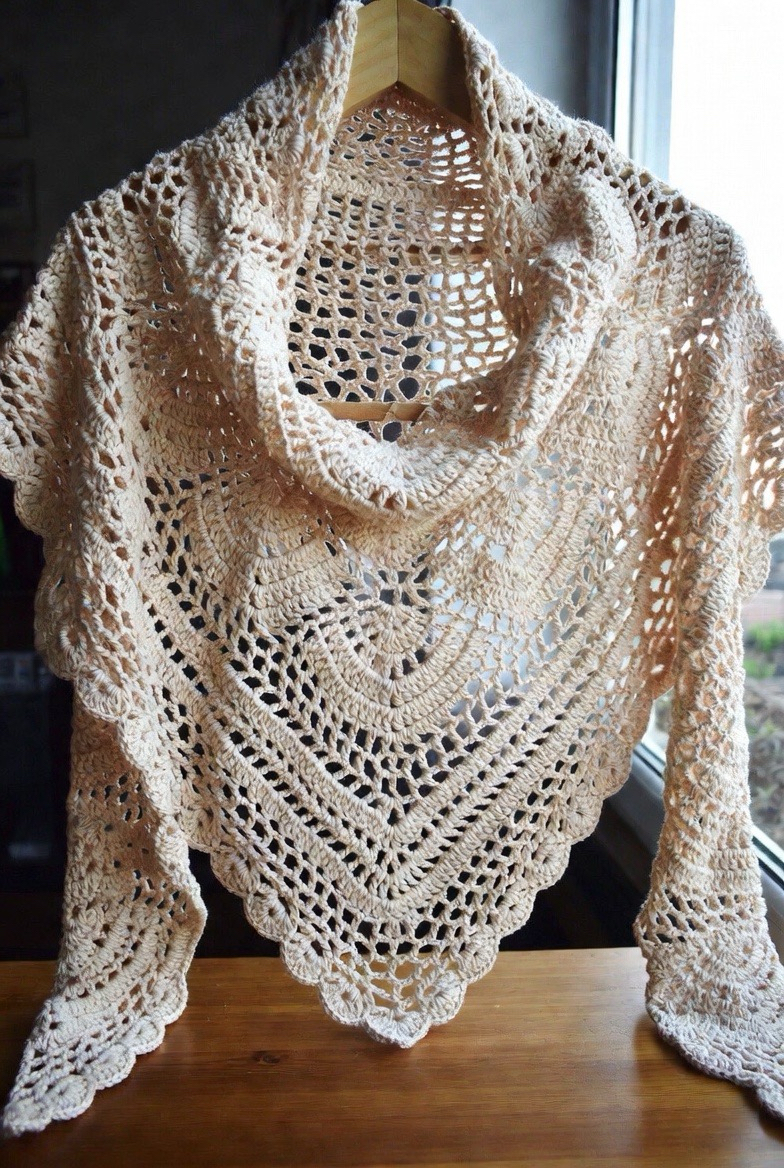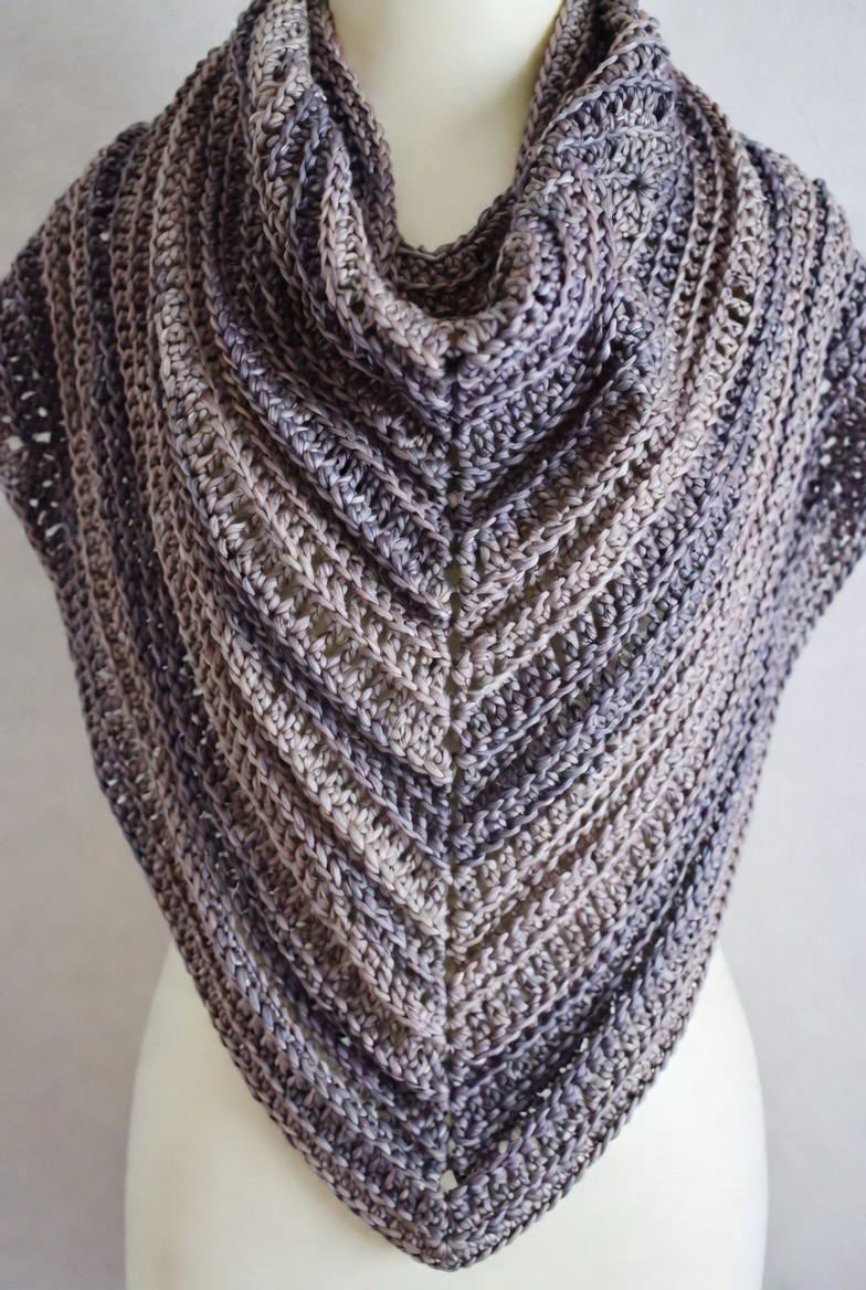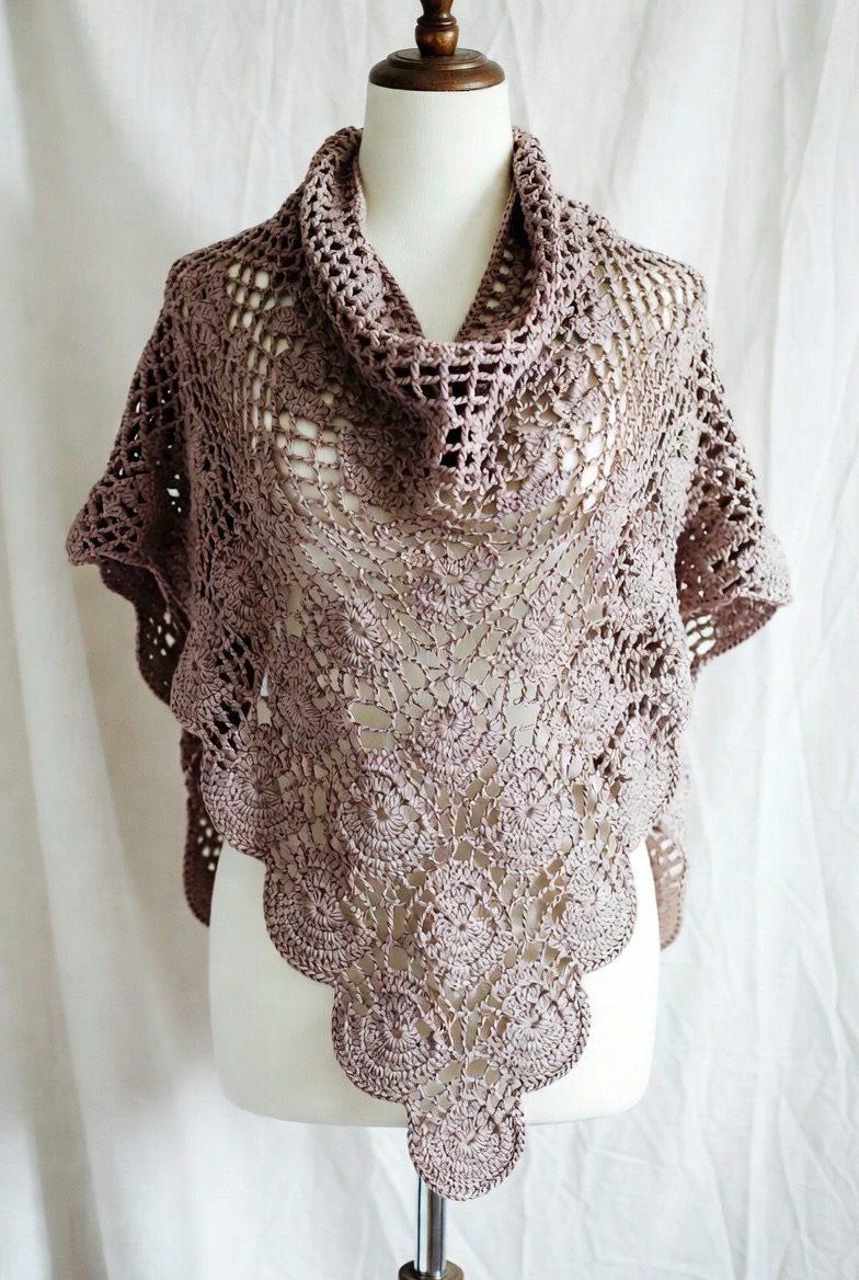 A classic triangle lace shawl is a timeless staple in any crochet wardrobe. This style uses lightweight yarn and openwork stitches that create a delicate, romantic look. The beauty of this design is in its drape, it falls effortlessly over the shoulders and feels elegant without being heavy. Perfect for spring and summer evenings, lace triangle shawls often feature shells, fans, or floral motifs that add visual interest. You can wear it with dresses, casual outfits, or even layered over a tank top. It’s an ideal pattern for crocheters who love graceful textures and feminine details.