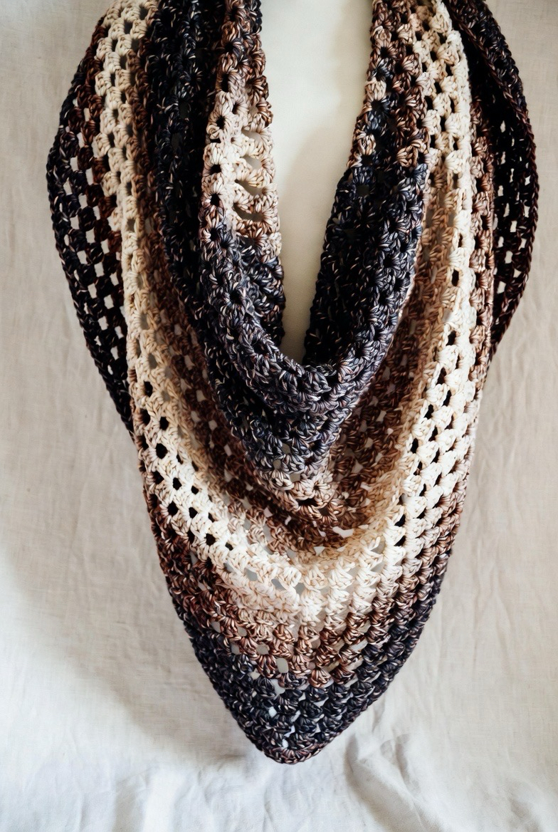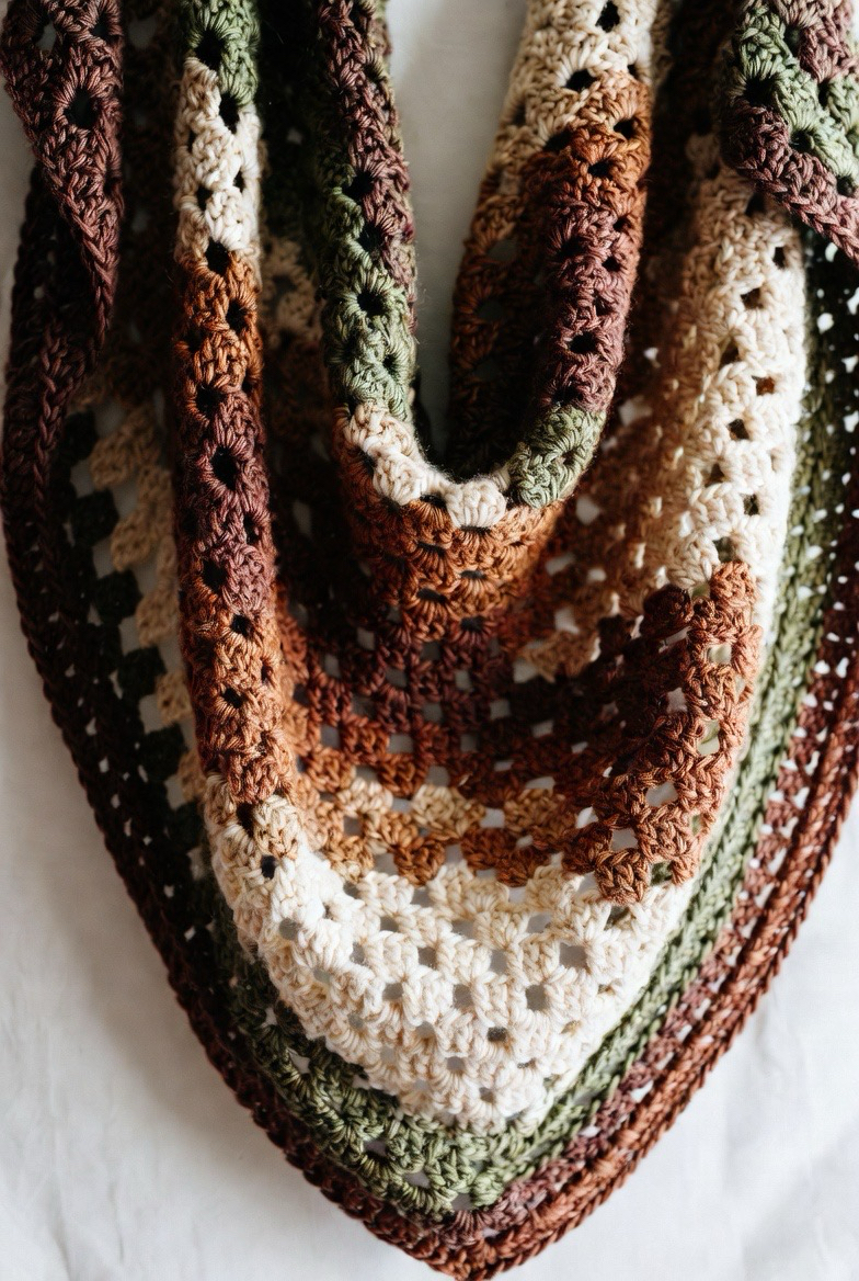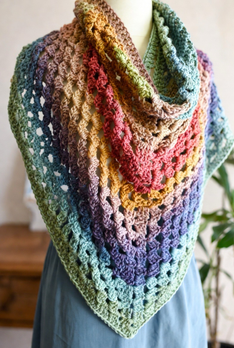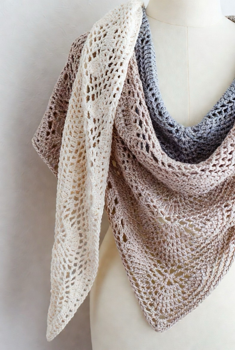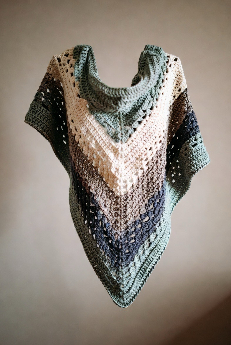 The granny stitch shawl brings nostalgic charm with a modern twist. Using clusters of double crochets, this shawl builds rich texture and beautiful color transitions. It’s perfect for scrap yarn projects or gradient cakes, allowing the colors to shine naturally. The structure gives warmth while still feeling light and breathable. This type of shawl works beautifully for fall layering and adds cozy personality to simple outfits. The granny stitch also makes it beginner-friendly while still producing a polished, boutique-style finish. It’s a wonderful blend of comfort, tradition, and style.