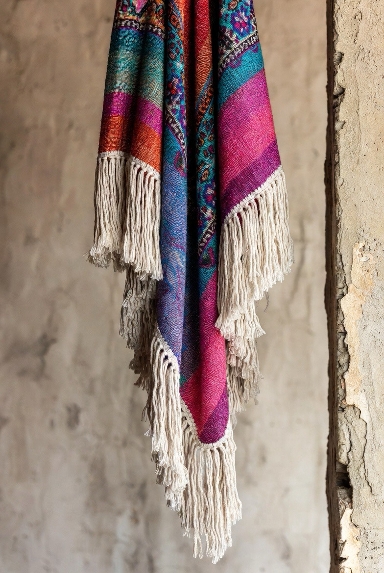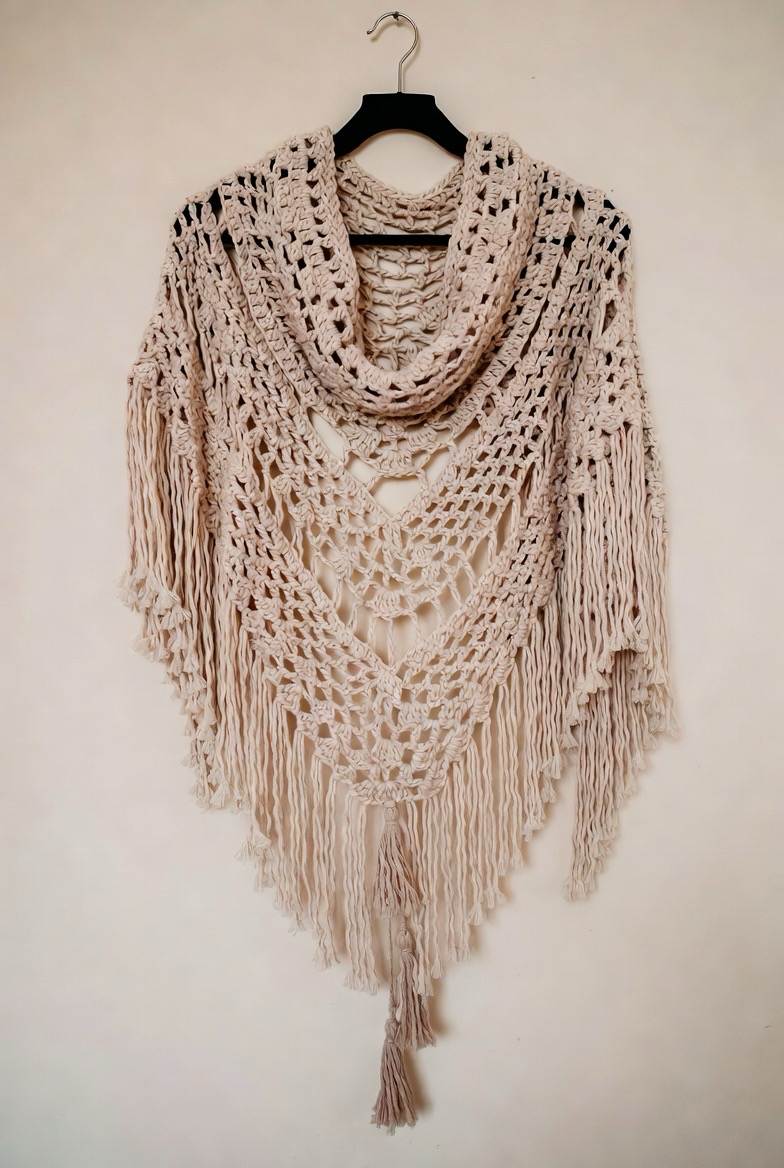 A bold triangle shawl with dramatic fringe brings instant personality to any outfit. This style feels playful, stylish, and a little edgy. The fringe adds movement and texture that turns a simple shawl into a standout piece. It’s perfect for boho fashion lovers and layered looks. Wear it over denim jackets, dresses, or cozy sweaters. This shawl style makes your handmade work look trendy and fashion-forward with minimal effort.