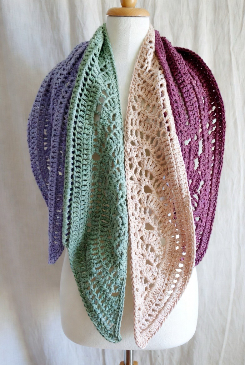 Crescent shawls curve gently around your shoulders, offering a flattering, comfortable fit. They’re perfect if you don’t like shawls slipping off. The shaping hugs the body beautifully and feels secure without needing pins. These shawls often use lace or textured stitches that follow the curve of the design. They look elegant and refined, especially in soft colors. Crescent shawls are excellent for both everyday wear and special occasions. They combine practicality with graceful style.