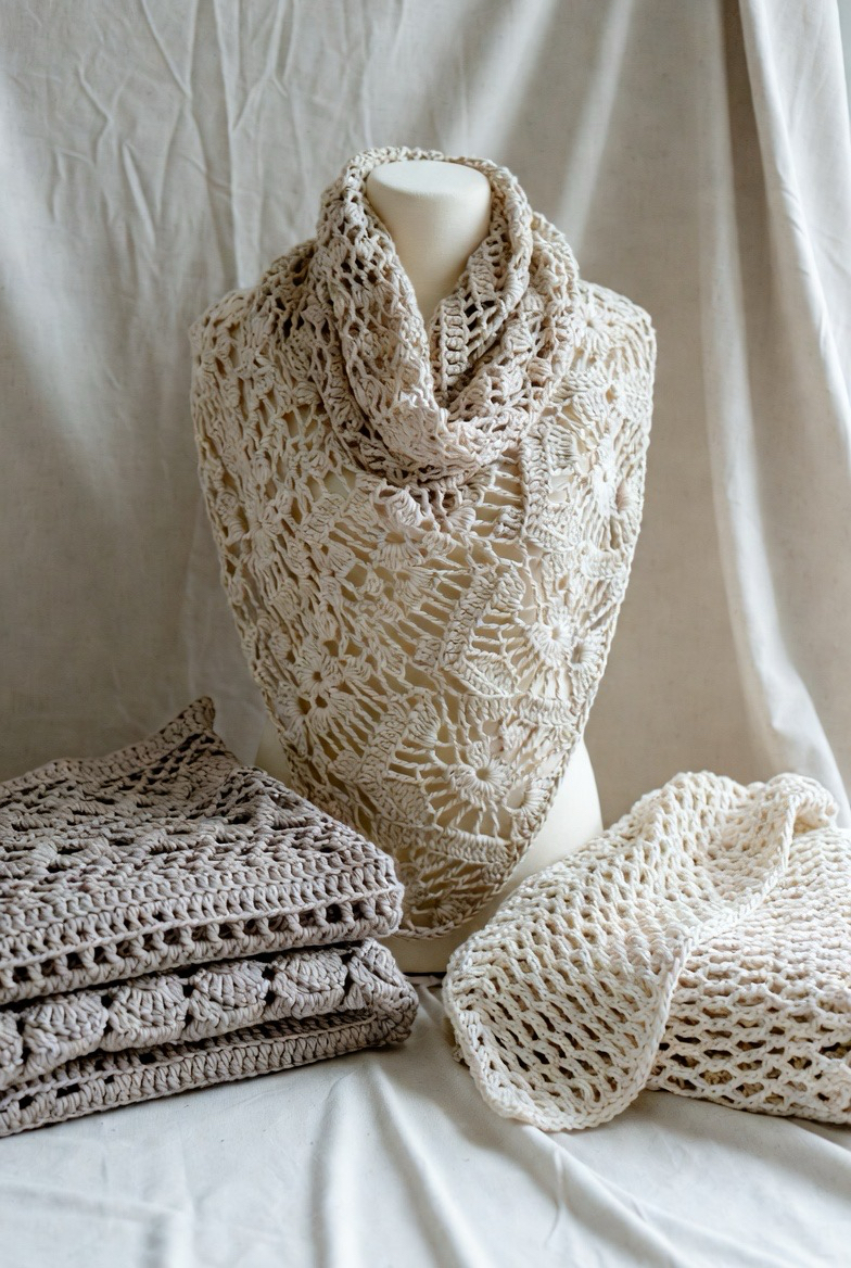 Mesh shawls are perfect for hot weather and breezy layering. Using chain spaces and open stitches, these shawls feel airy and barely there. They’re ideal for beach days, vacations, and warm evenings. The design allows airflow while still adding a stylish layer to your outfit. Mesh shawls work beautifully with cotton or bamboo yarns for maximum comfort. This style is great for beginners who want a quick project with impressive results. It’s simple, elegant, and endlessly wearable.