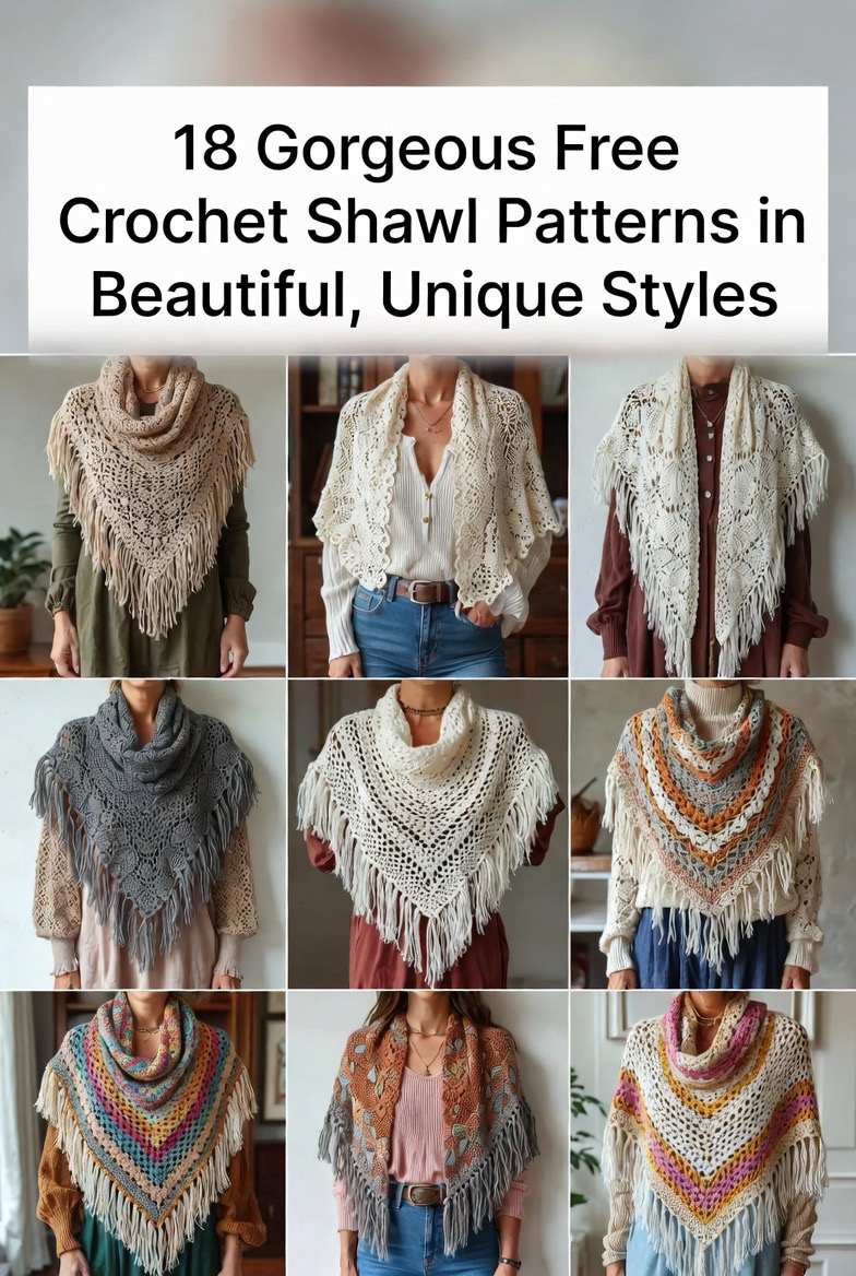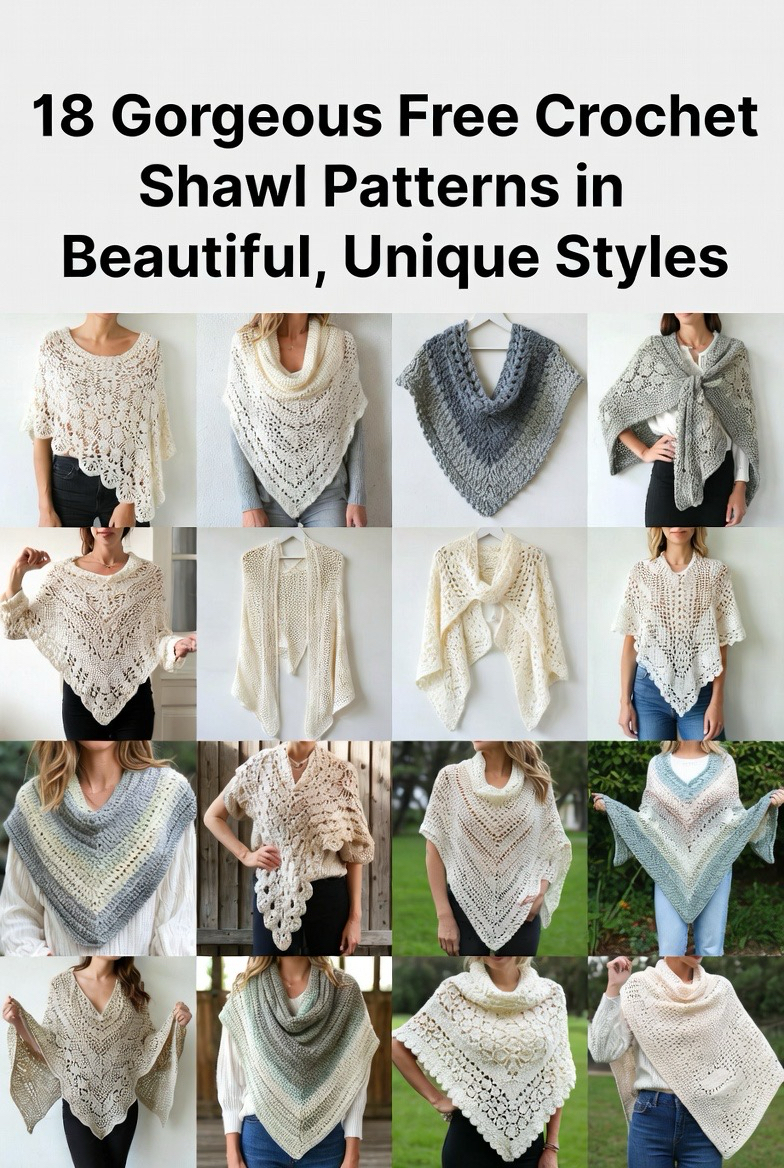 Crochet shawls are one of the most versatile and rewarding projects you can make. From airy lace to chunky warmth, from boho fringe to modern minimalism, there’s a style here for every season and every personality. These 18 gorgeous free crochet shawl patterns prove that handmade can be just as stylish as anything store-bought, and even more meaningful. Whether you’re crocheting for yourself or as a gift, shawls offer beauty, comfort, and creative joy. Pick your favorite style, grab your yarn, and start stitching your next masterpiece today 🧶✨