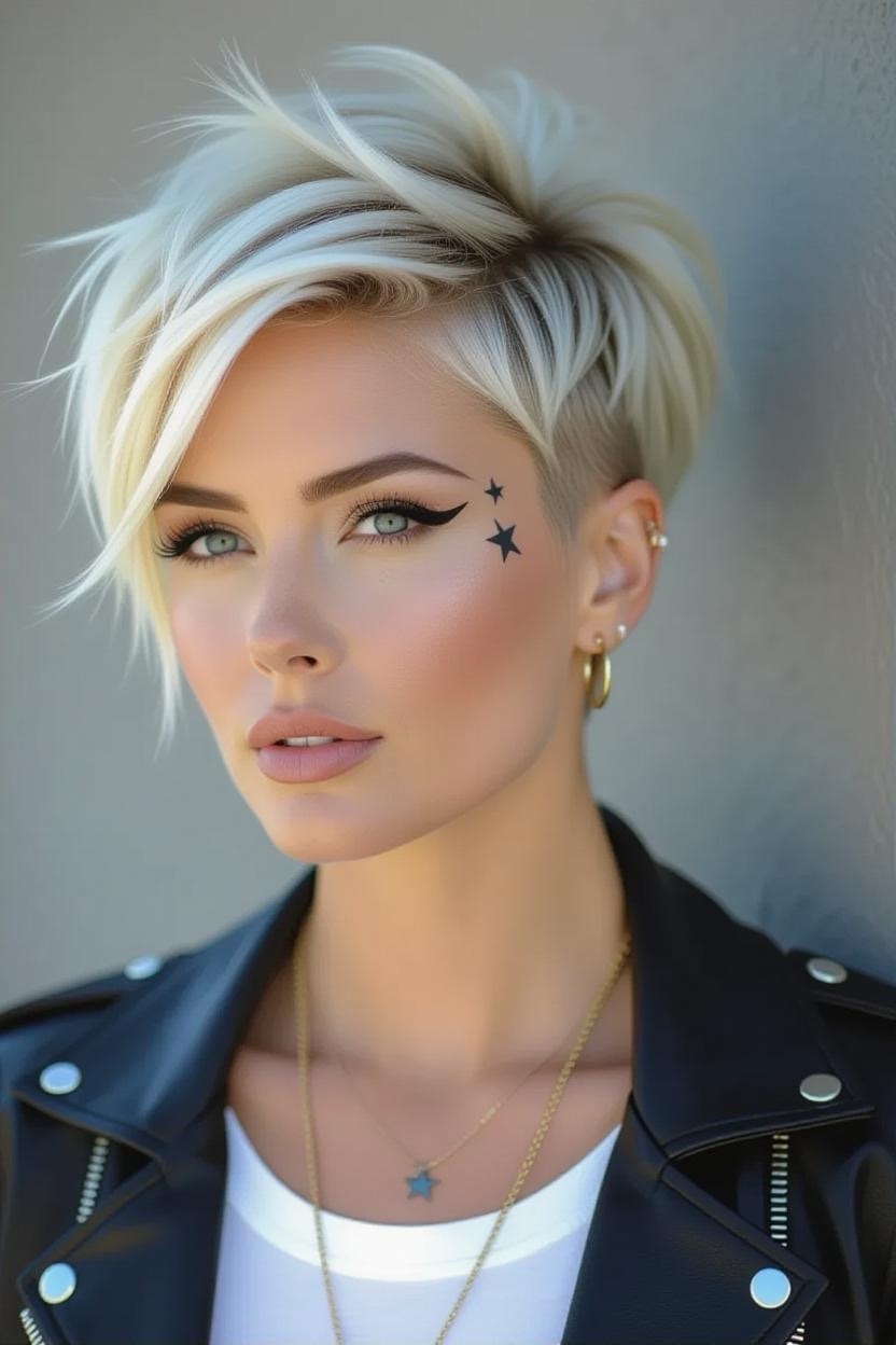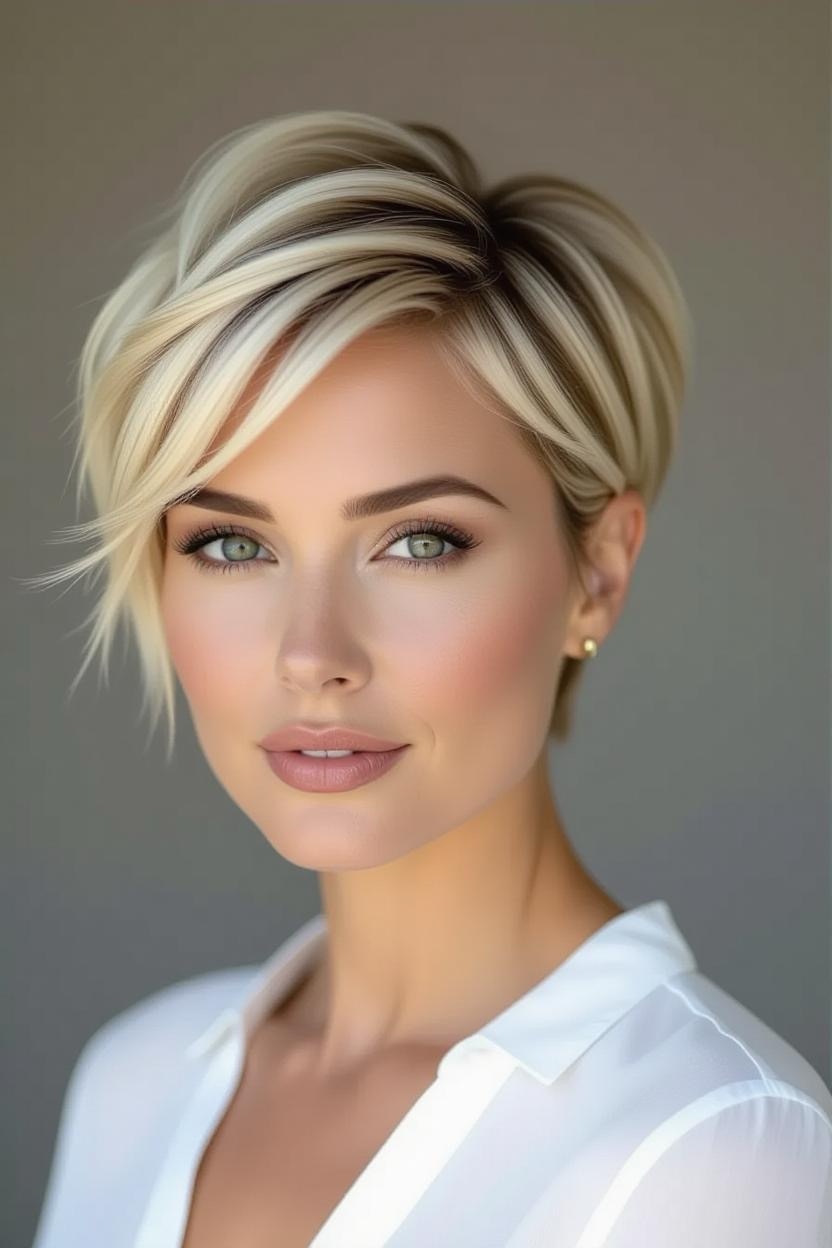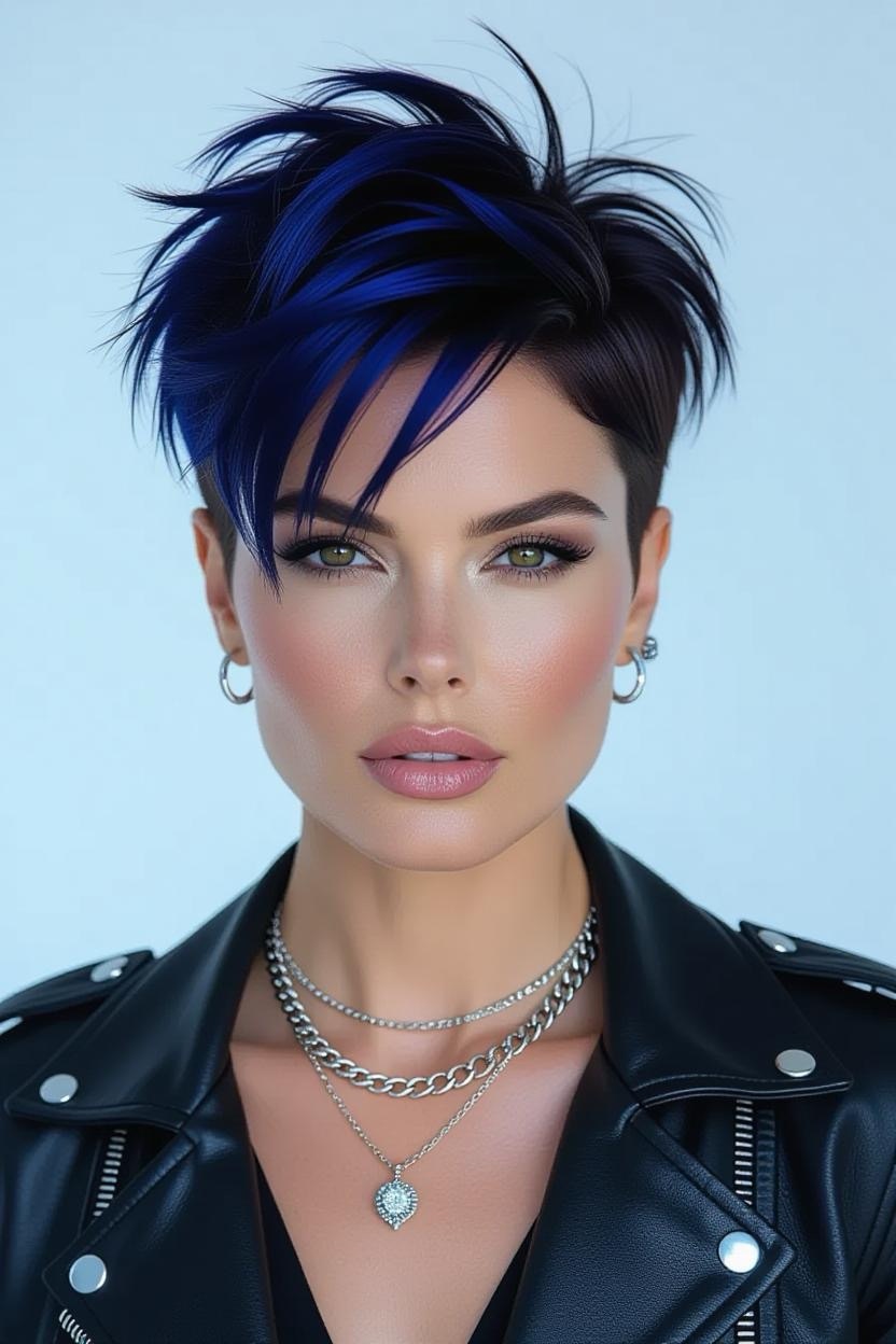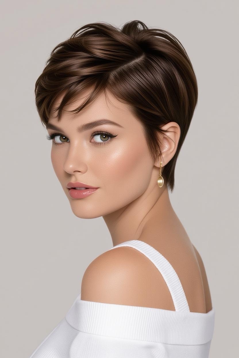 Bold and fierce, shaved sides give your pixie an instant rocker vibe. The thick top contrasts beautifully with sleek sides, creating a dramatic yet stylish look.
