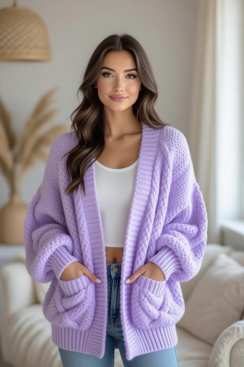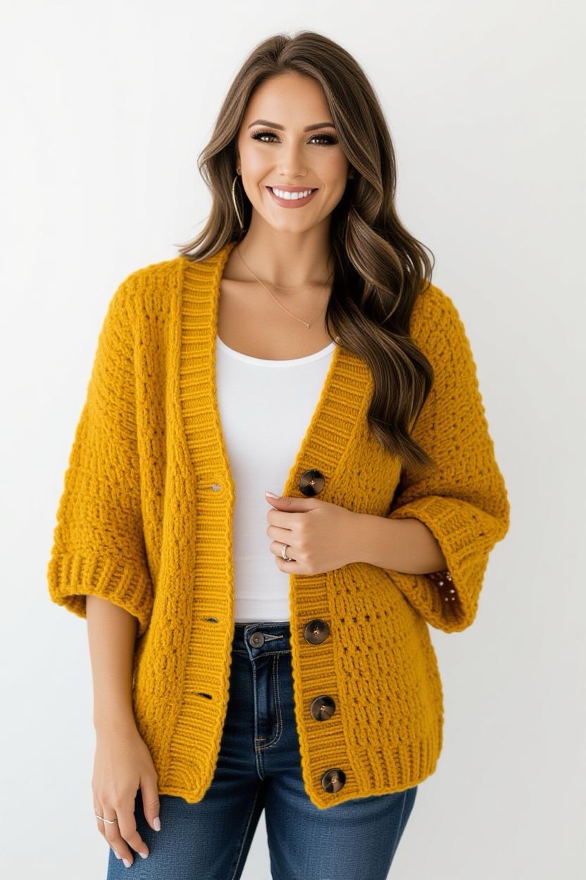 If you’re all about coziness, a chunky oversized cardigan is the way to go. Made with bulky yarn, this design works up quickly and results in a soft, slouchy sweater you’ll never want to take off. It’s ideal for layering in cold weather, and you can experiment with textured stitches for extra warmth.