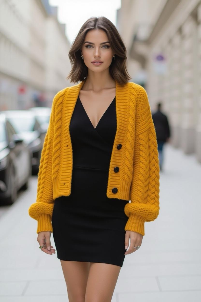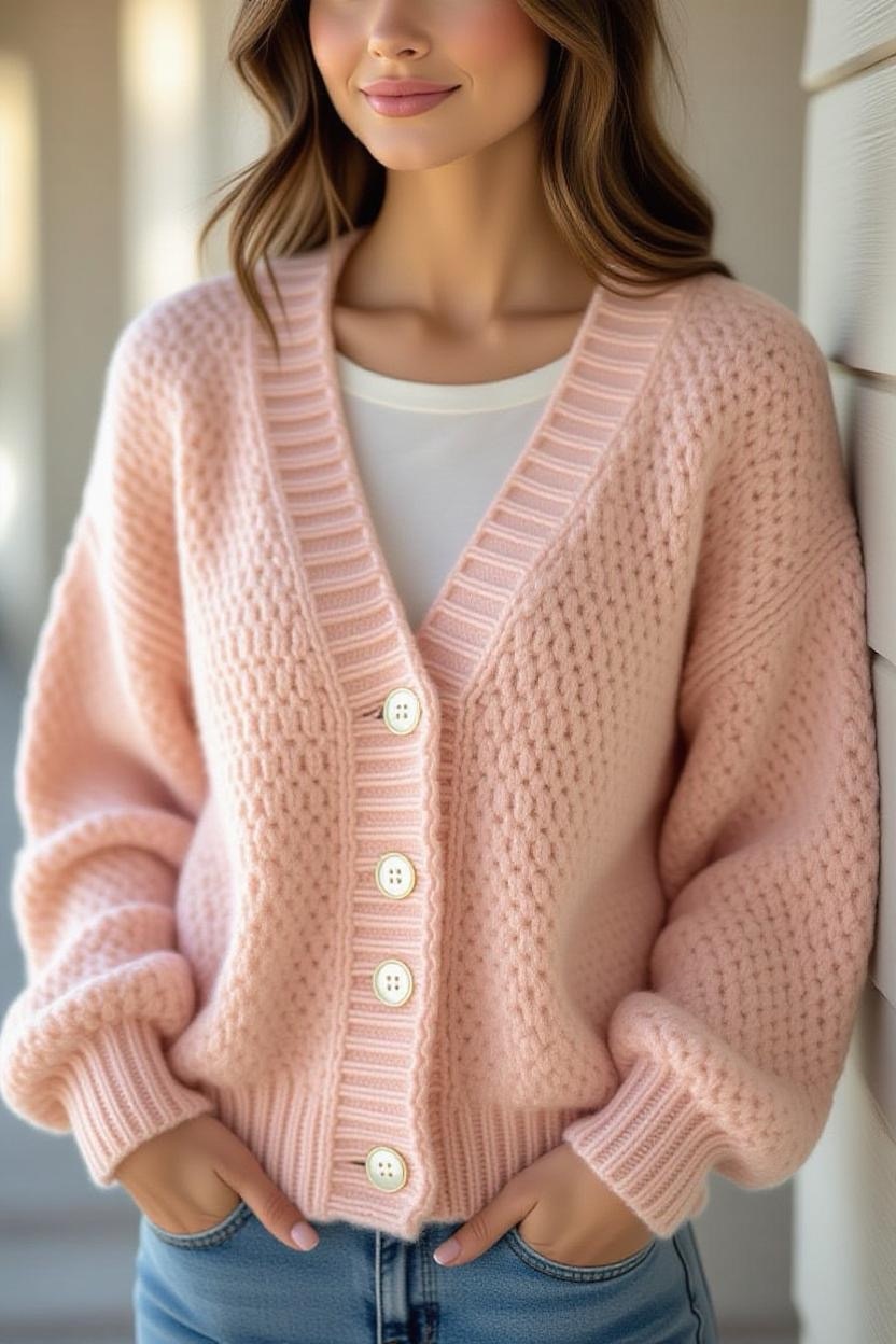 Sometimes, simplicity is the ultimate statement. A solid-colored cardigan in black, white, or gray fits seamlessly into any wardrobe. This minimalist design focuses on clean construction, ensuring it’s versatile for all outfits.