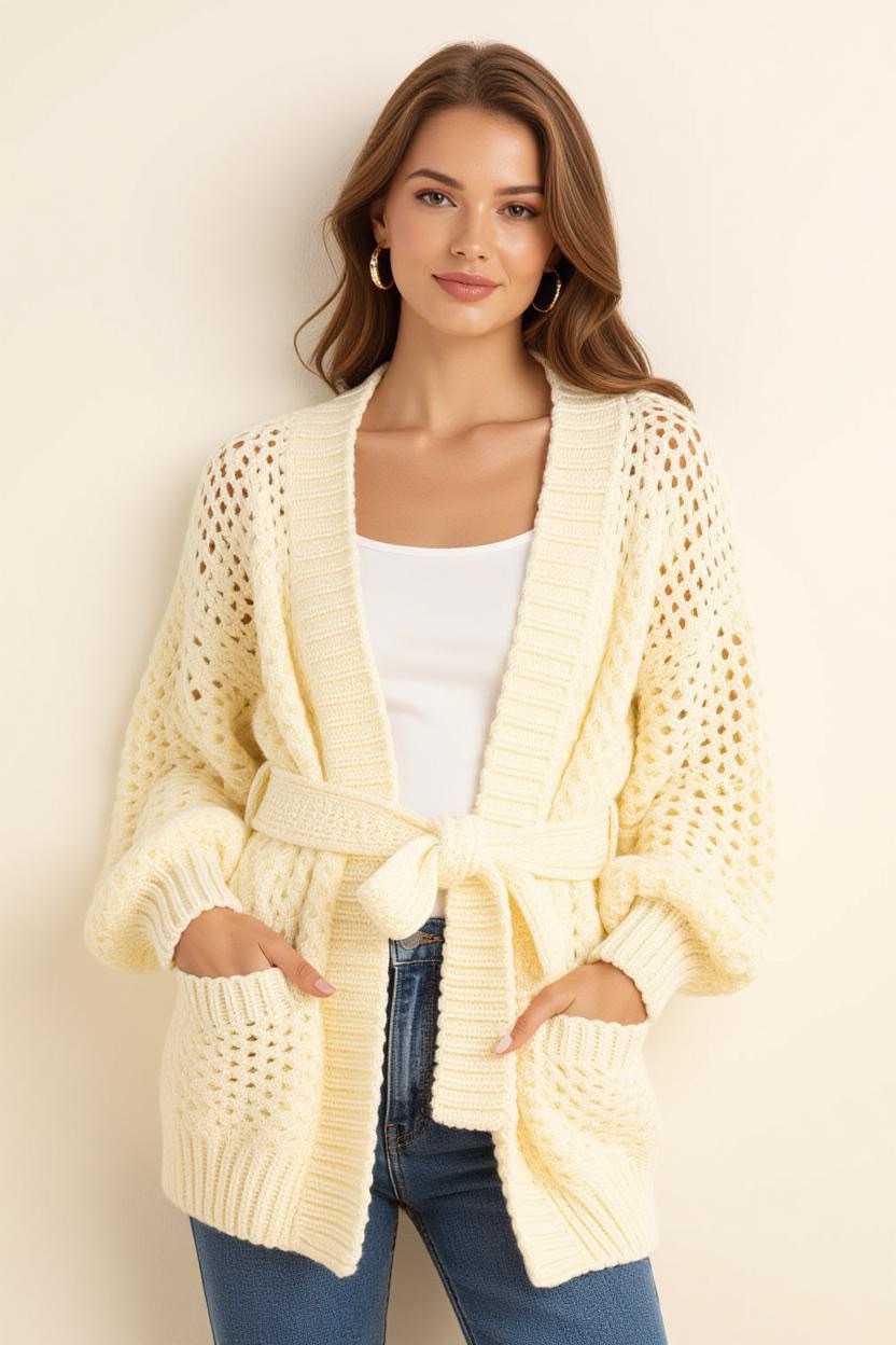 This cardigan features a belt tie, giving it a polished look while allowing you to adjust the fit. It’s a versatile piece that works for office wear as well as casual outings. The belt also adds structure to looser designs, making it flattering on different body types.
