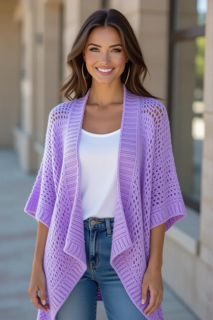 Perfect for warmer months, this pattern uses cotton yarn to create a breathable, airy cardigan. Its open design makes it easy to throw over tank tops, dresses, or swimsuits. Go for pastel shades or bright pops of color to keep it playful and fresh.
