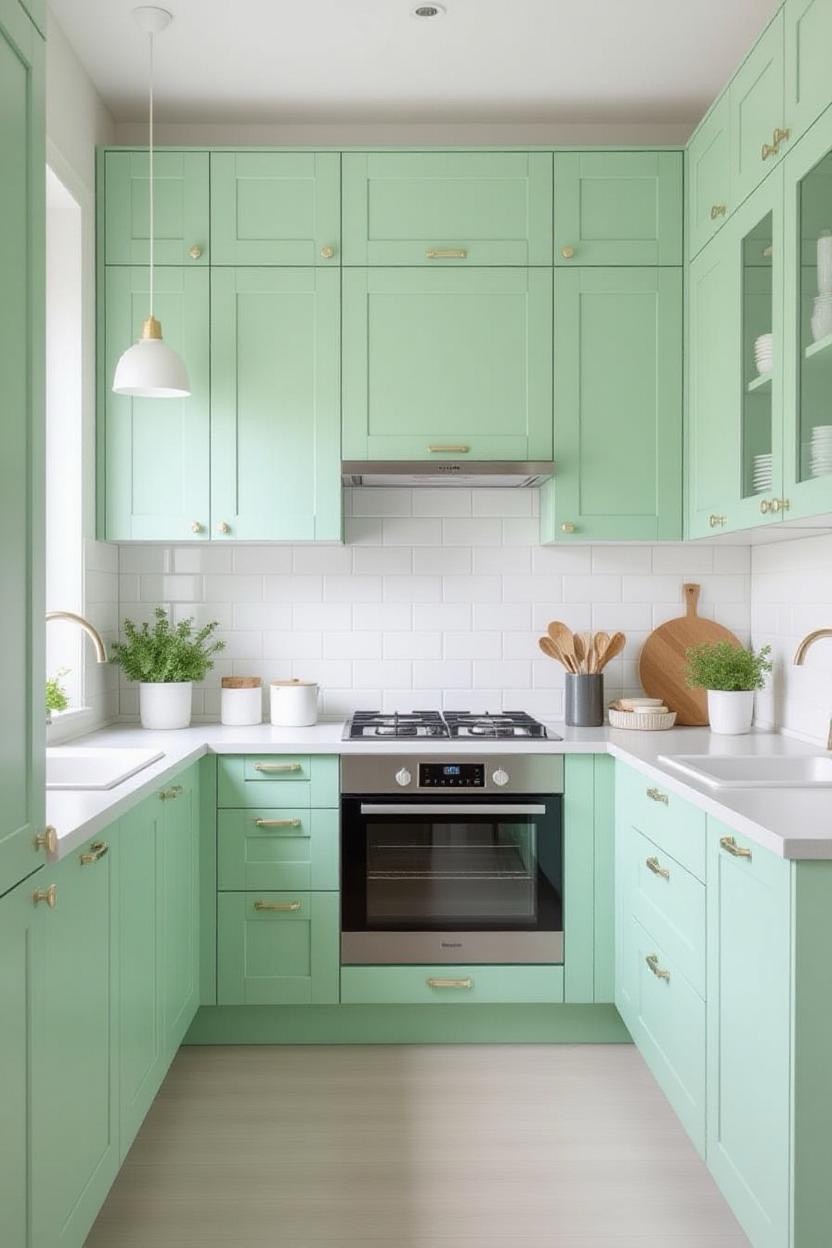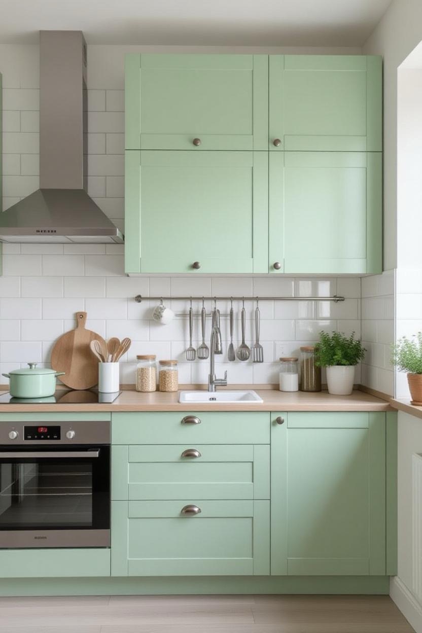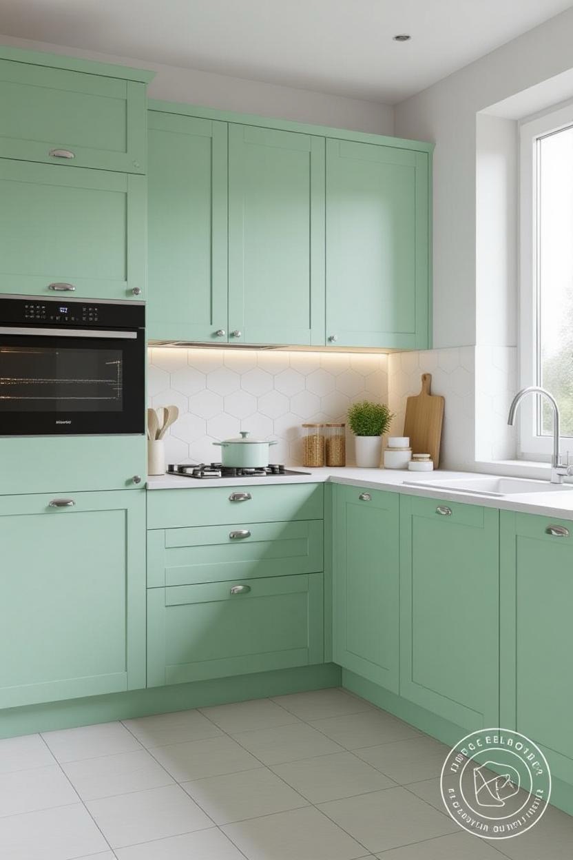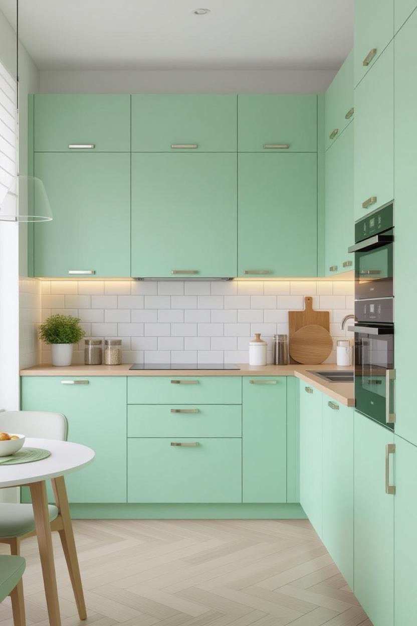 A pastel green palette works beautifully in minimalist kitchens, offering color without overwhelming the simplicity of the design.