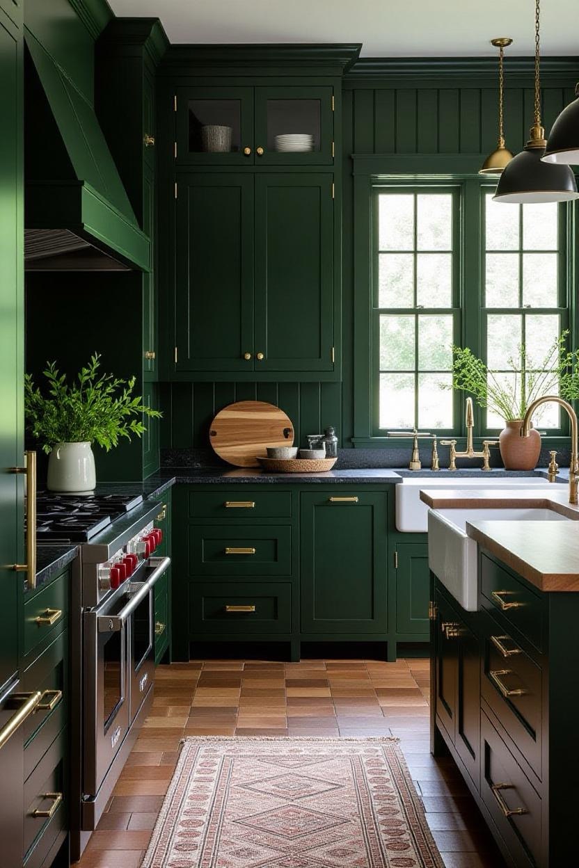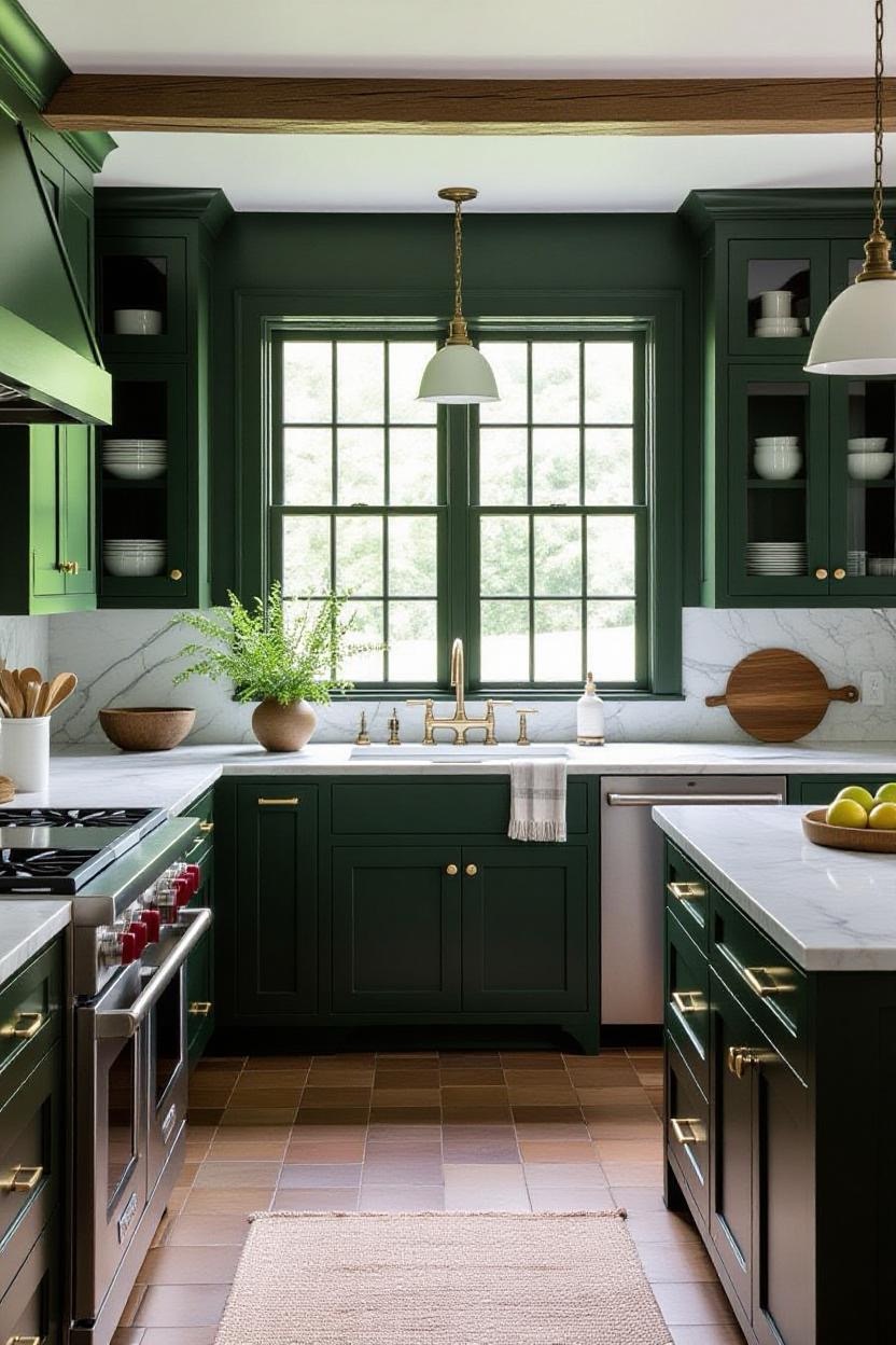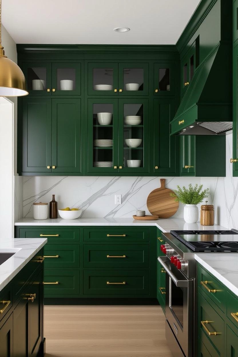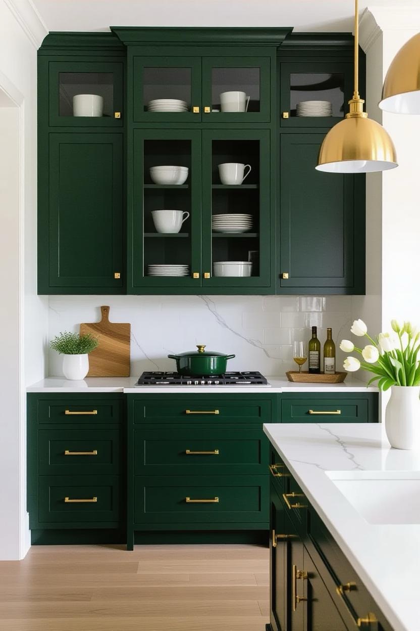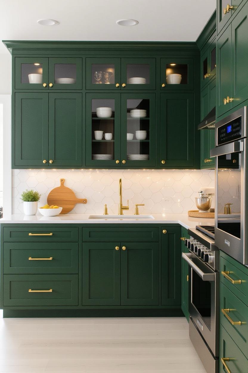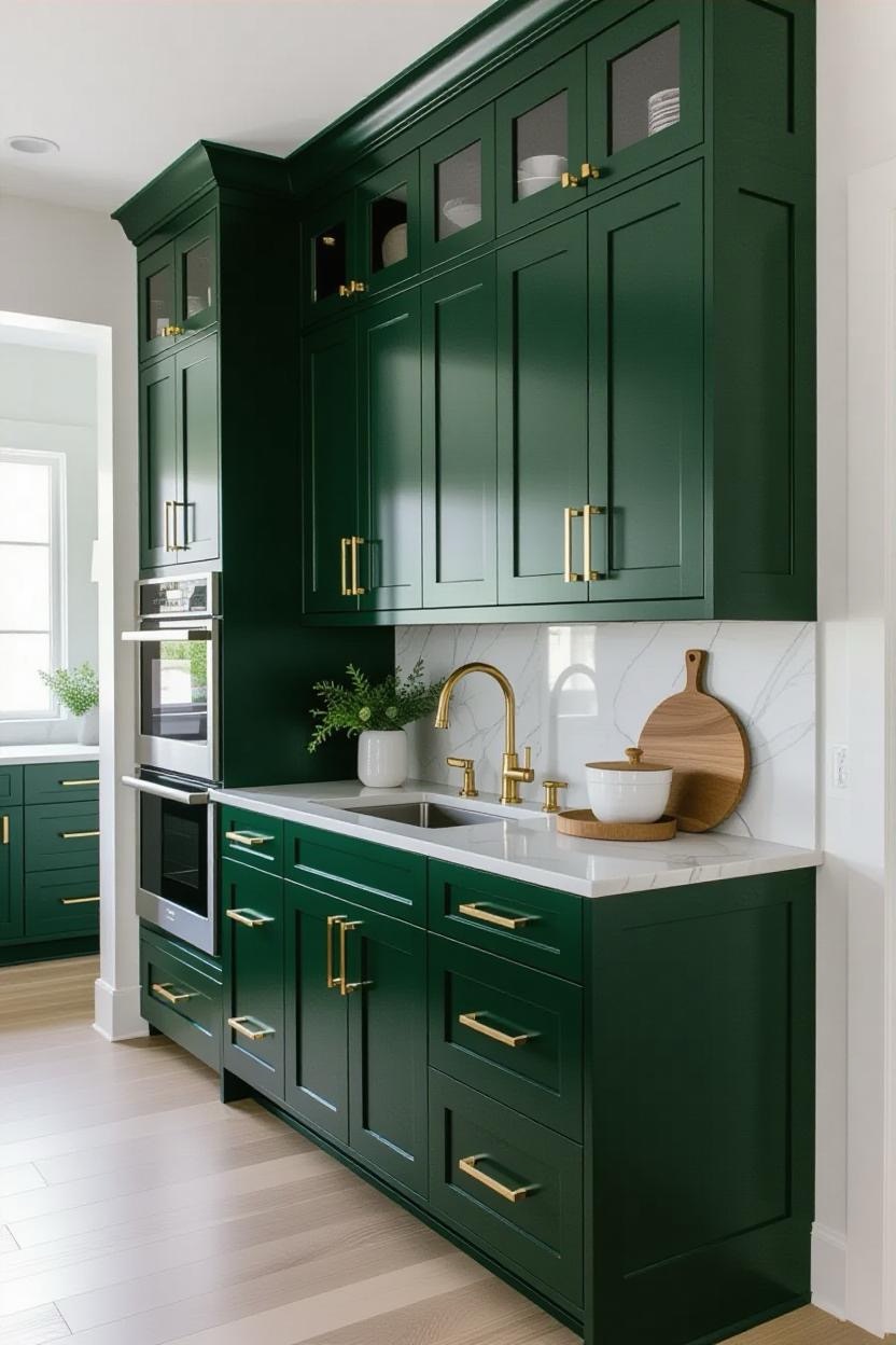 Dark green cabinetry paired with gold hardware exudes elegance, perfect for homeowners who love a hint of luxury in everyday spaces.