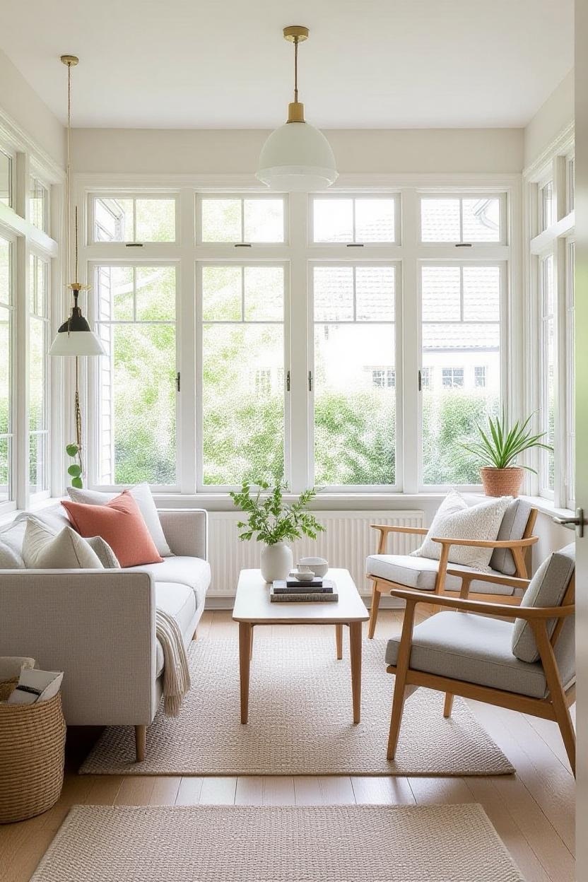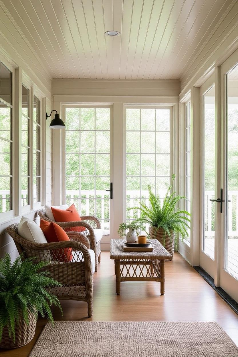 Light wood, whitewashed tiles, or neutral rugs help create a seamless flow from indoors to outdoors. Avoid dark flooring that can make your sunroom feel smaller.