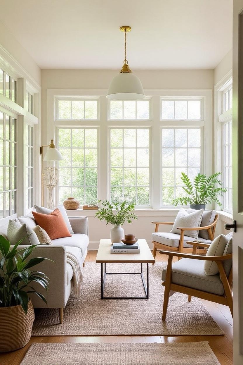 When working with a small sunroom, less is more. Opt for sleek, functional furniture such as a slim sofa, a light coffee table, or even just a pair of chairs with cushions. Minimal furniture helps keep the space airy and uncluttered while letting natural light take center stage.