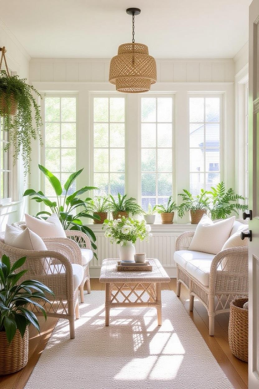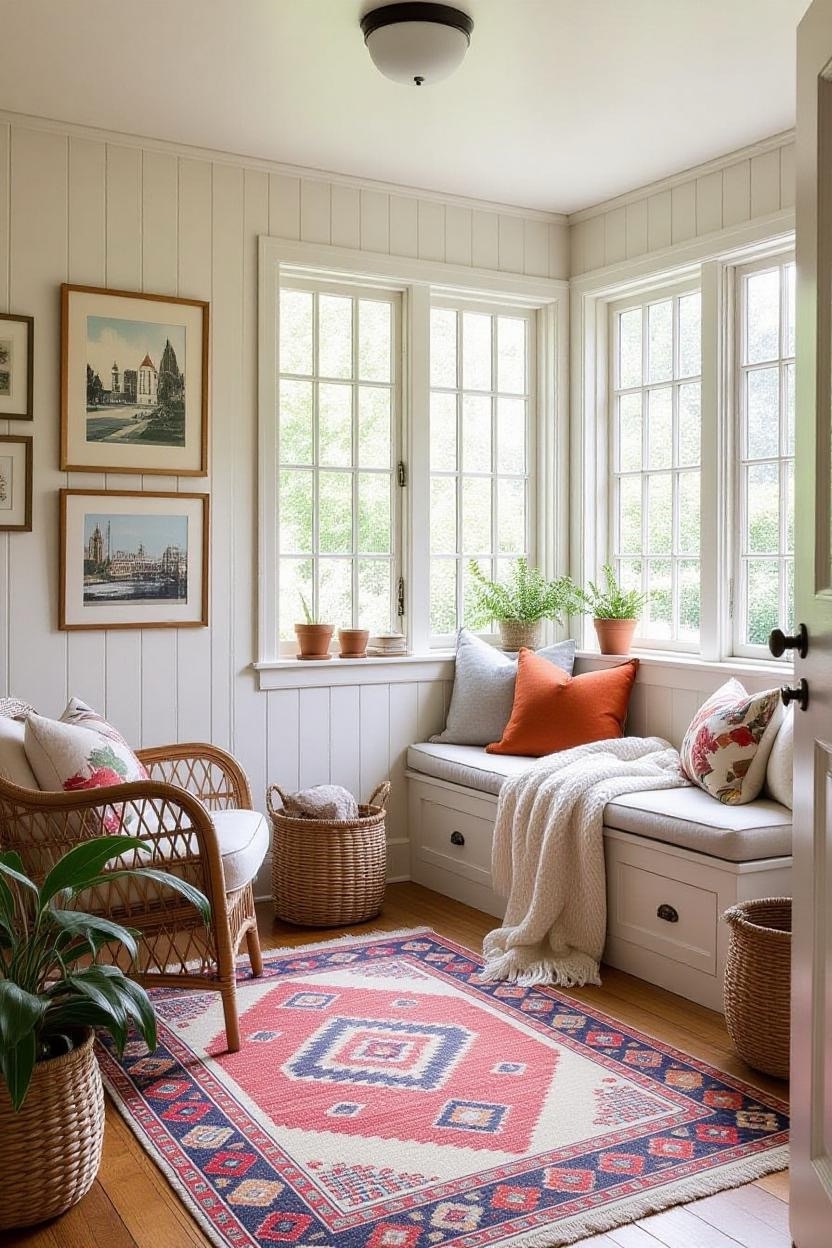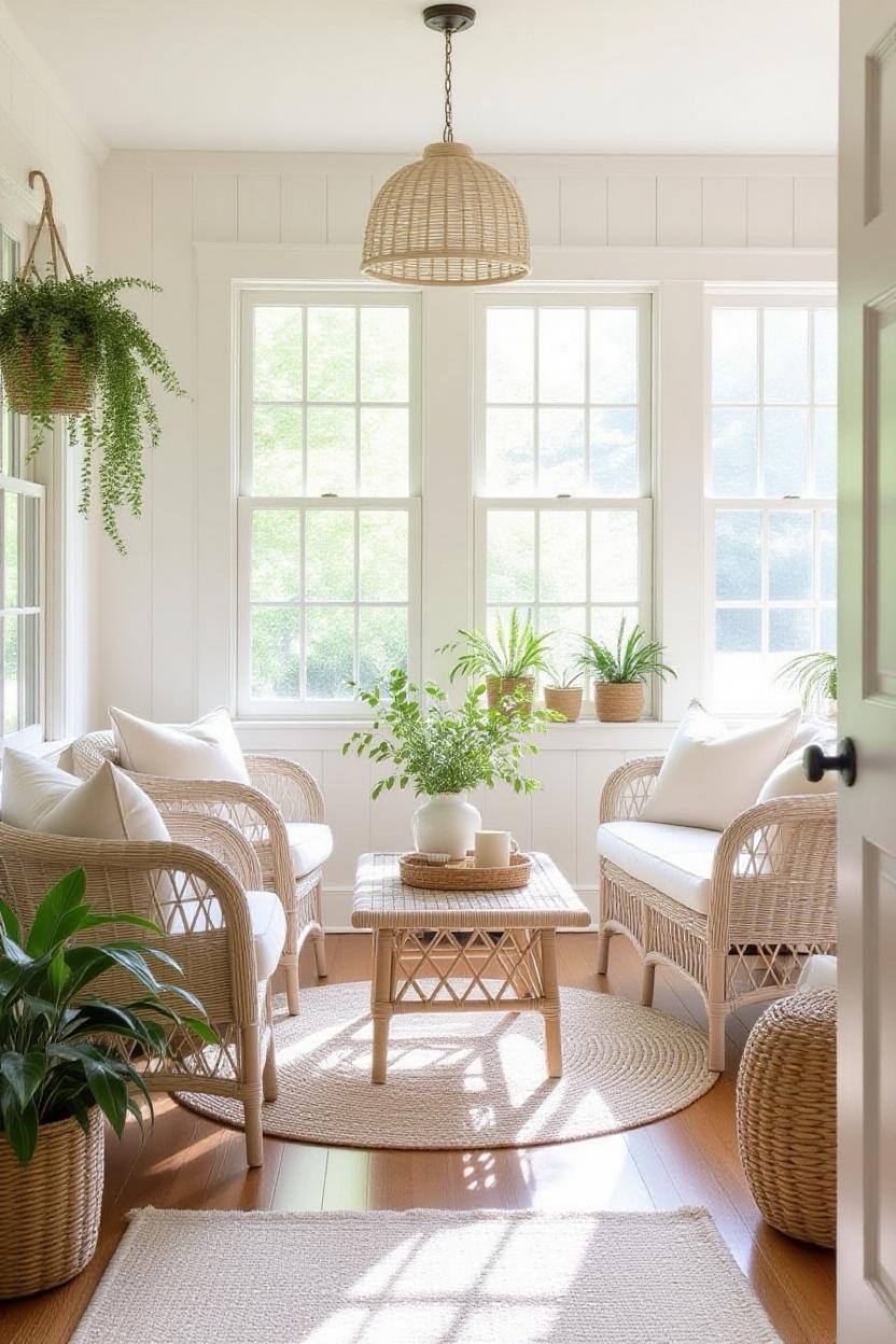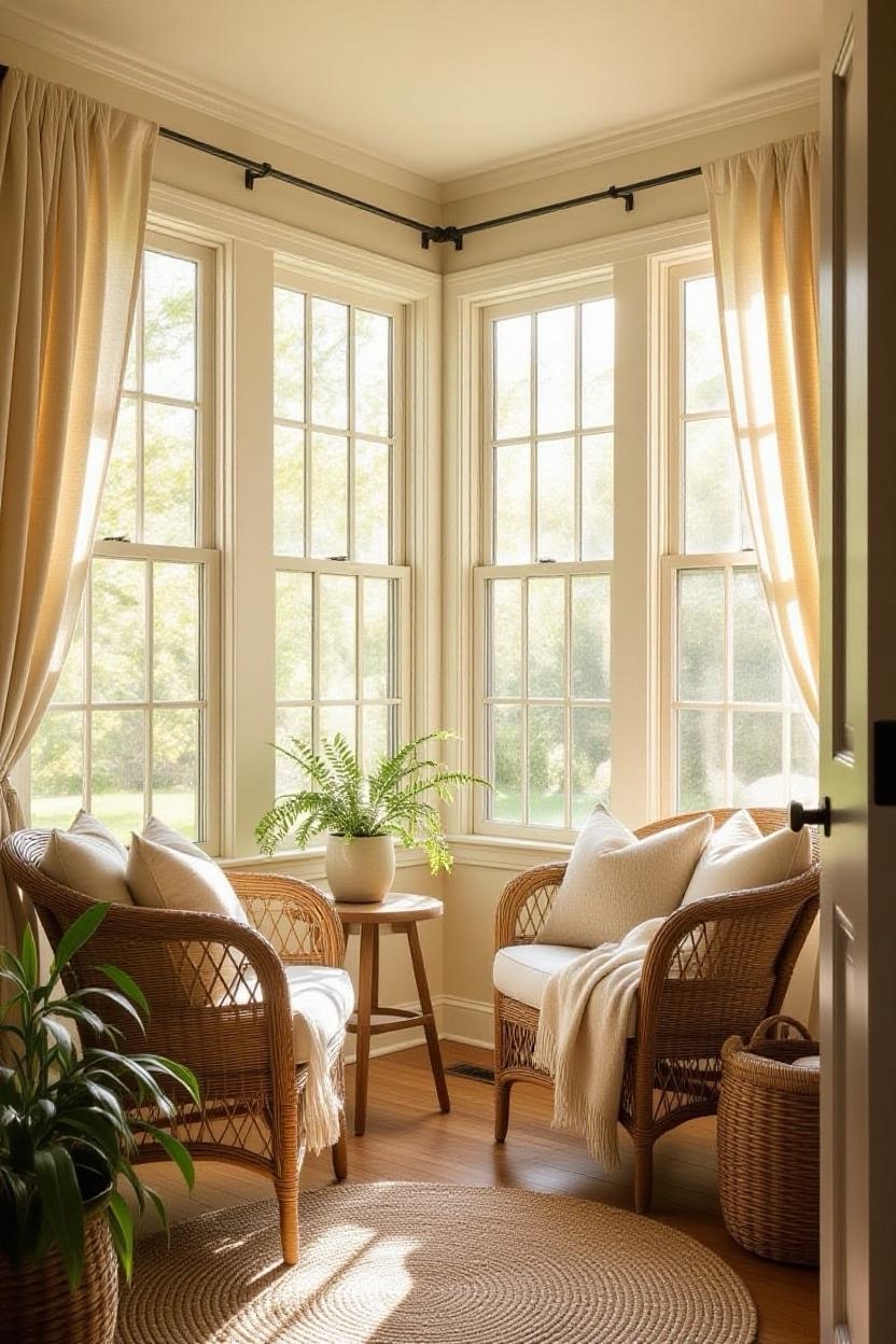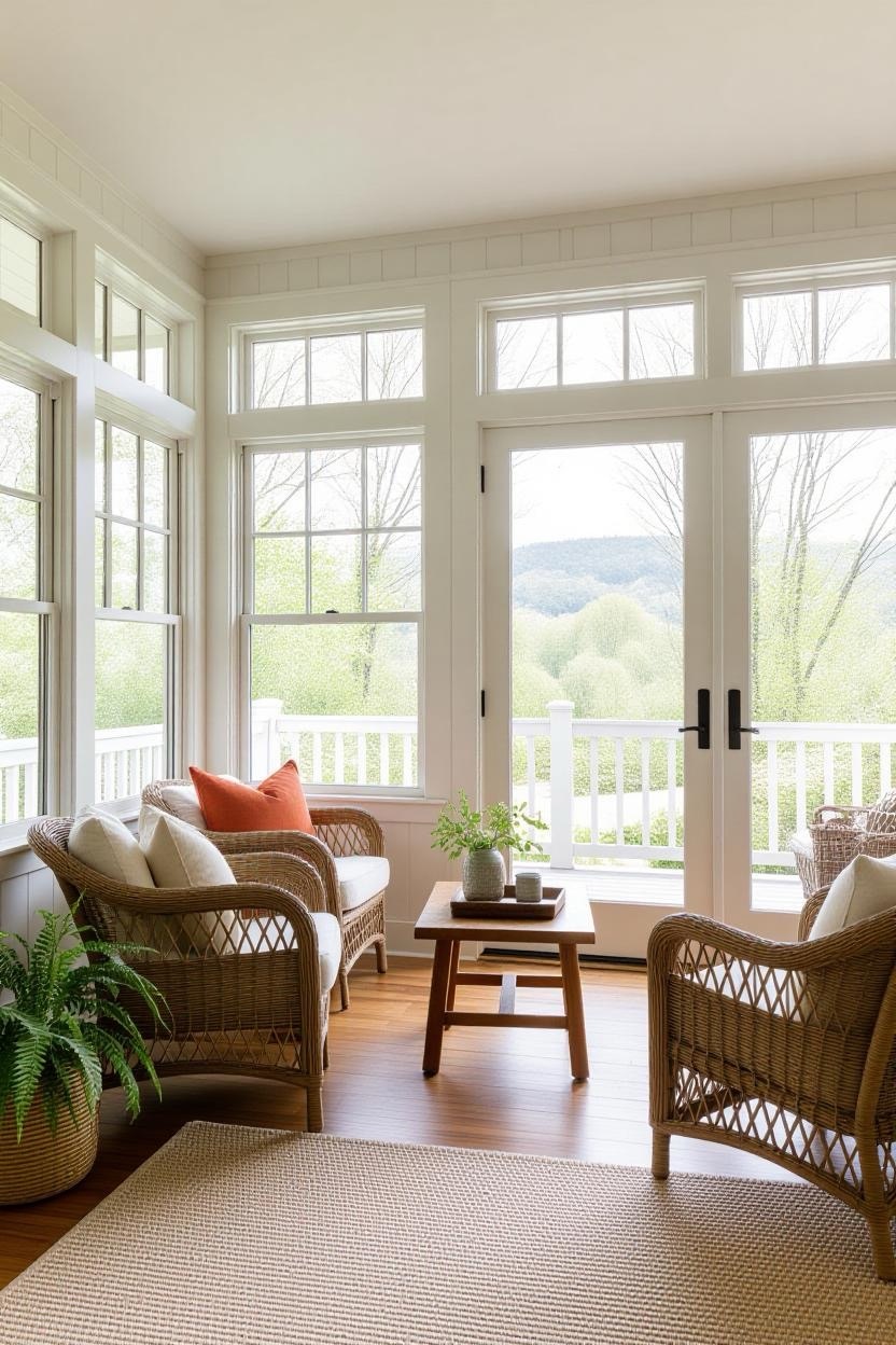 Wooden furniture, woven rugs, and rattan accents create a warm, rustic atmosphere. Natural materials pair beautifully with sunlight, making your small sunroom feel inviting and earthy.