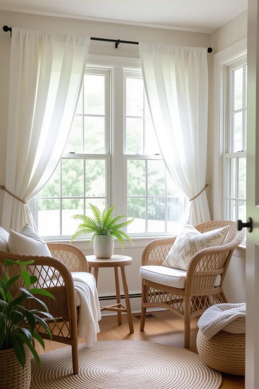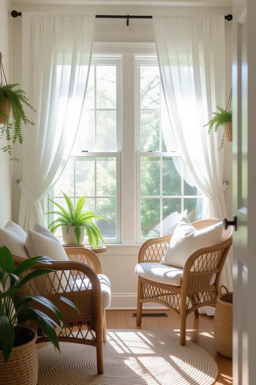 Sheer, lightweight curtains provide privacy without blocking natural light. They also add a soft, breezy feel to your small sunroom, perfect for relaxing afternoons.