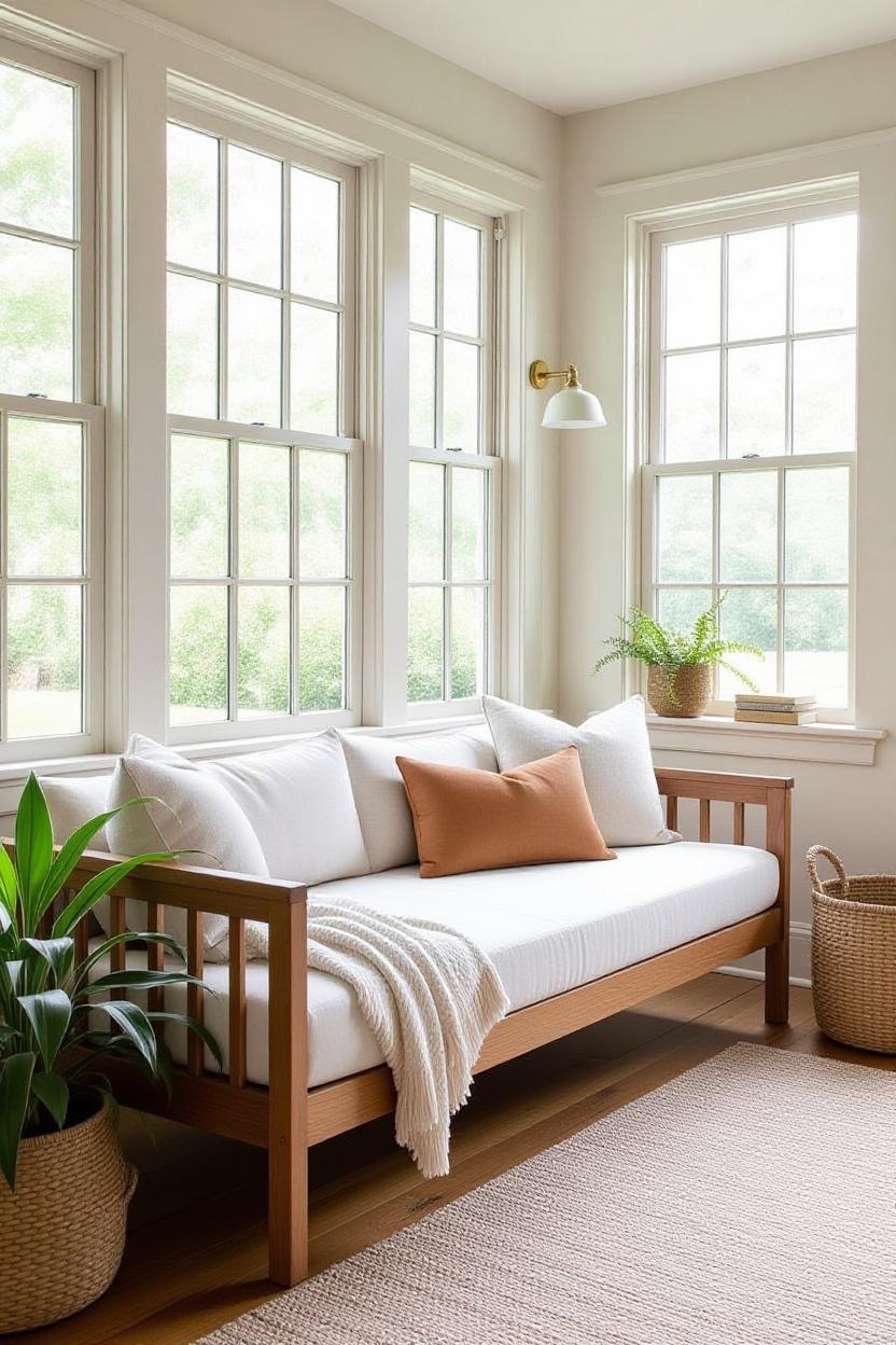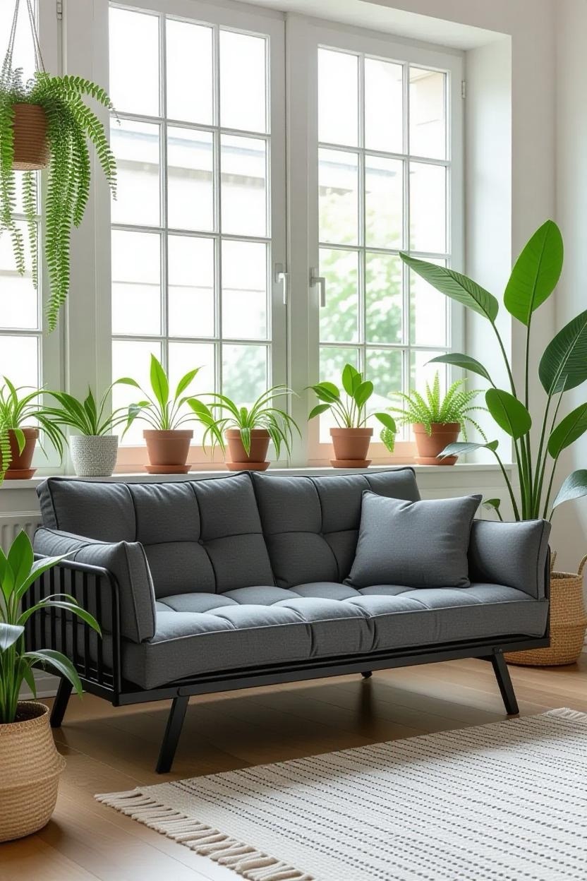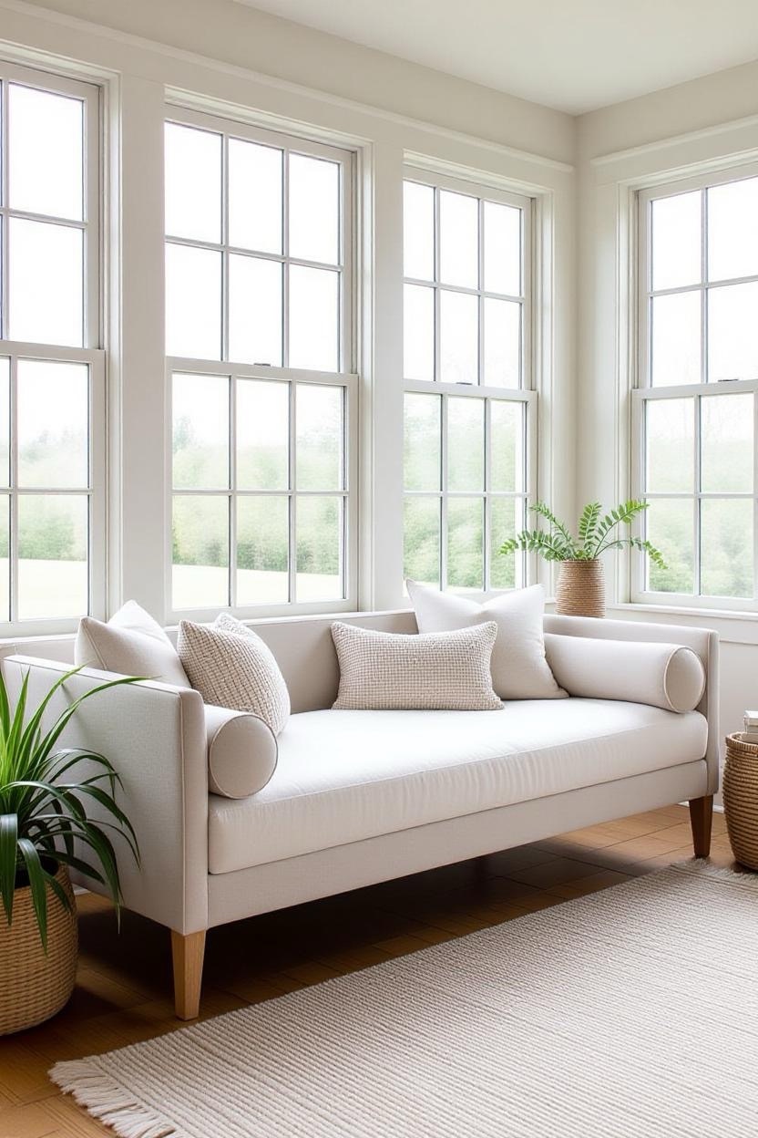 A slim daybed or small futon transforms your sunroom into a multi-use space, perfect for lounging during the day and hosting overnight guests when needed.