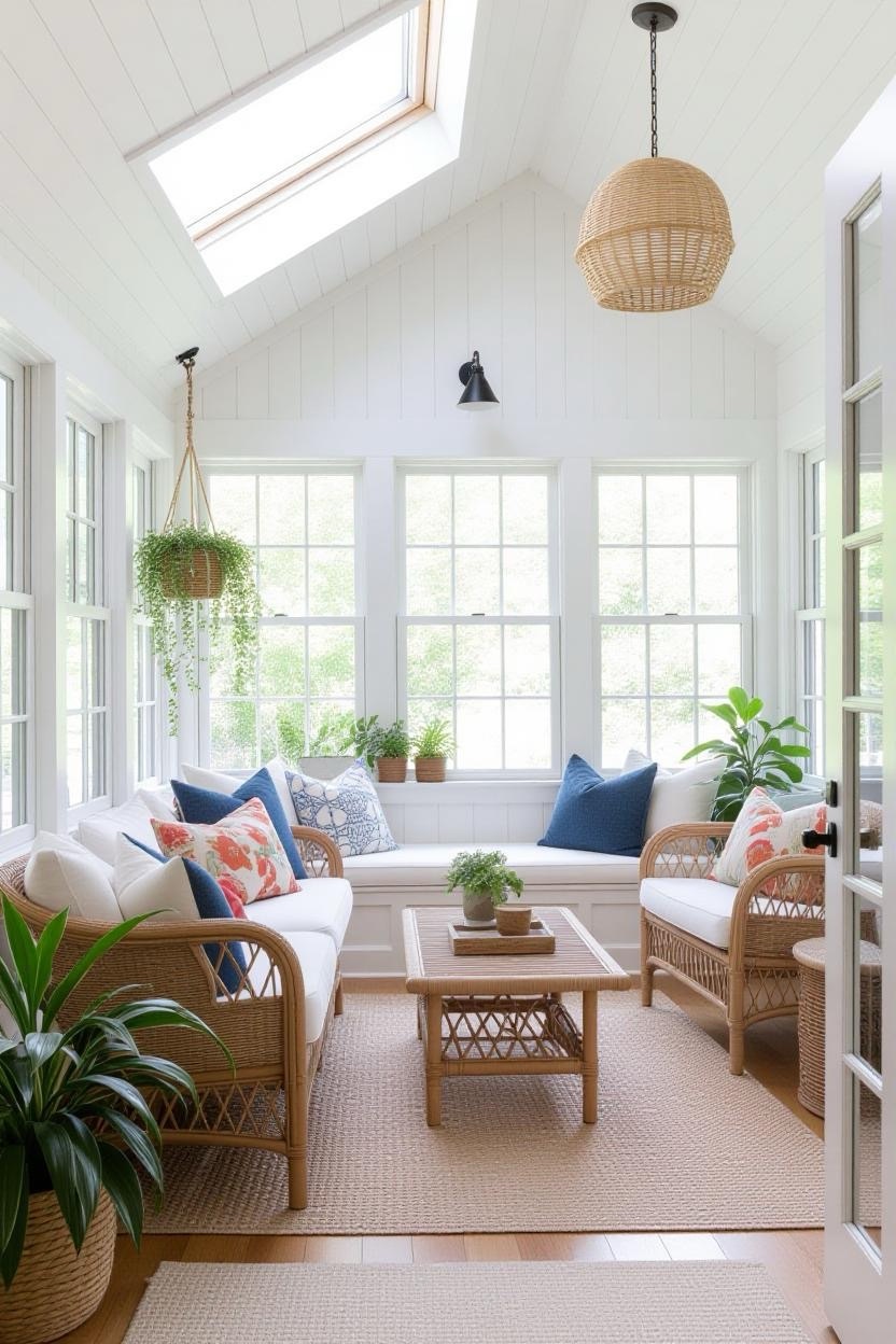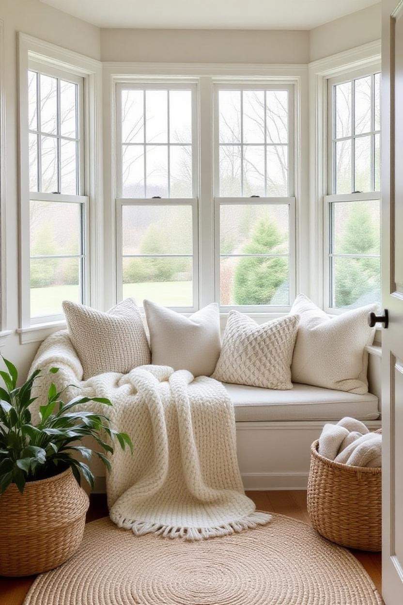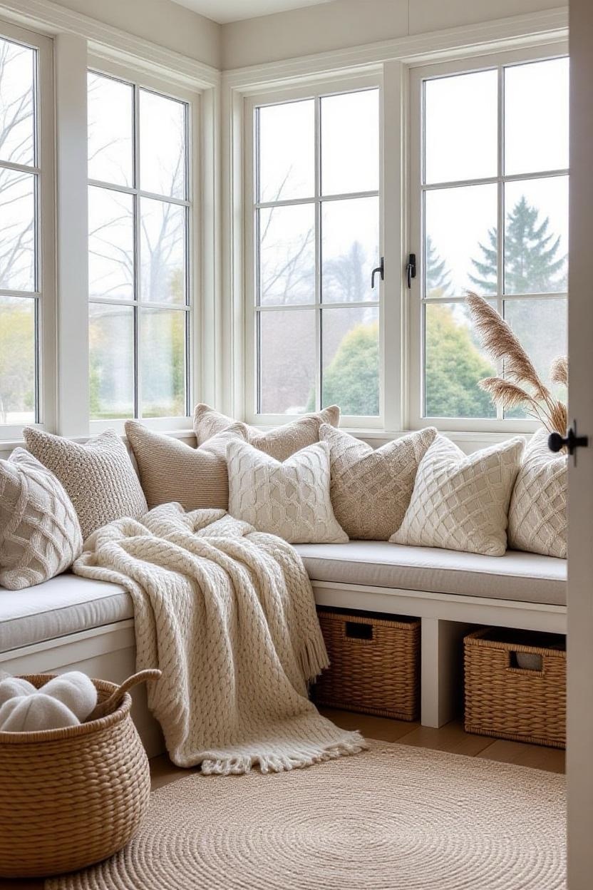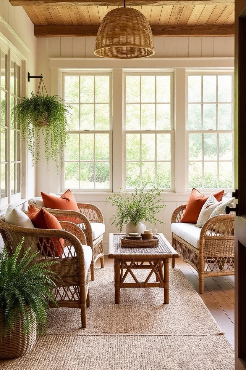 Incorporate cozy textures like soft throws, knit pillows, and woven baskets. These details make your sunroom feel warm and comfortable, especially in colder months.