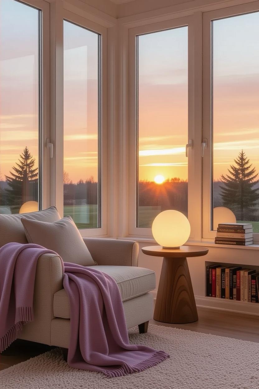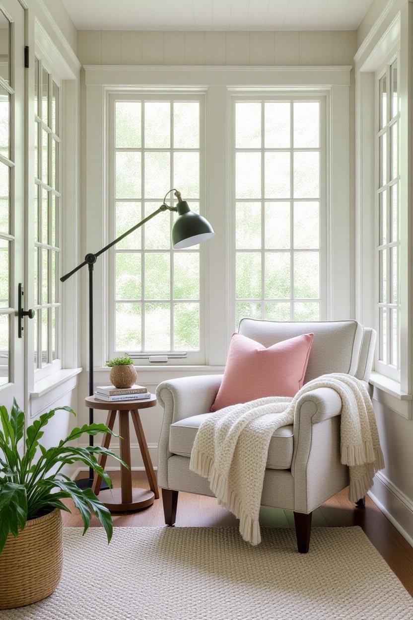 A comfy chair, small side table, and floor lamp can turn your sunroom into a book lover’s paradise. Add a throw blanket for cozy evenings.