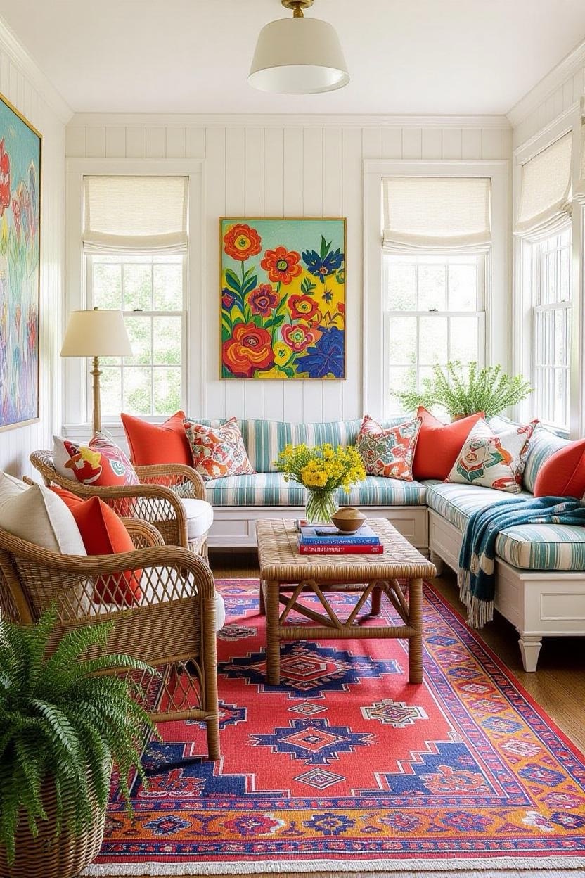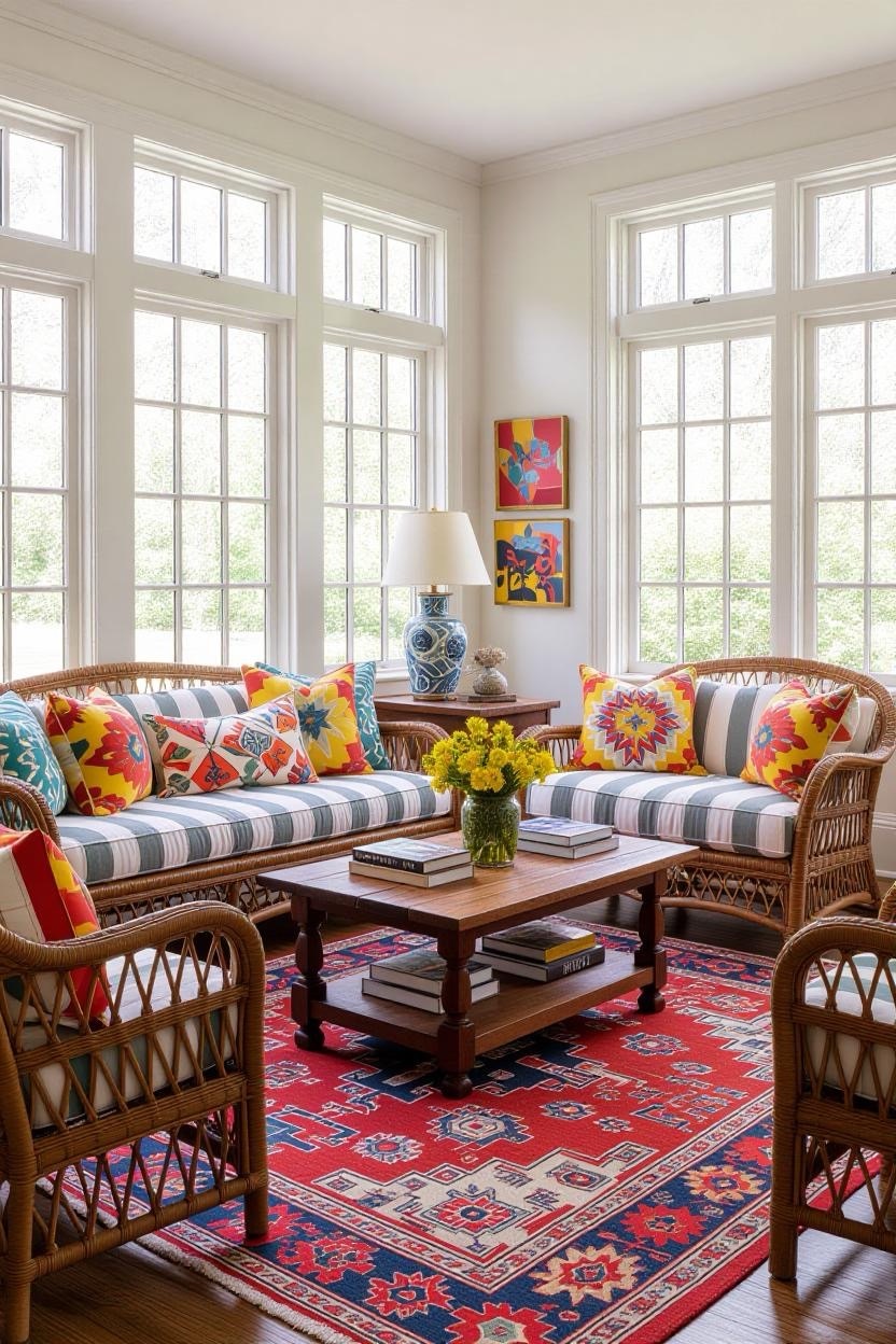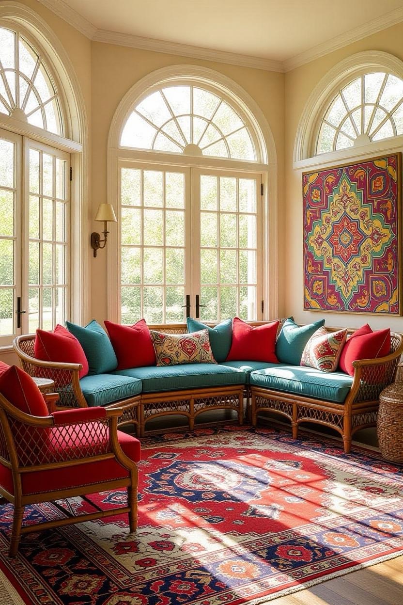 If you love vibrant interiors, introduce bold cushions, patterned rugs, or colorful artwork to energize your sunroom. A few well-chosen accents can give the space personality without overwhelming it.