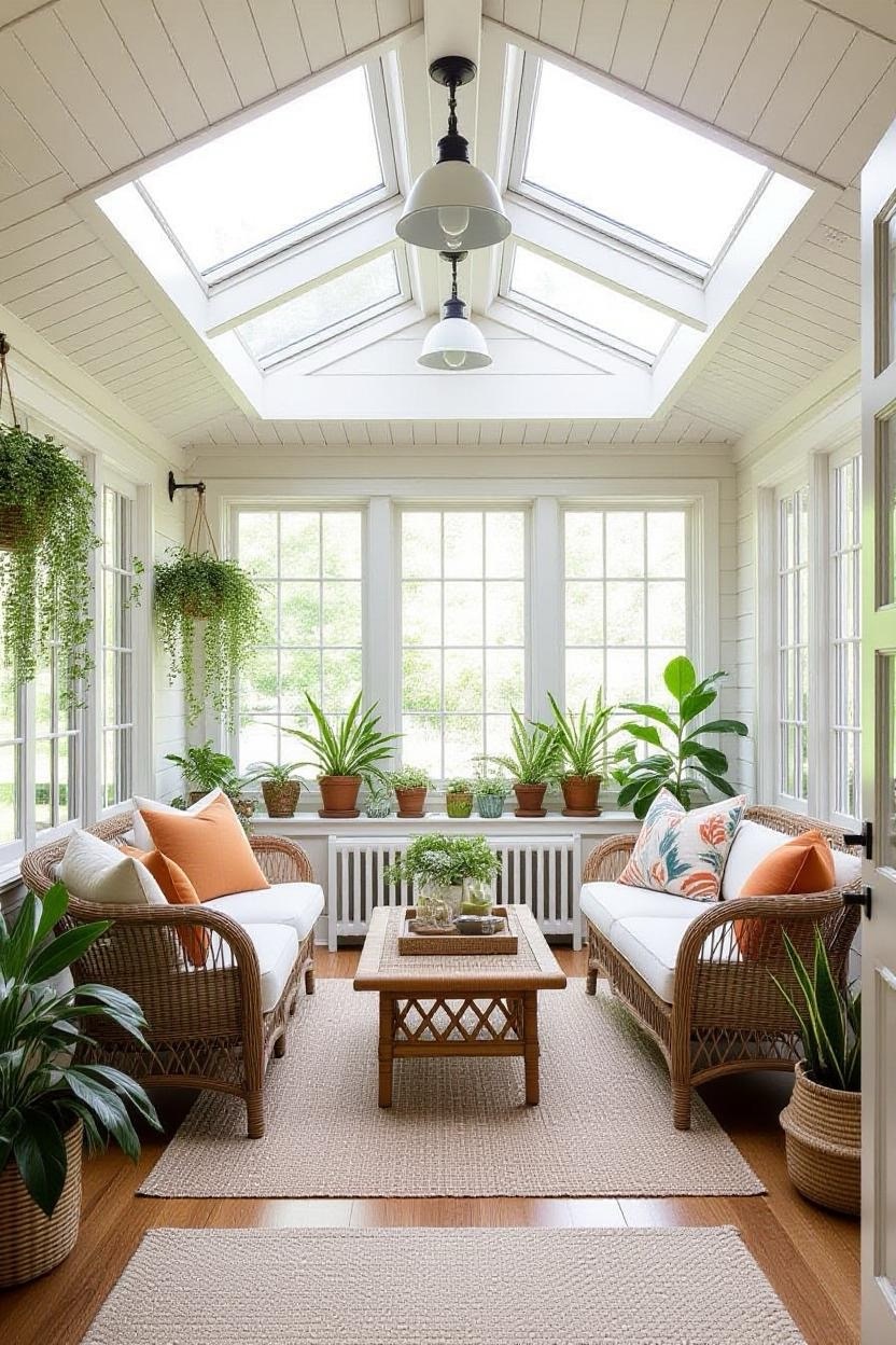 If possible, skylights are a fantastic addition to a small sunroom. They provide overhead natural light, making the space appear even more open and airy.
