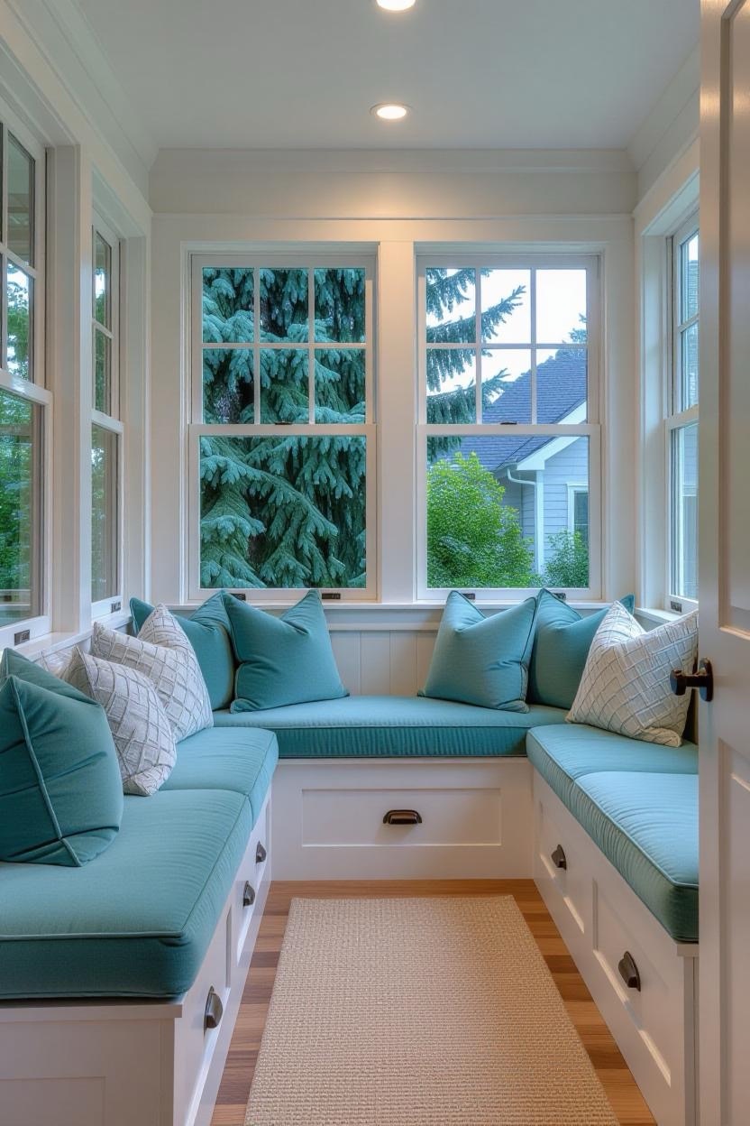 A built-in bench along one wall is a space-saving solution that also doubles as storage. Add soft cushions and it becomes a cozy seating spot.
