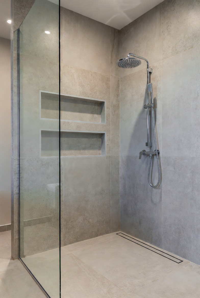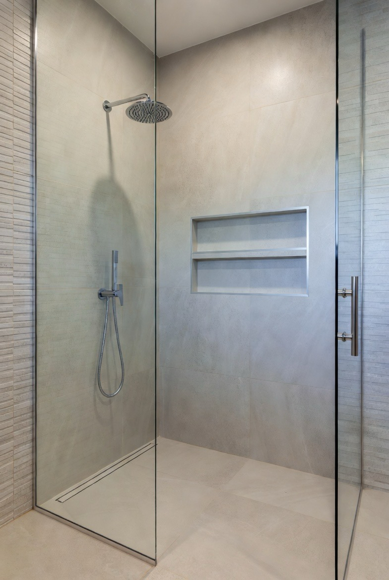 A frameless glass walk-in shower instantly upgrades any bathroom. Large-format tiles, rainfall showerheads, and built-in niches enhance the clean, modern aesthetic. This design feels open and luxurious while maintaining functionality. Neutral tones and subtle textures keep the space feeling fresh, while sleek fixtures complete the contemporary look.