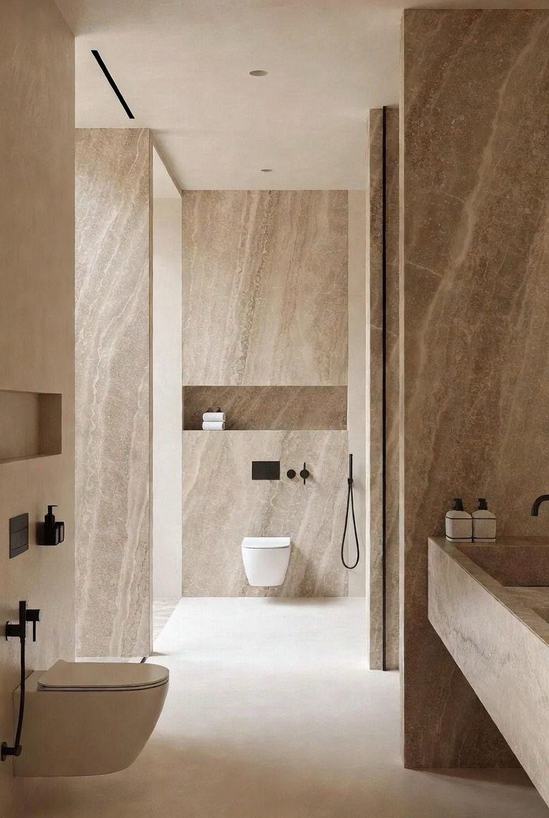 Natural stone adds organic beauty and luxury to modern bathrooms. Marble, travertine, or limestone surfaces create depth and visual interest. When paired with minimalist fixtures and clean layouts, stone feels elegant rather than overpowering. This balance of nature and modern design results in a refined, high-end bathroom that feels both fresh and timeless.