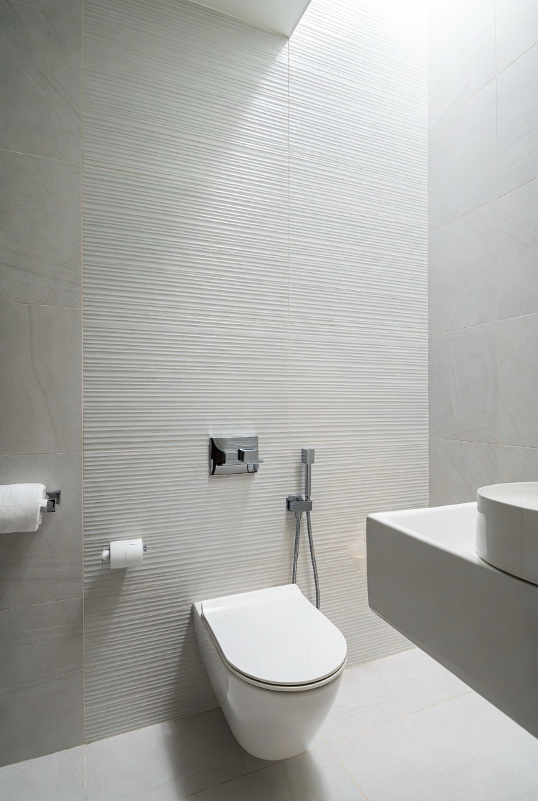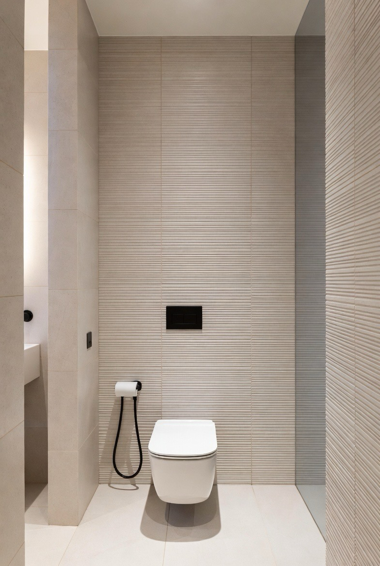 Textured tiles add depth and visual interest without clutter. Ribbed, fluted, or patterned tiles create a subtle statement while maintaining a minimalist aesthetic. When paired with simple fixtures and neutral colors, texture becomes the star. This design feels contemporary, artistic, and refined.