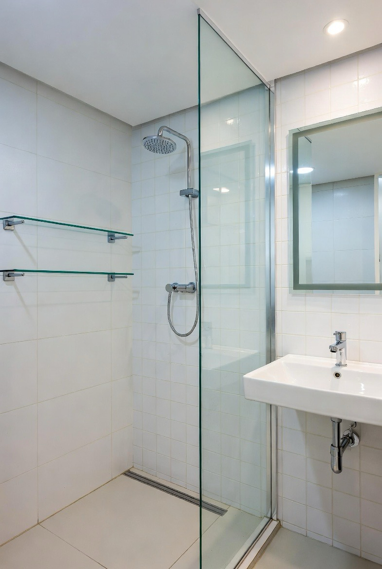 Glass accents, mirrors, partitions, or shelving, enhance light and openness. They add a sleek, modern touch while keeping the space visually light. This design works especially well in smaller bathrooms, making them feel more expansive and luxurious.