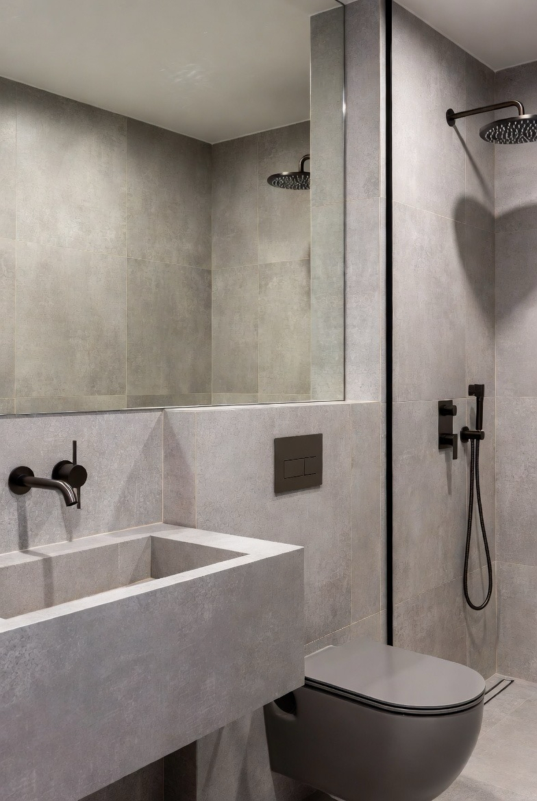 Matte finishes feel understated and refined. Matte black, gray, or soft neutral fixtures add a modern edge without overwhelming the space. Combined with smooth tiles and clean lines, matte finishes create a sophisticated, contemporary bathroom with lasting appeal.