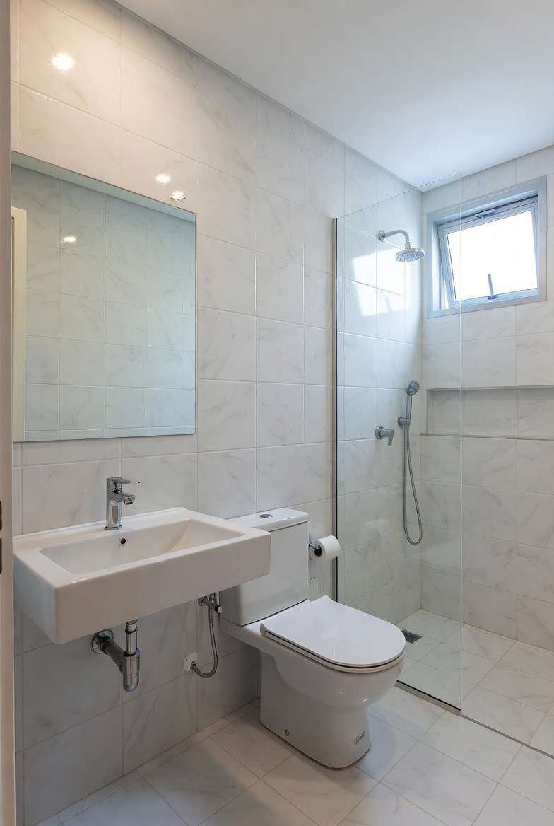 Straight edges, flat surfaces, and simple forms define this design. Every element serves a purpose, creating a balanced, harmonious space. This modern bathroom style feels calm, organized, and effortlessly elegant, perfect for lovers of simplicity.