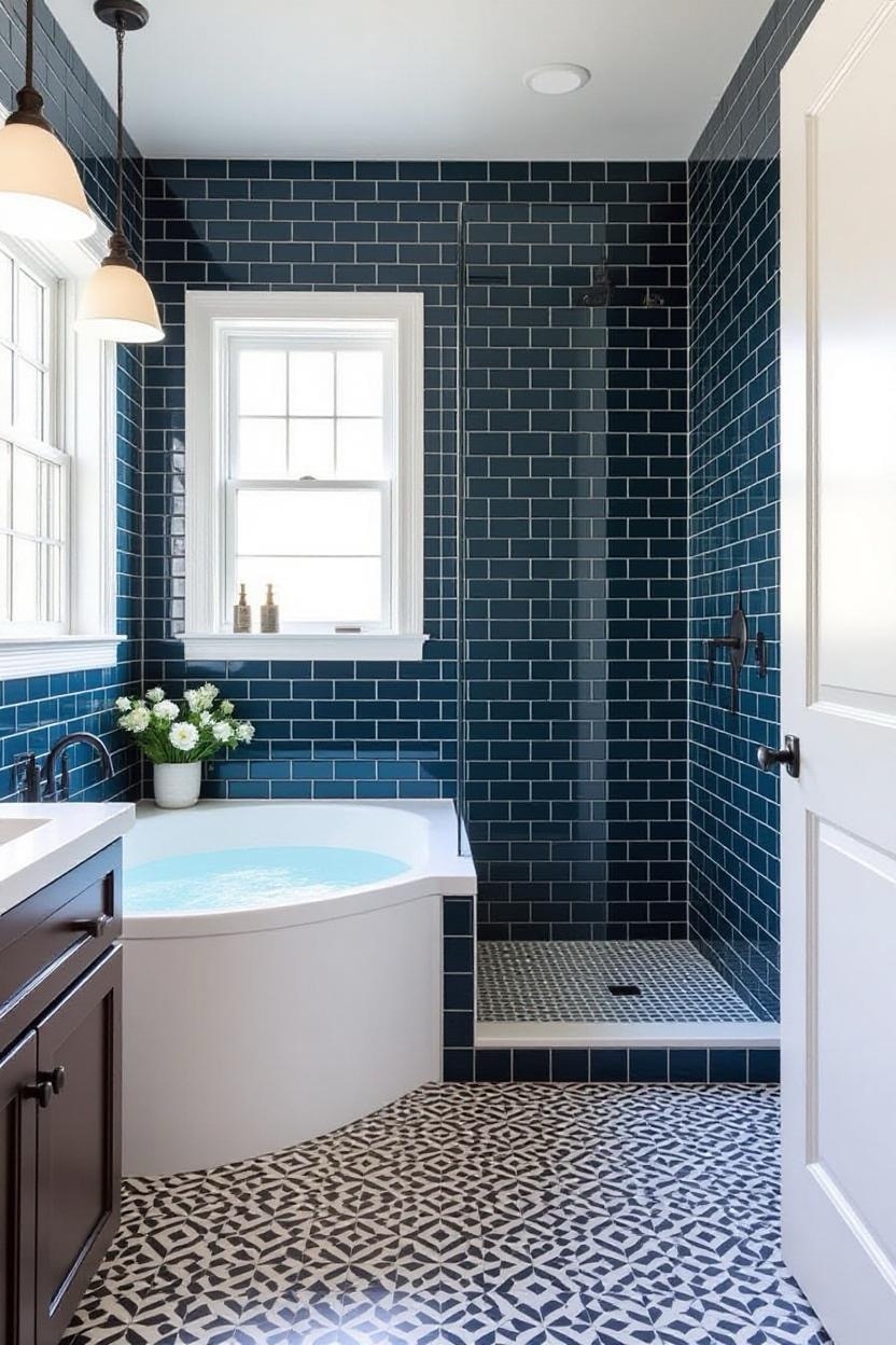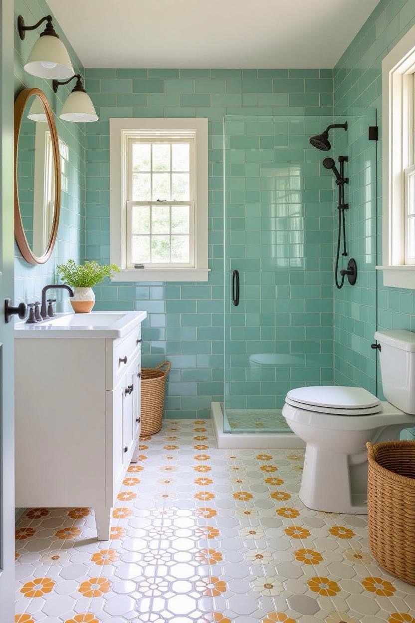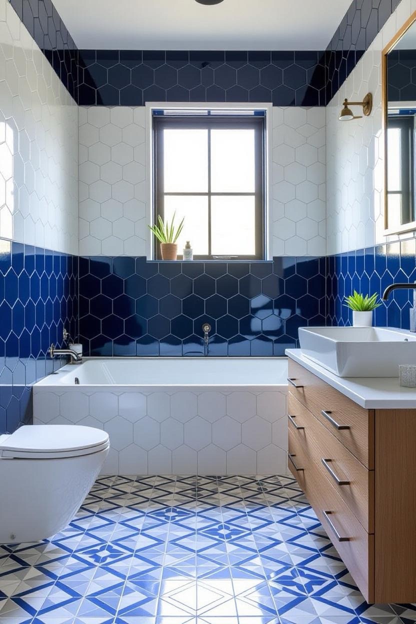 Experiment with bold color blocking by combining contrasting tile shades. Whether it’s black and white or pastel tones, this trend adds modern energy to your space.