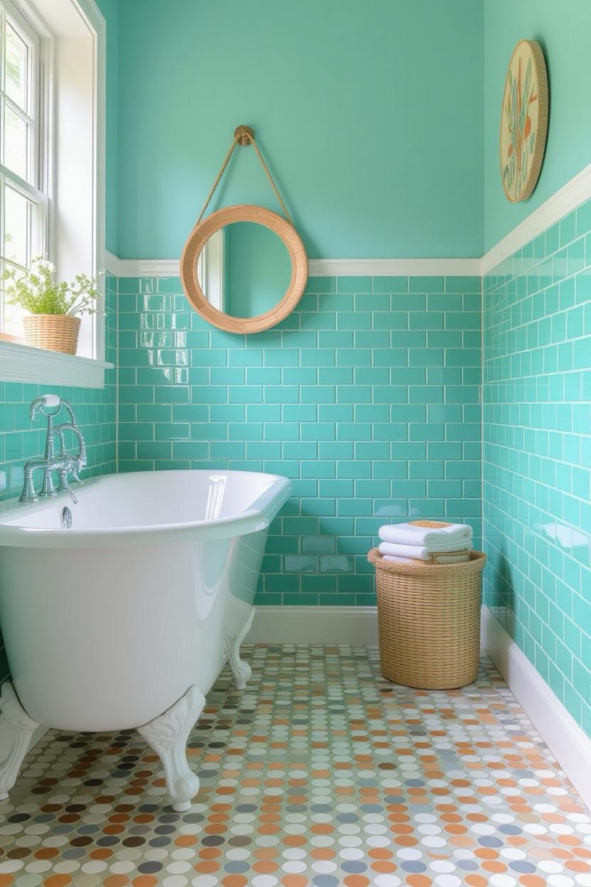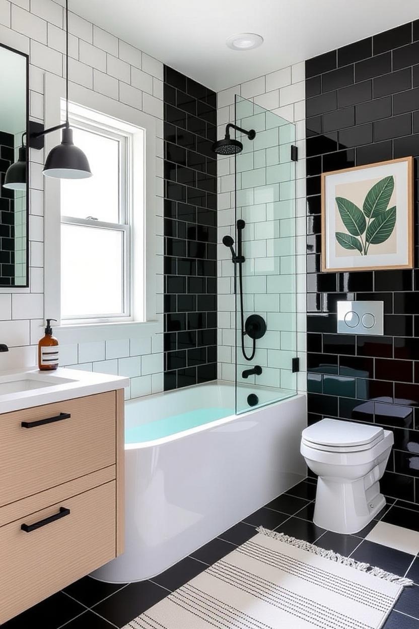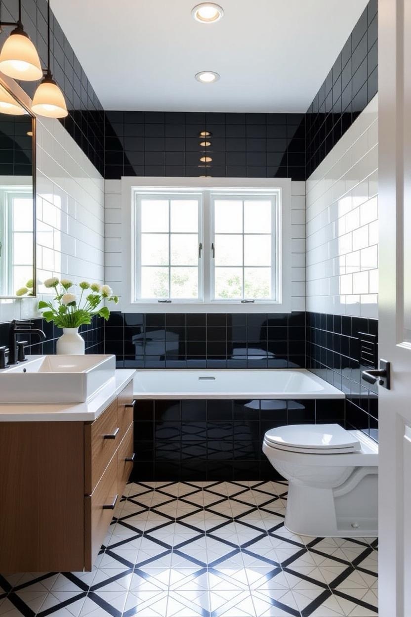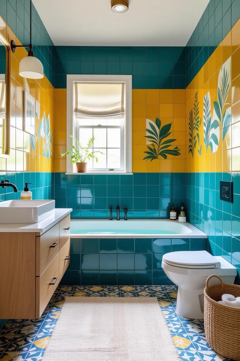 Experiment with bold color blocking by combining contrasting tile shades. Whether it’s black and white or pastel tones, this trend adds modern energy to your space.