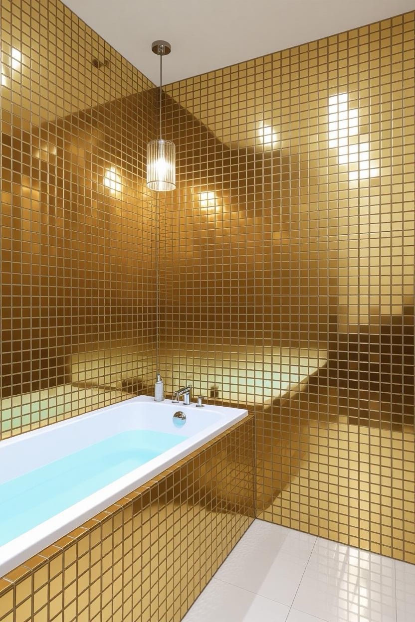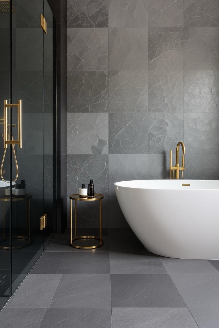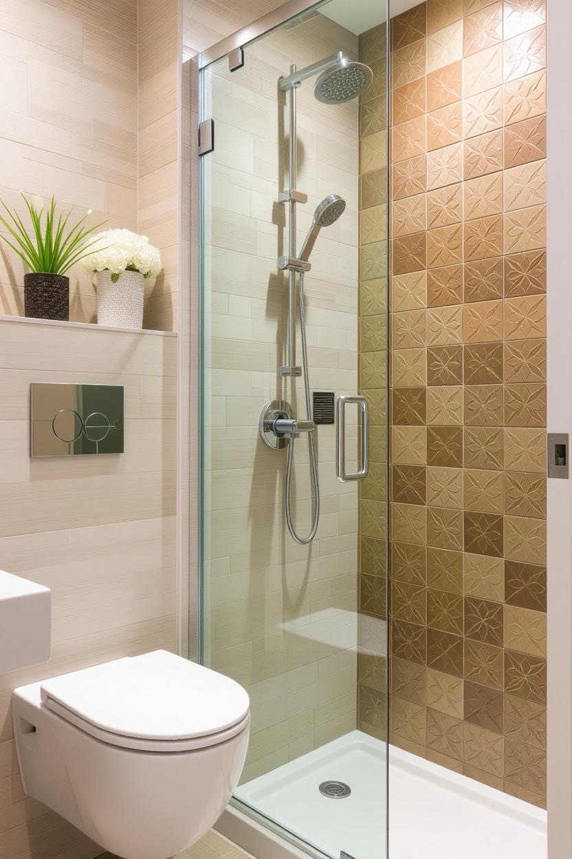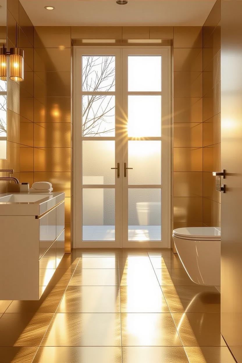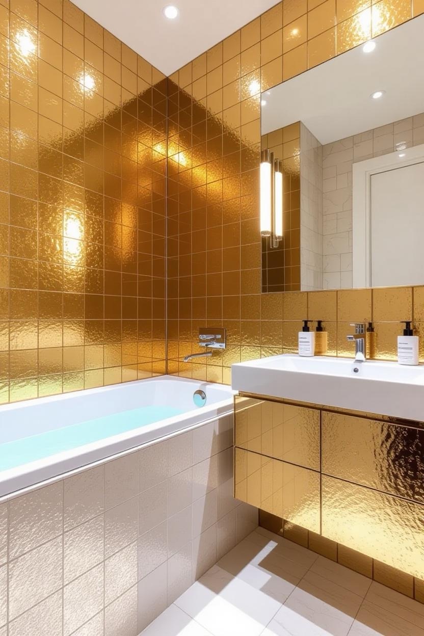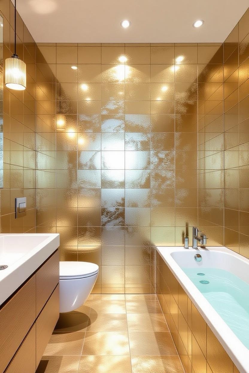 Incorporate metallic tiles in gold, silver, or bronze for a glamorous touch. They reflect light beautifully, making your bathroom sparkle while adding a sleek, modern feel.