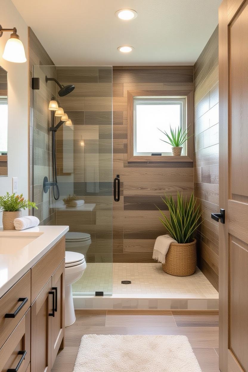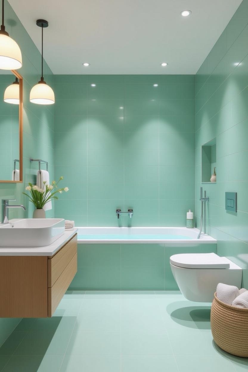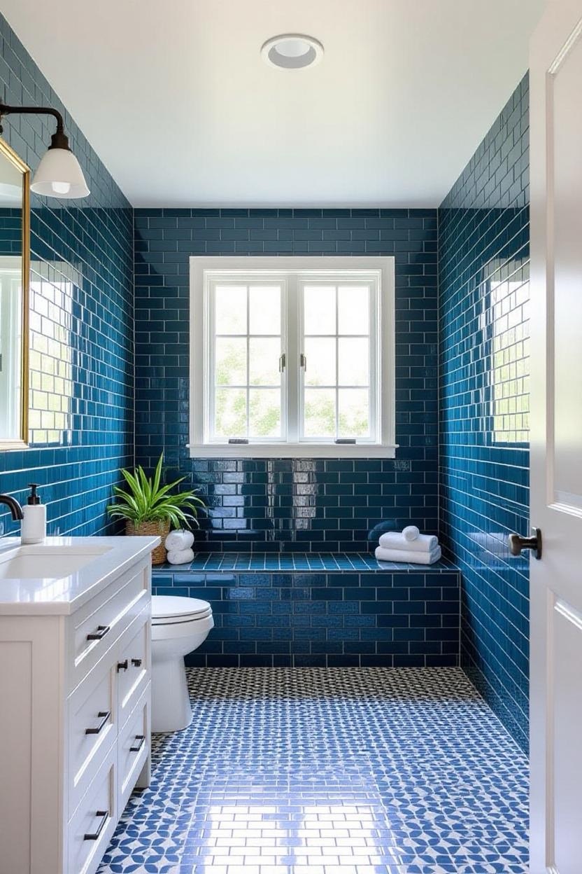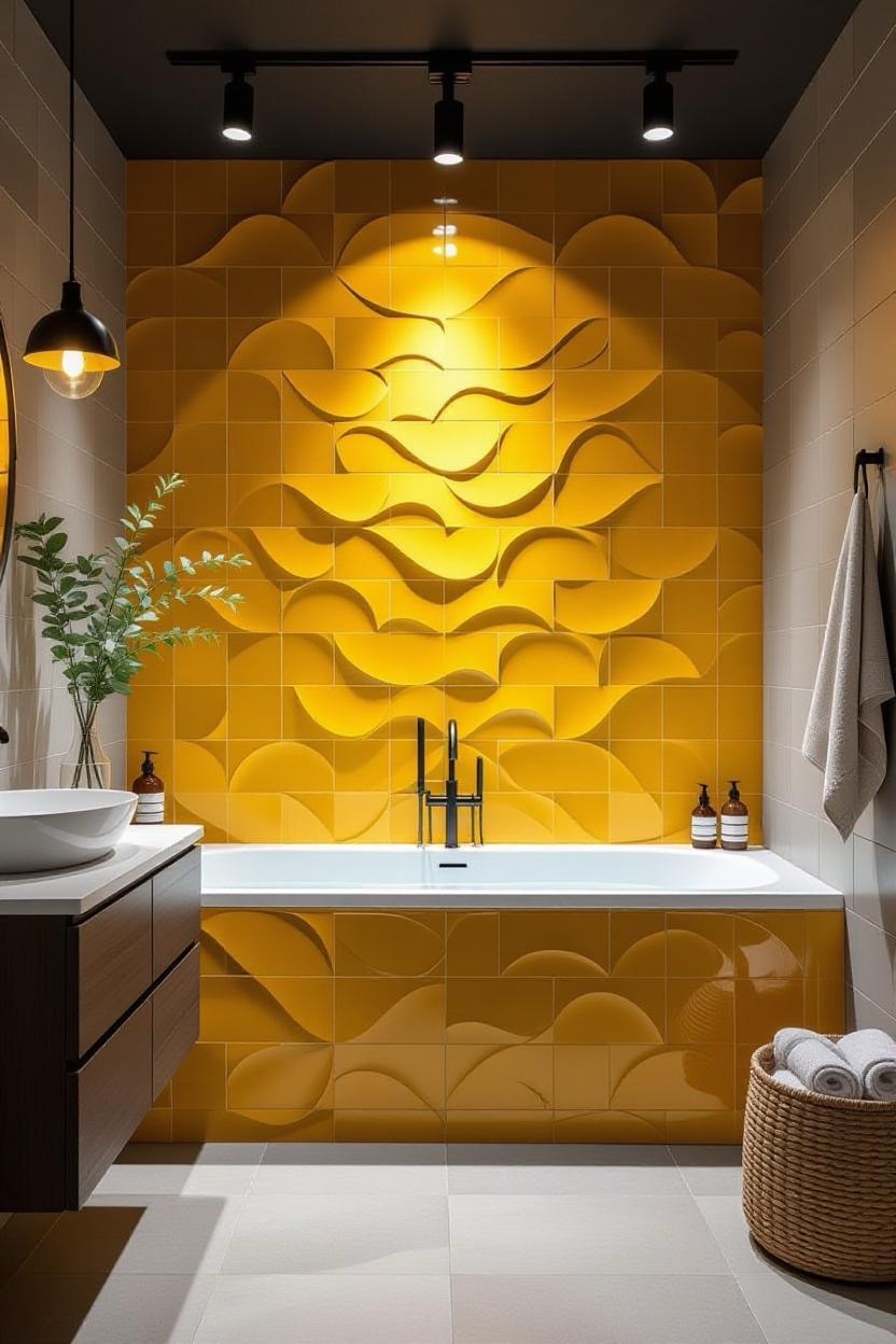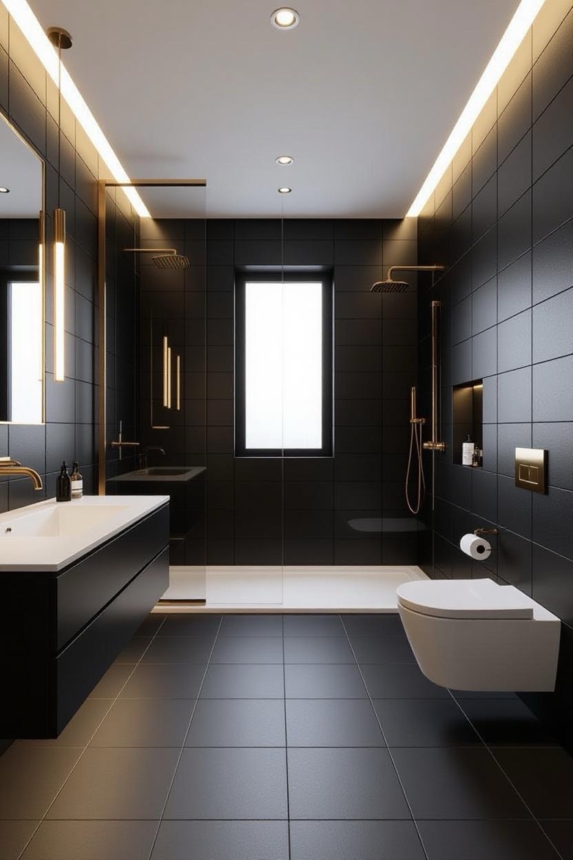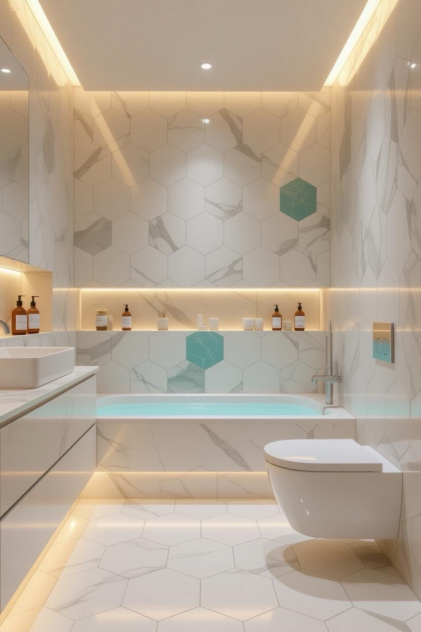 Incorporate metallic tiles in gold, silver, or bronze for a glamorous touch. They reflect light beautifully, making your bathroom sparkle while adding a sleek, modern feel.