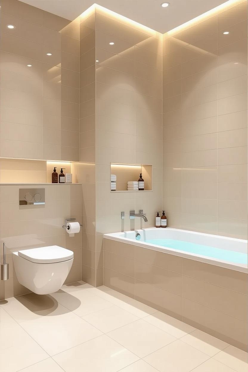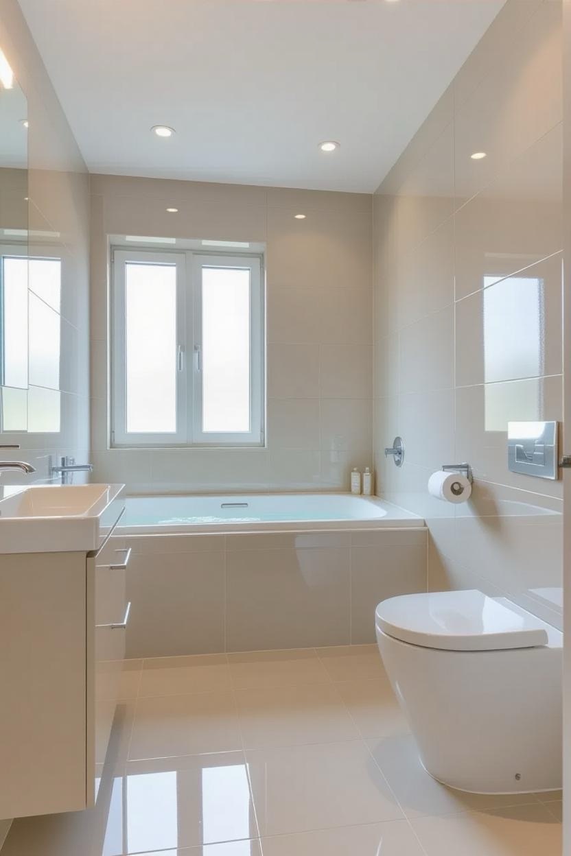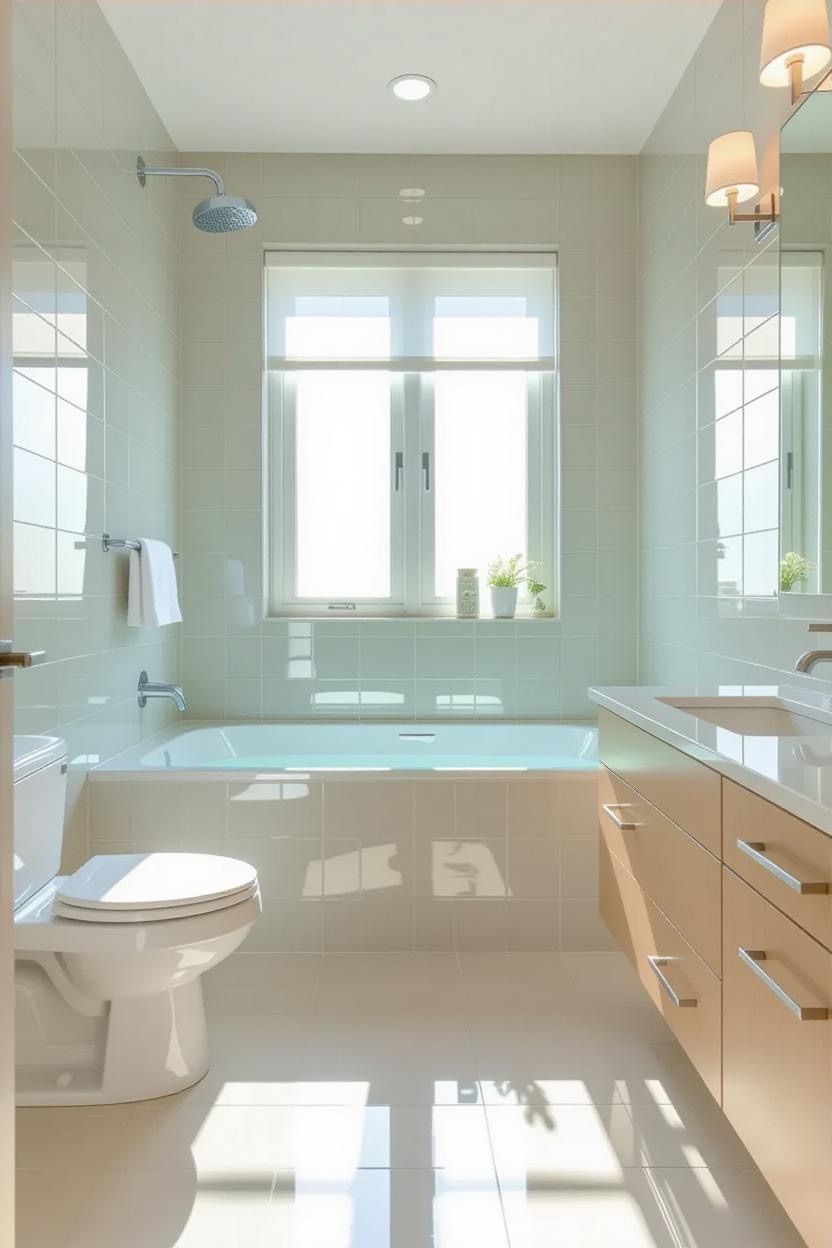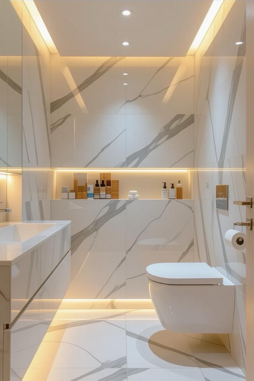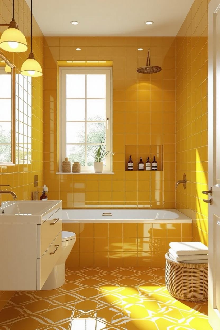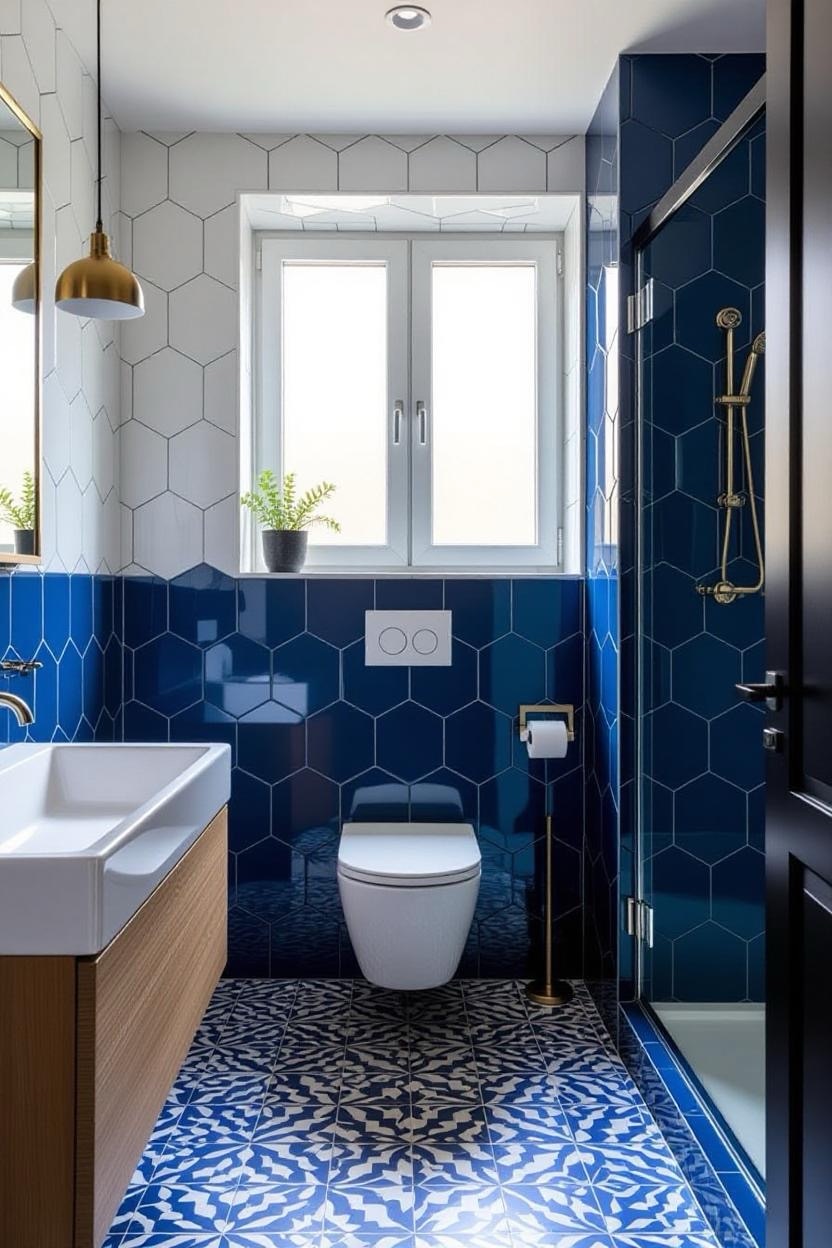 Incorporate metallic tiles in gold, silver, or bronze for a glamorous touch. They reflect light beautifully, making your bathroom sparkle while adding a sleek, modern feel.