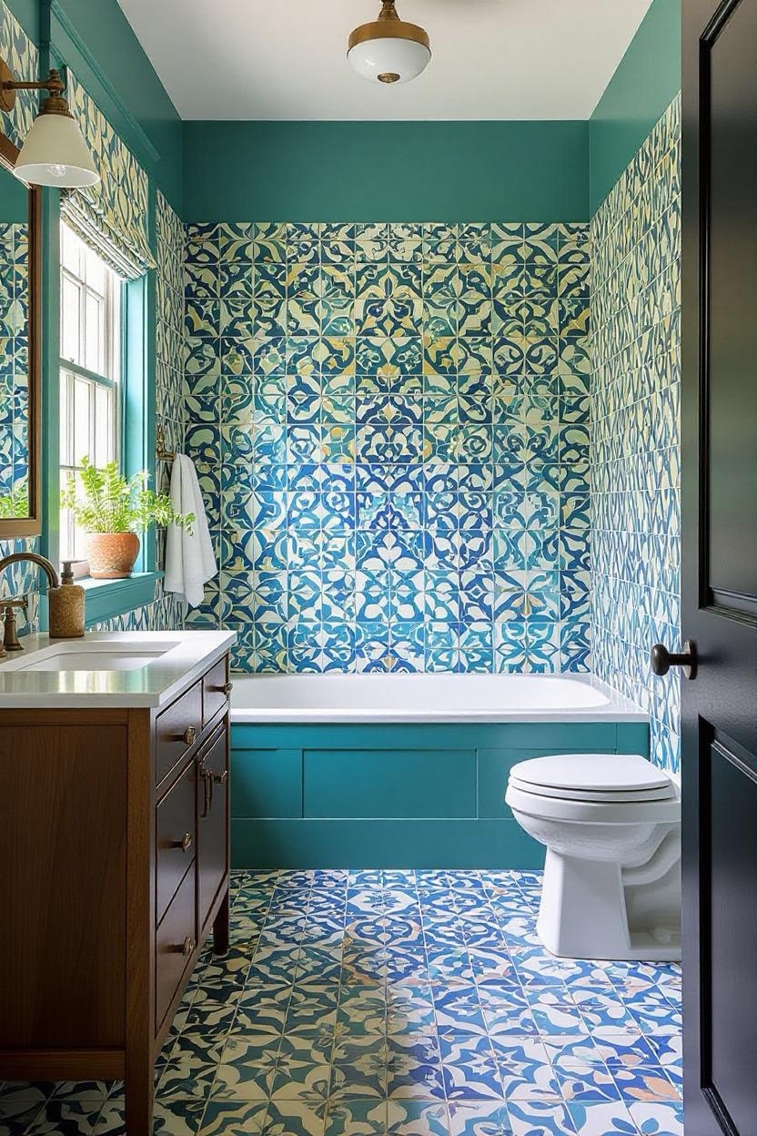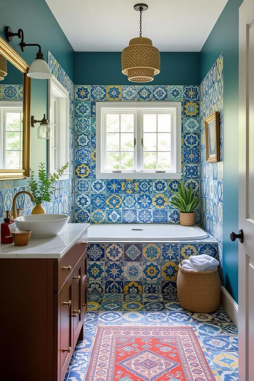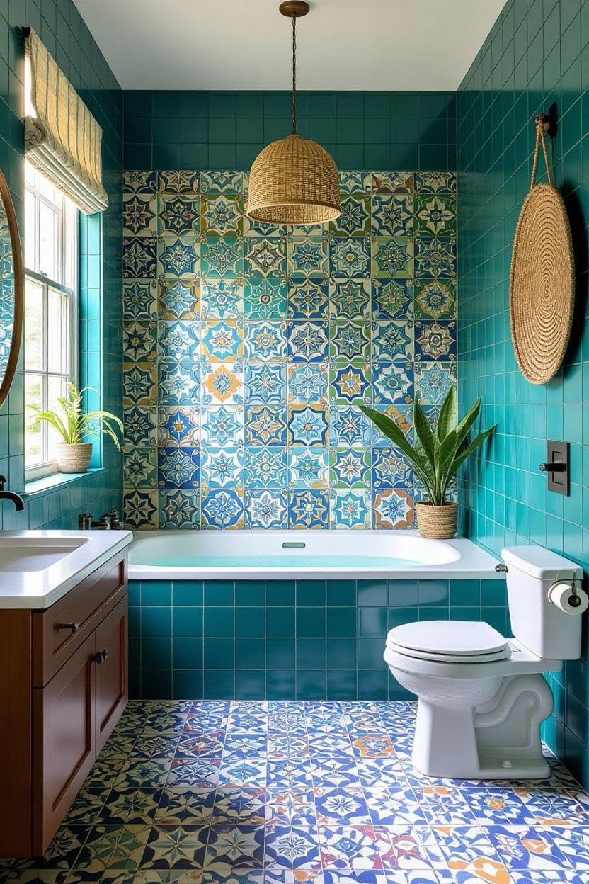 Make your bathroom stand out with vibrant patterned tiles. Use them on a statement wall or as flooring to give the room personality and flair. This is ideal for those who love eclectic or bohemian designs.