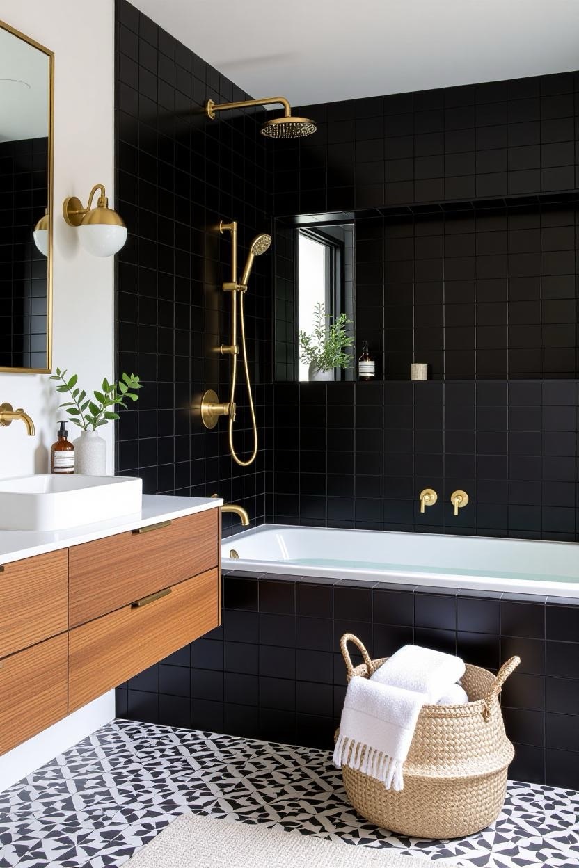 Nothing says modern quite like matte black tiles. Whether used on floors or accent walls, they bring drama and sophistication. Pair with gold or brass fixtures for a bold, contemporary touch.