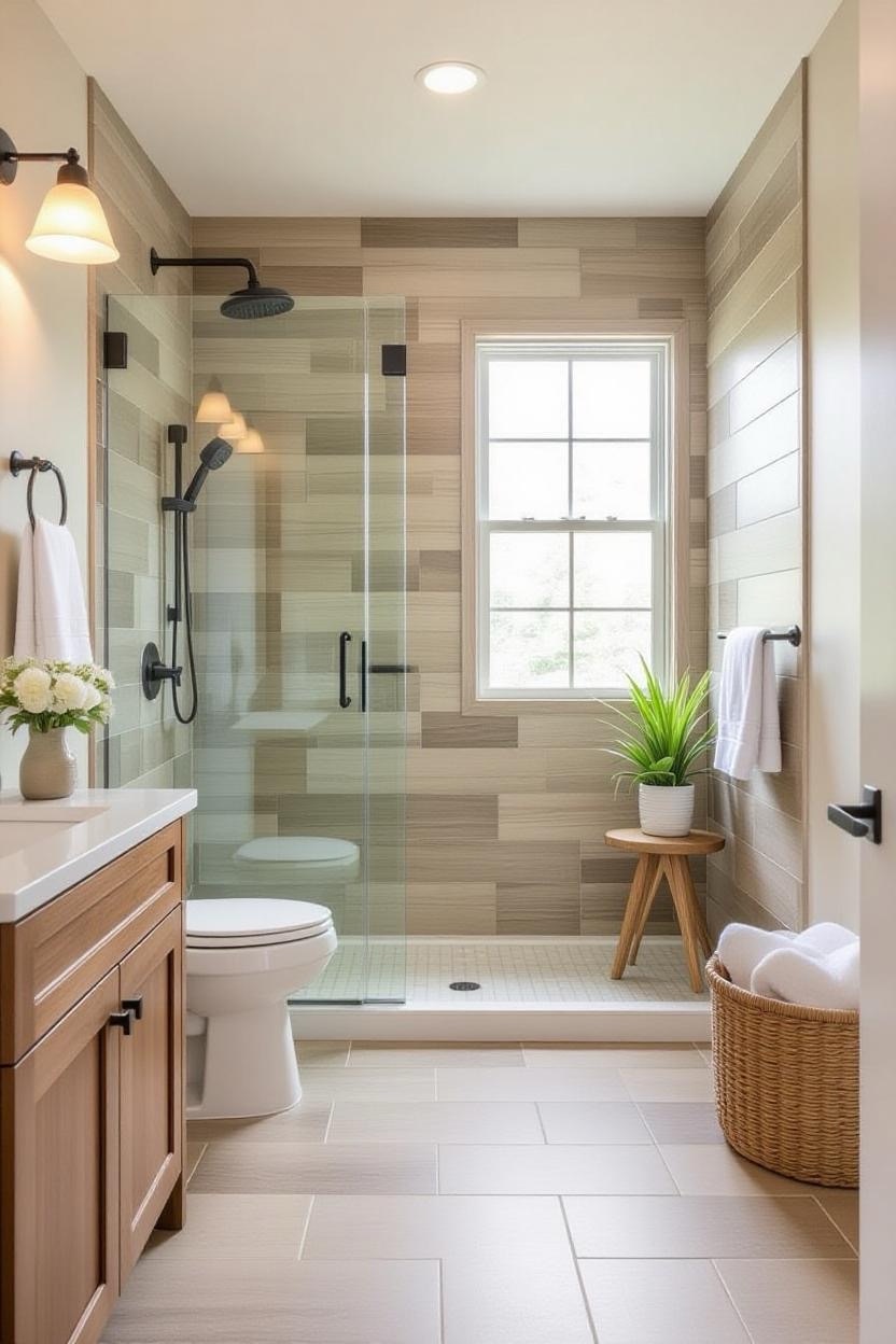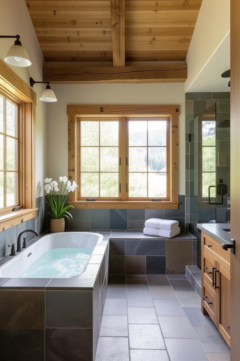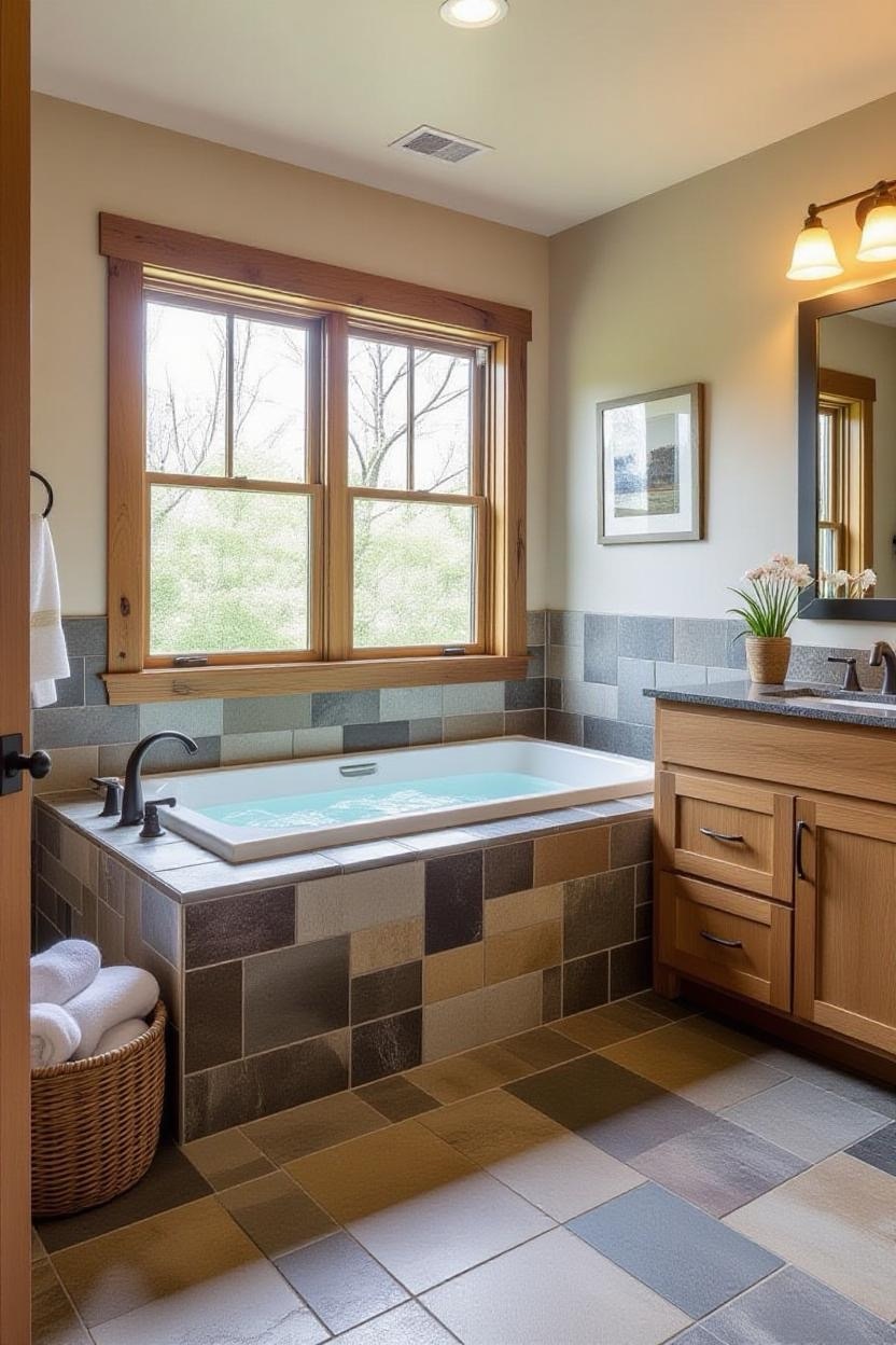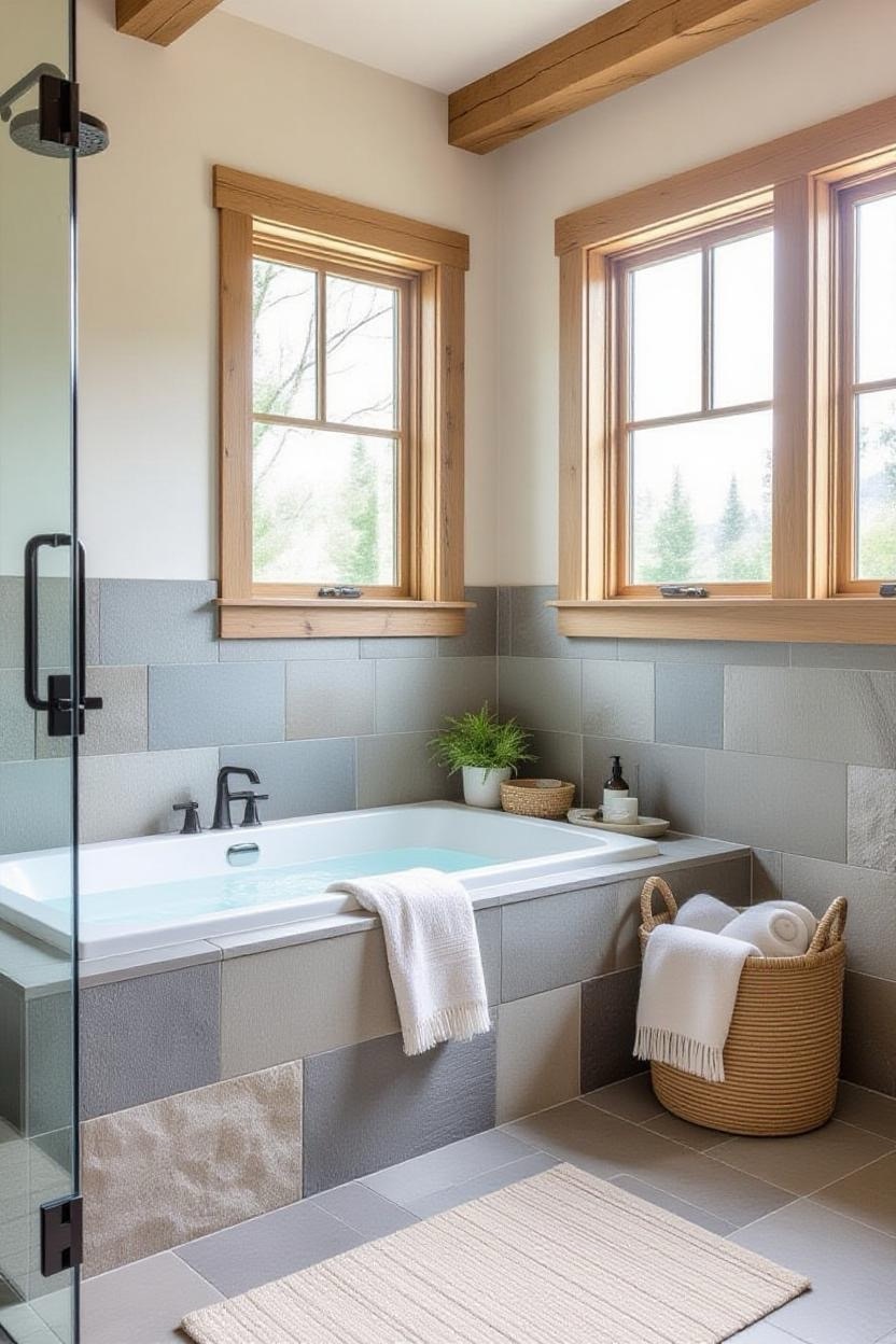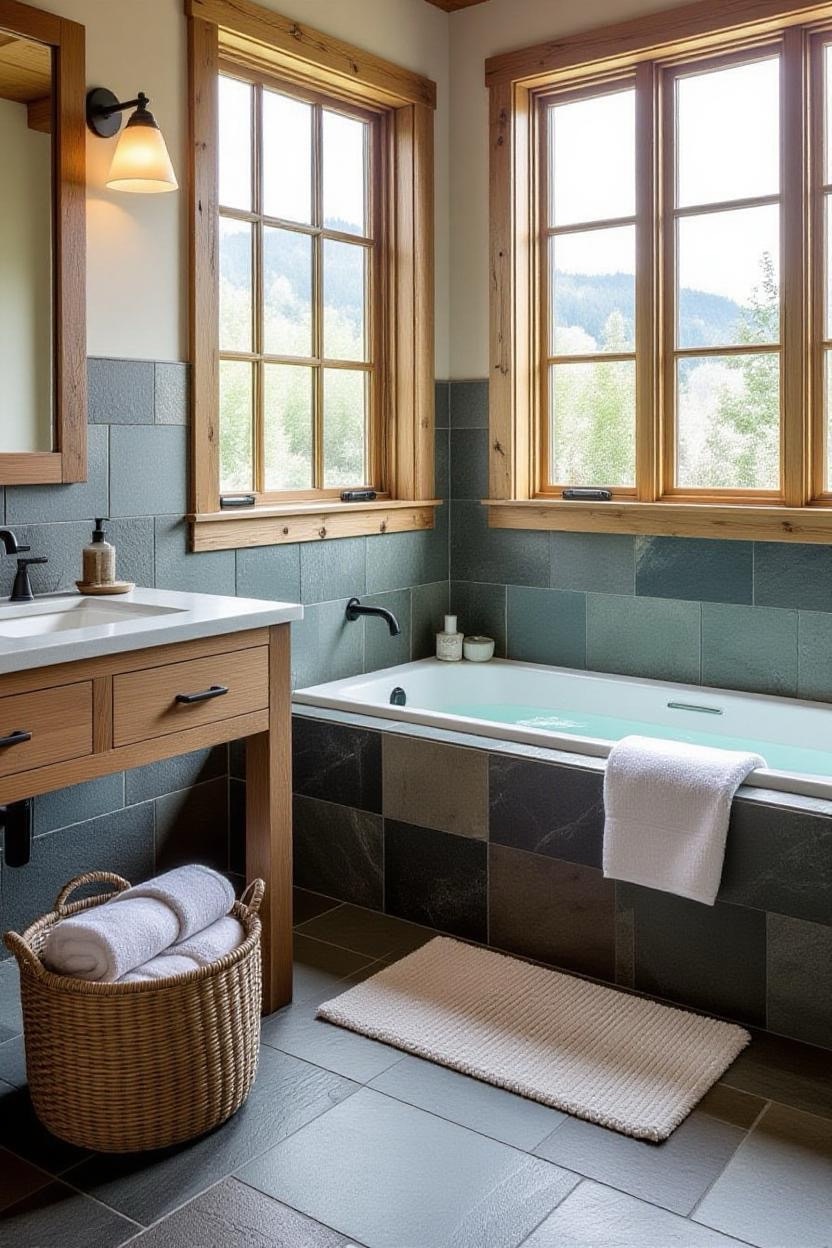 Bring the outdoors in with stone tiles in shades of slate, granite, or travertine. These natural textures create a calming spa-like atmosphere and are perfect for rustic or organic modern bathrooms.