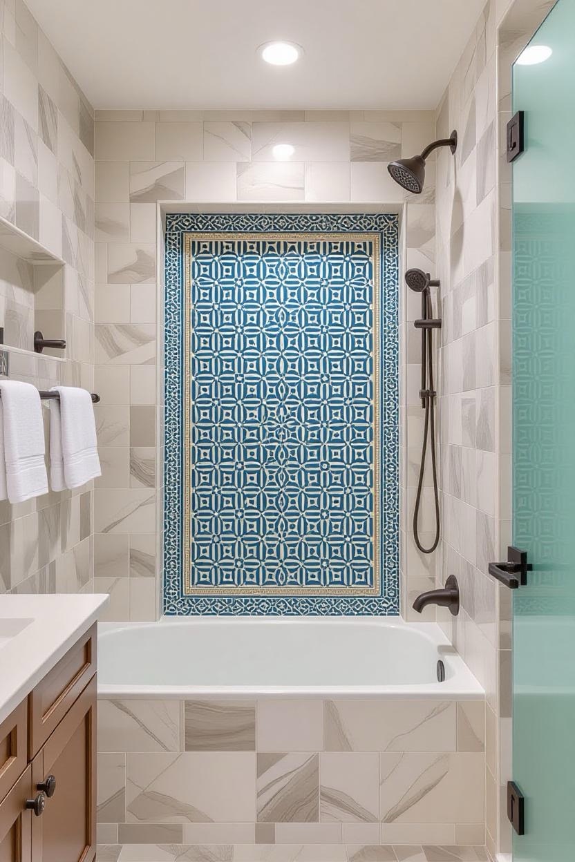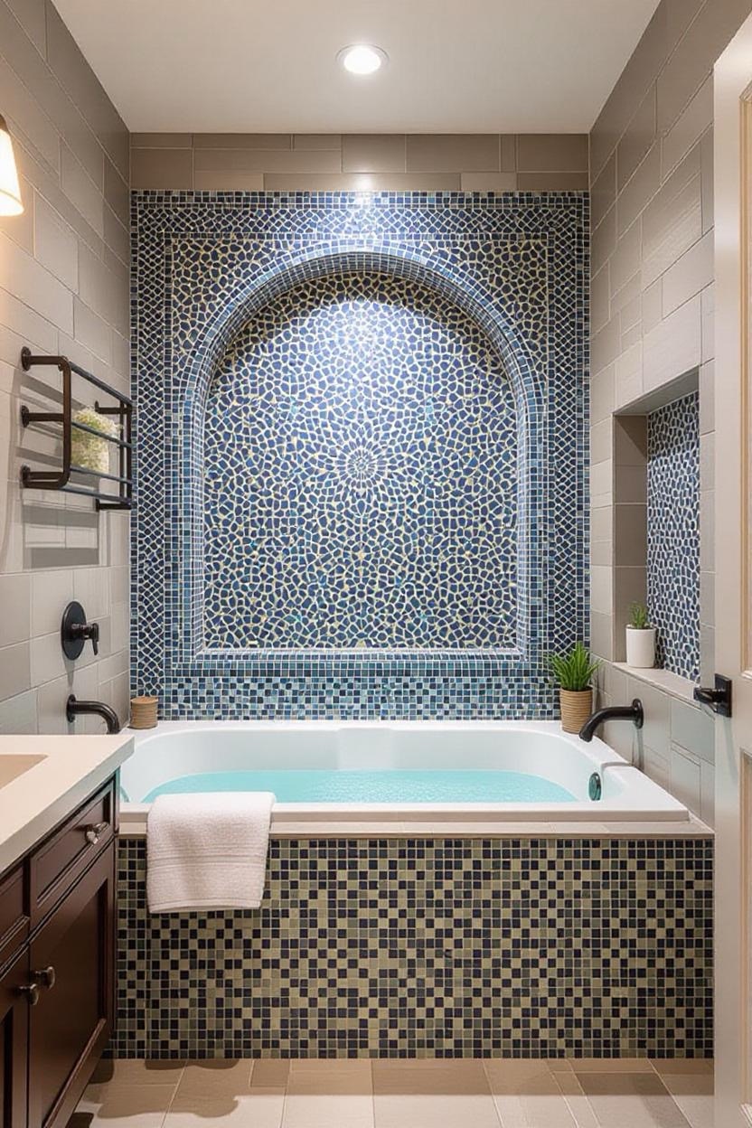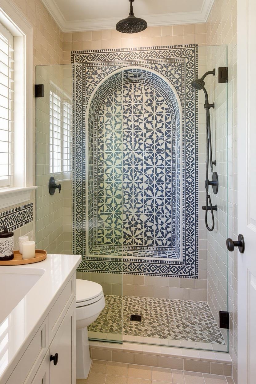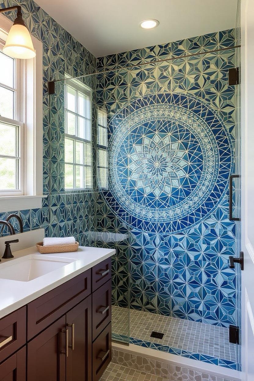 Mosaic tiles allow you to create intricate designs, from geometric patterns to artistic murals. They’re perfect for adding detail to shower niches, backsplashes, or statement walls.