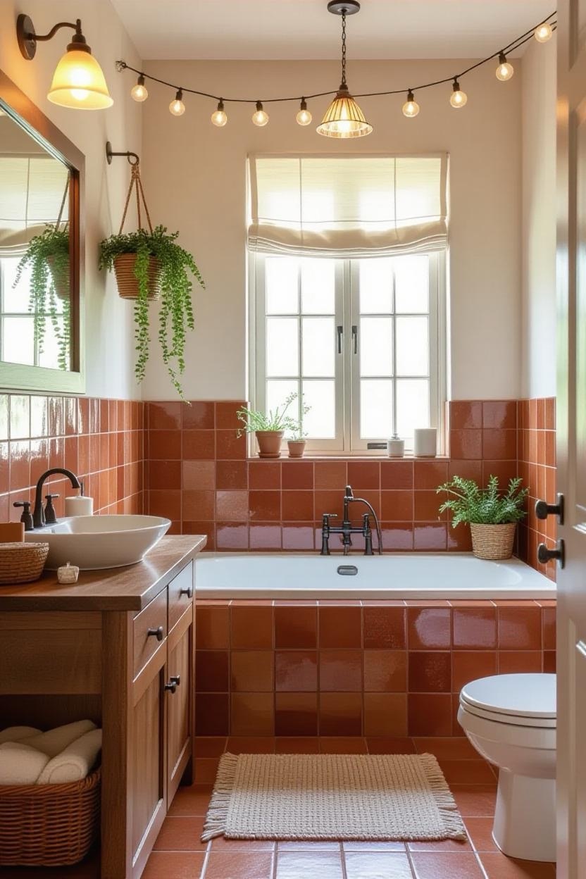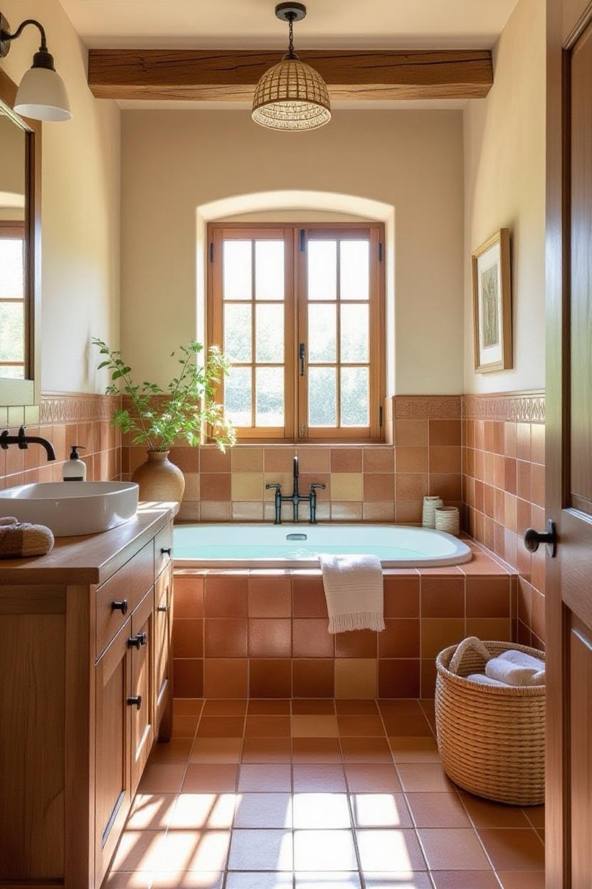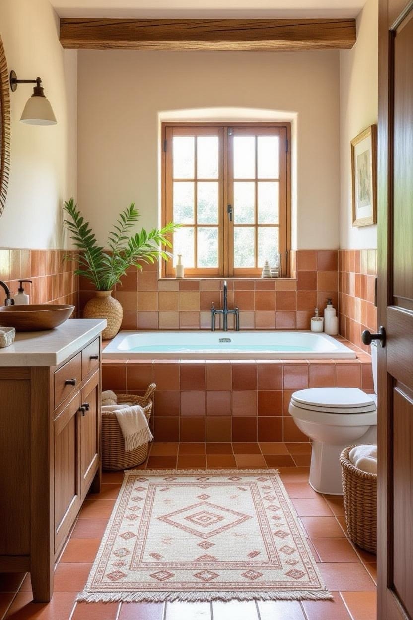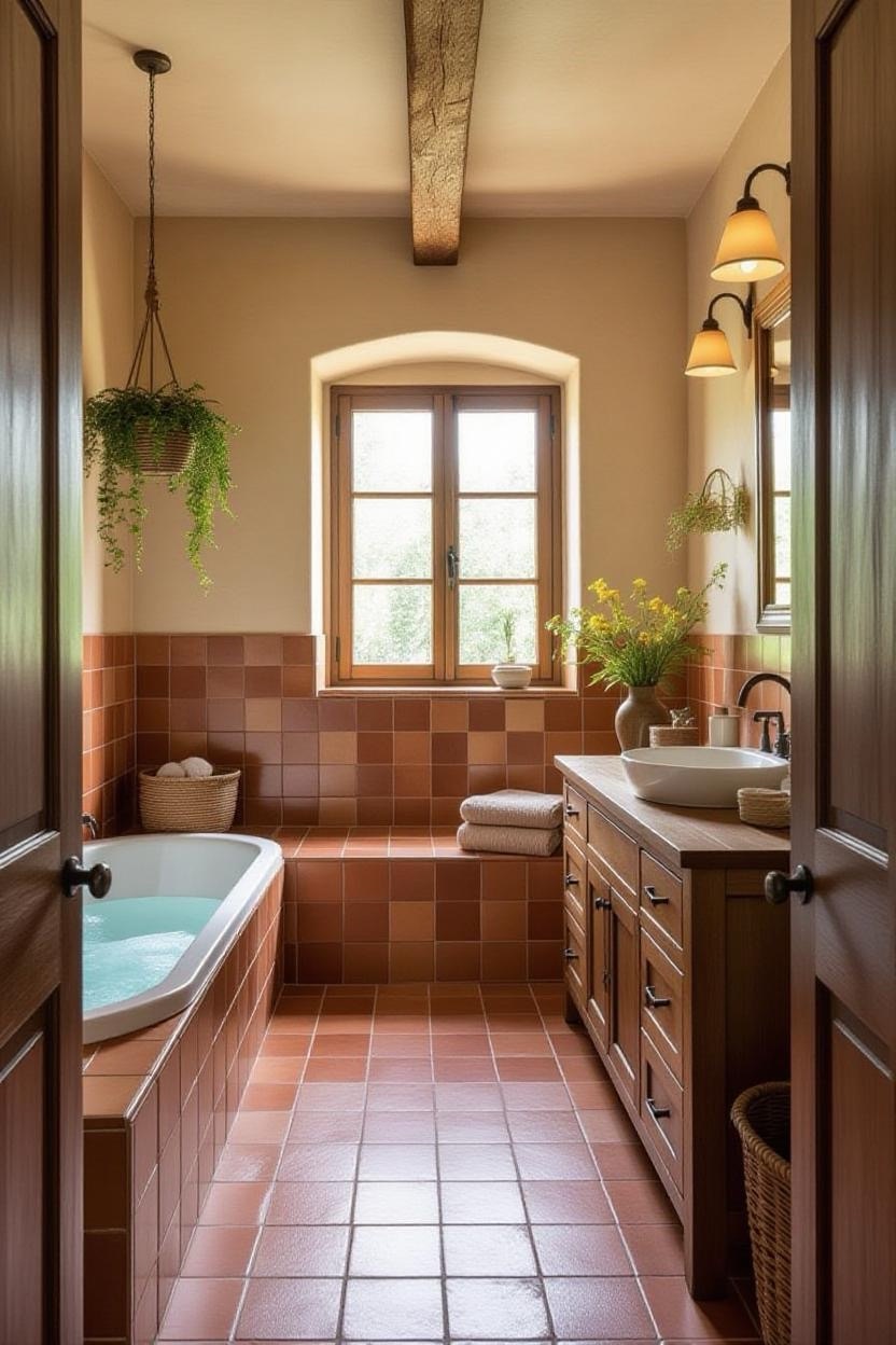 Terracotta brings earthy warmth and a rustic charm to bathrooms. Perfect for Mediterranean or farmhouse-inspired spaces, these tiles feel cozy and inviting.