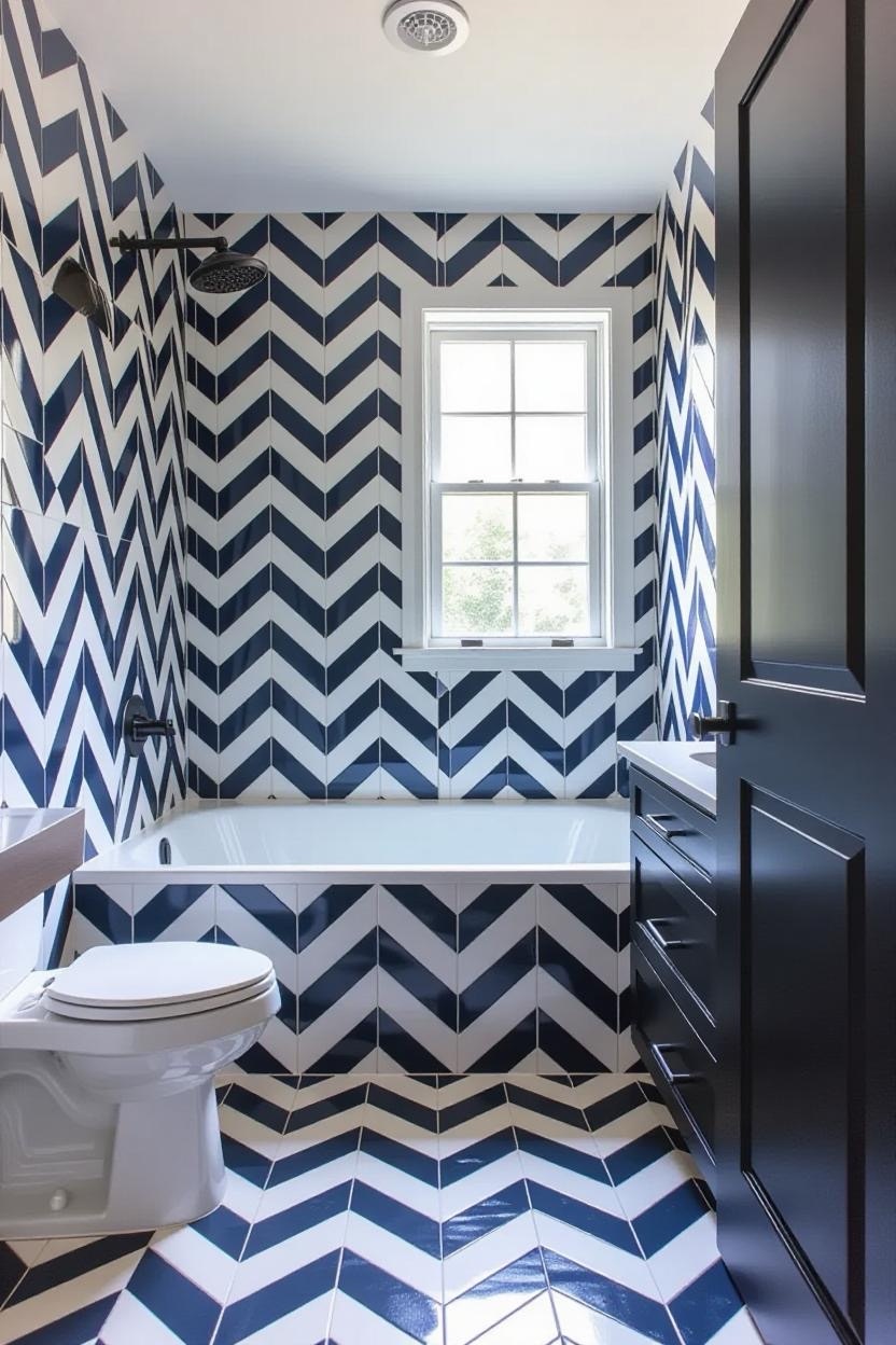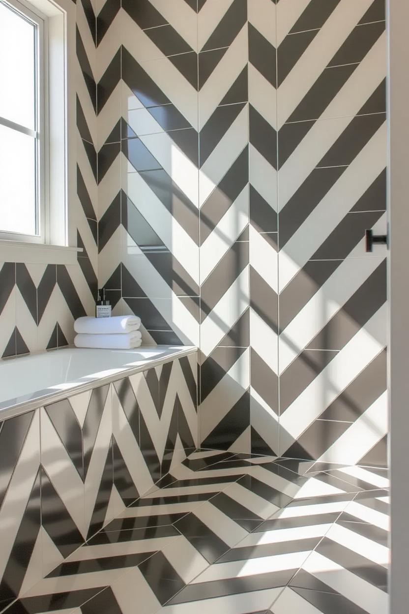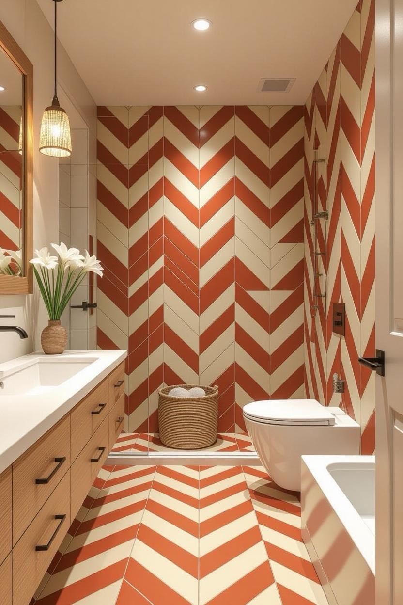 Similar to herringbone but with a sharp, angular layout, chevron tiles add a contemporary, energetic vibe. They look striking in both monochrome and colorful palettes.