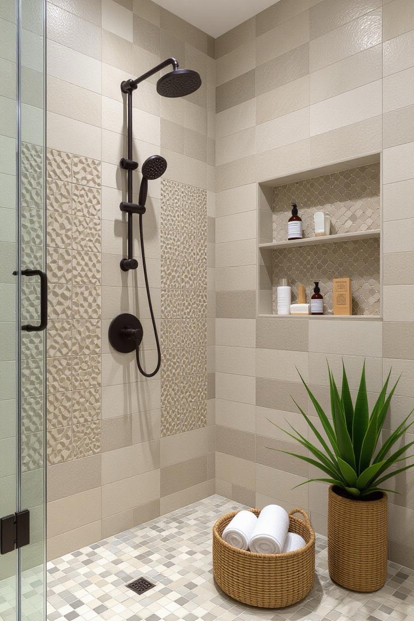 Tiles with raised patterns or textures add tactile interest and dimension. They’re ideal for accent walls or shower areas where you want a unique touch.