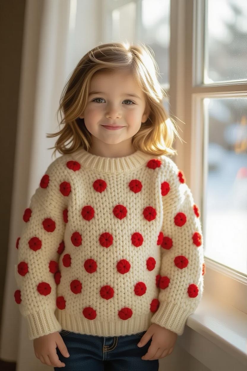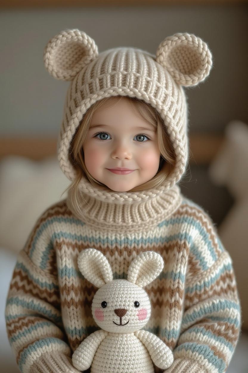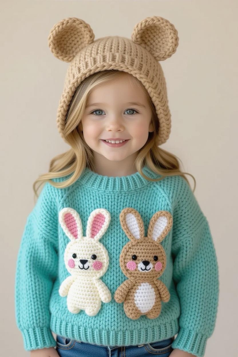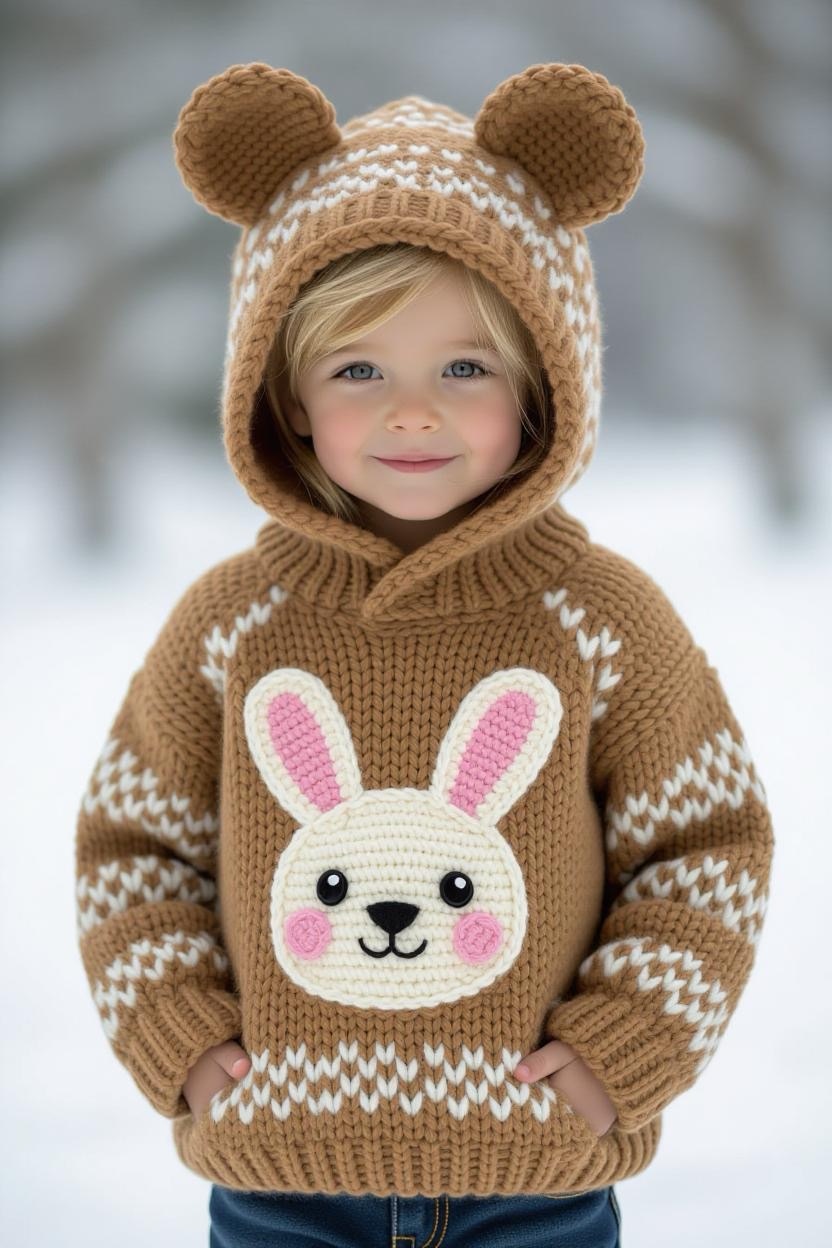 From cute bear ears to bunny motifs, animal-themed sweaters add a touch of whimsy. Kids love these playful details, making the sweater a favorite piece in their closet.