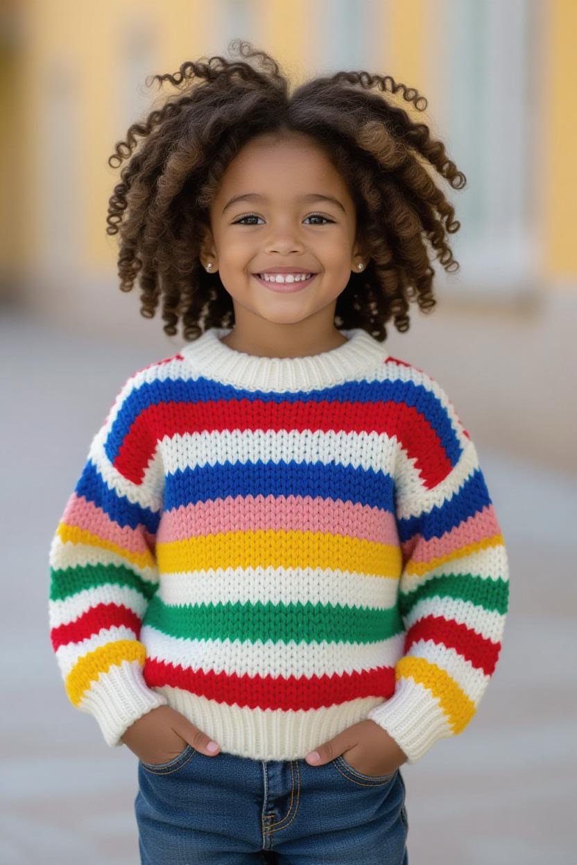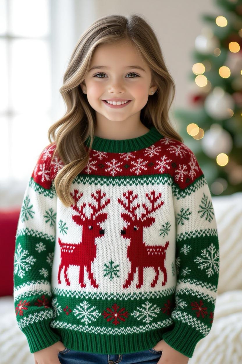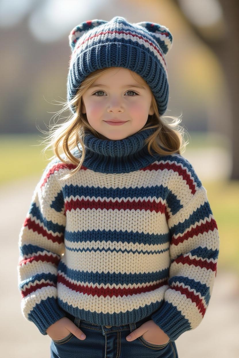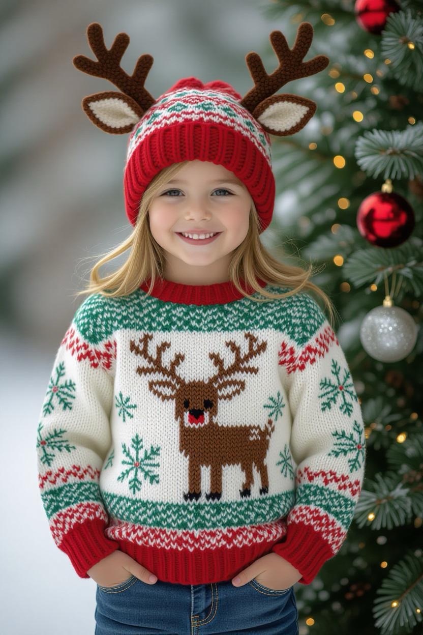 From cute bear ears to bunny motifs, animal-themed sweaters add a touch of whimsy. Kids love these playful details, making the sweater a favorite piece in their closet.