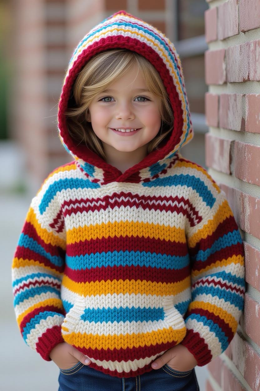 This sweater doubles as a hoodie, making it a practical and stylish choice for kids on the go. The cozy hood adds extra warmth while giving the piece a playful, modern vibe.