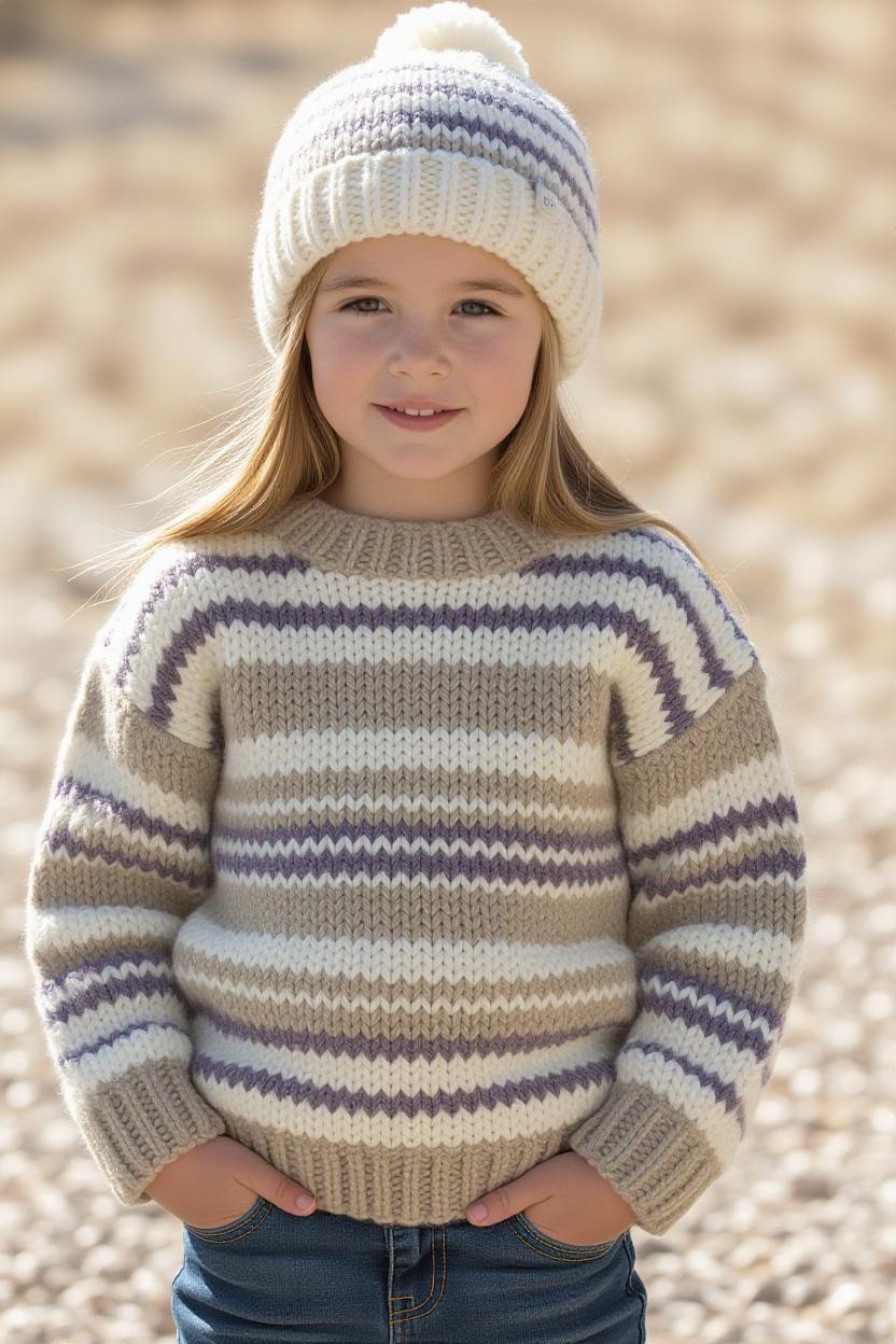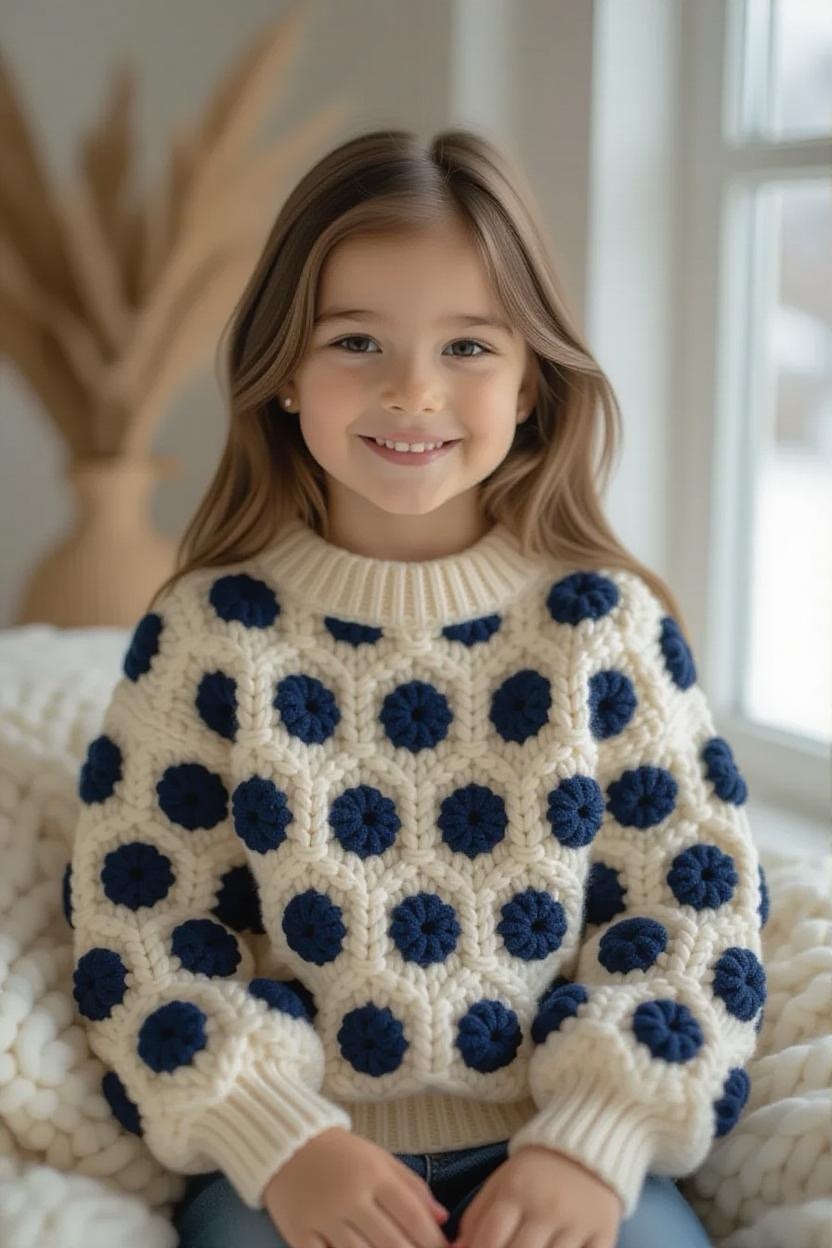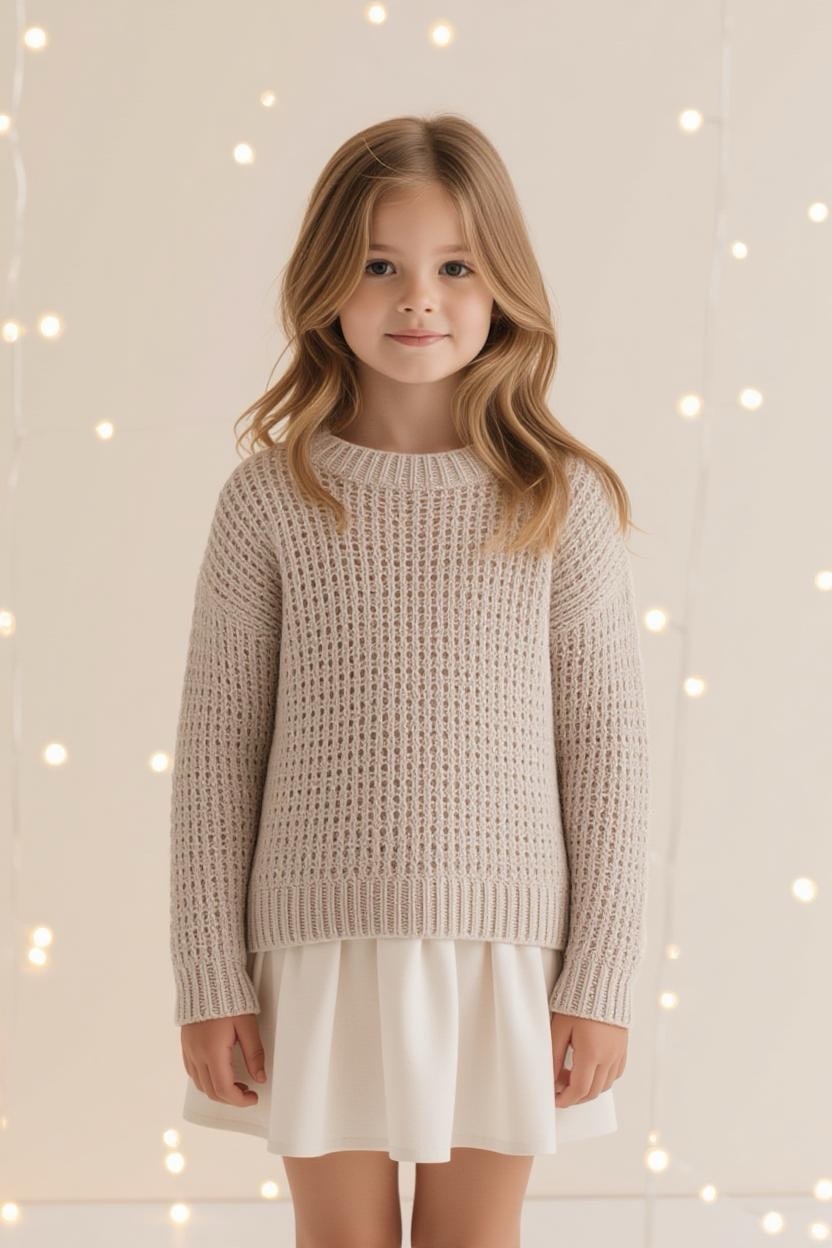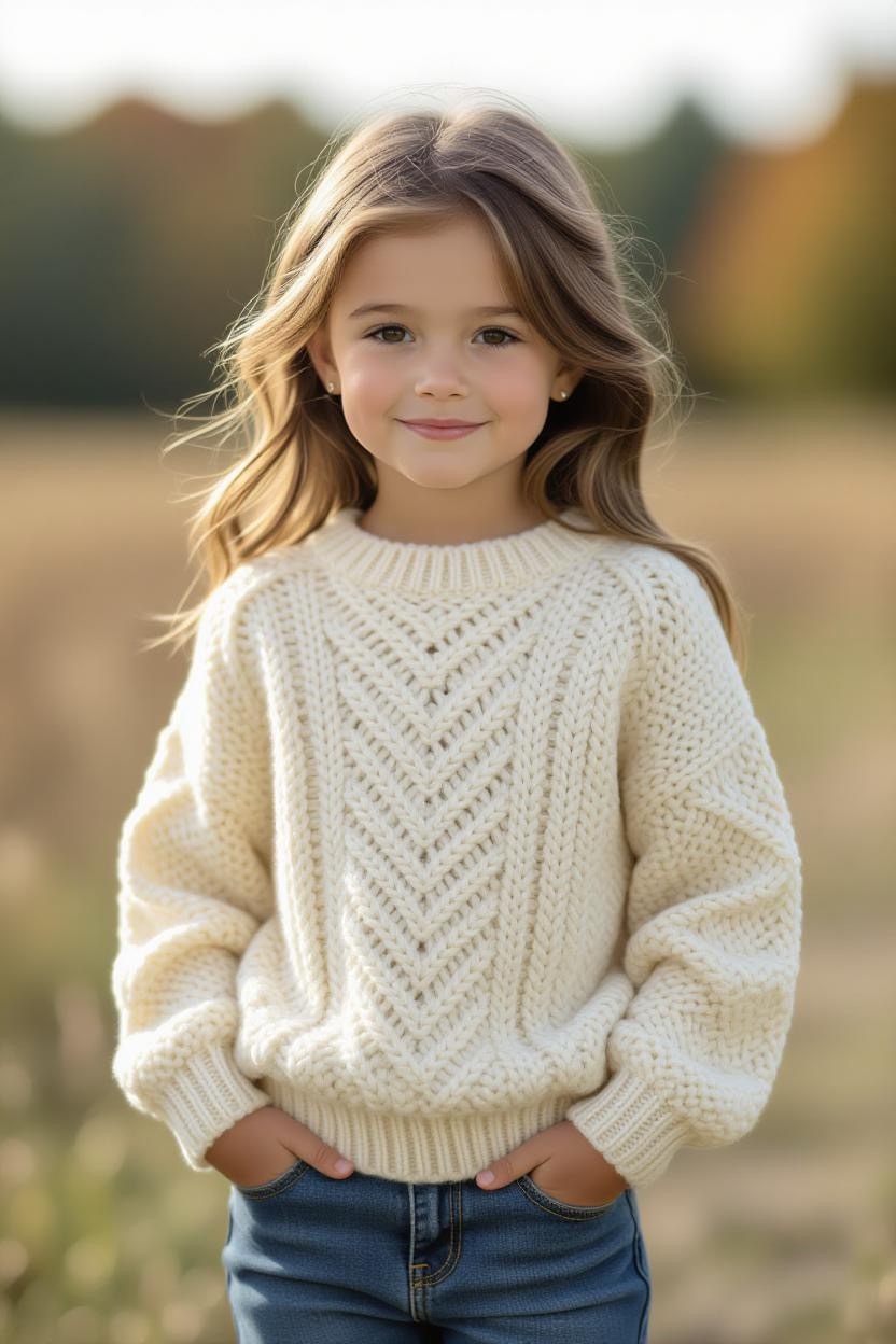 Durable and practical, this sweater pattern is ideal for school wear. Use sturdy yarn and neutral tones for a design that’s both functional and stylish.