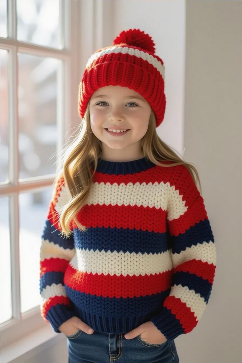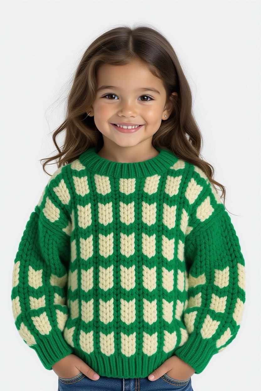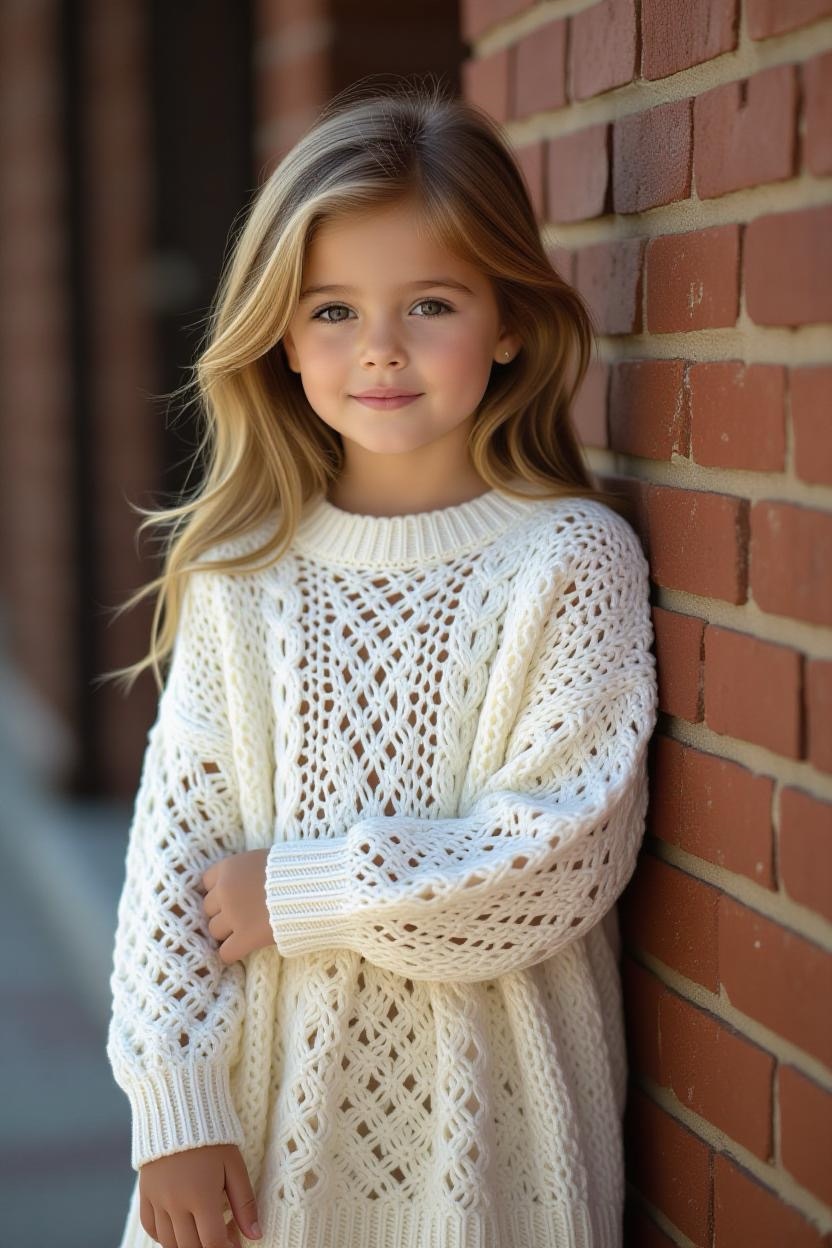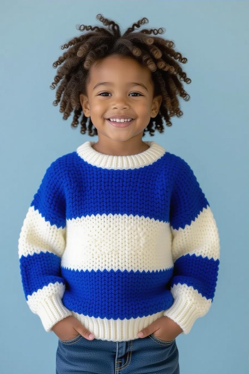 Durable and practical, this sweater pattern is ideal for school wear. Use sturdy yarn and neutral tones for a design that’s both functional and stylish.