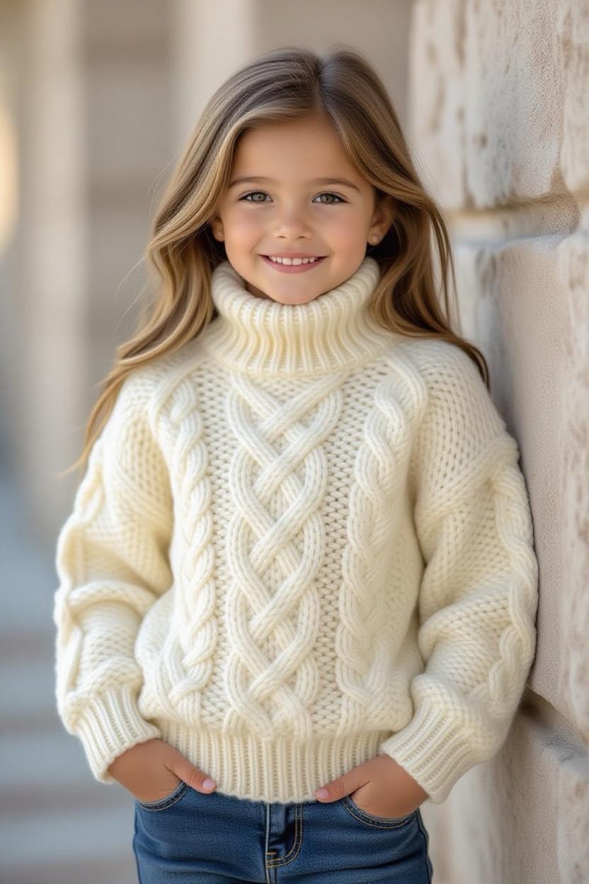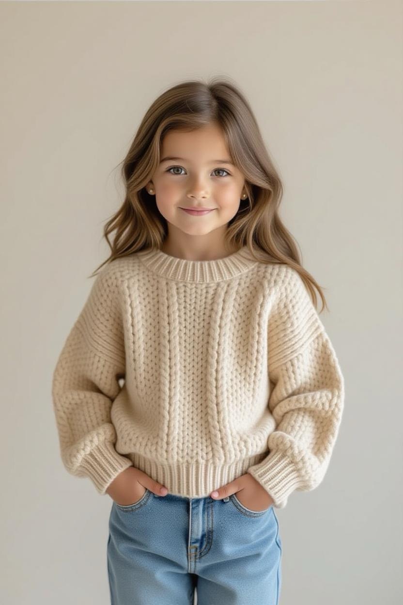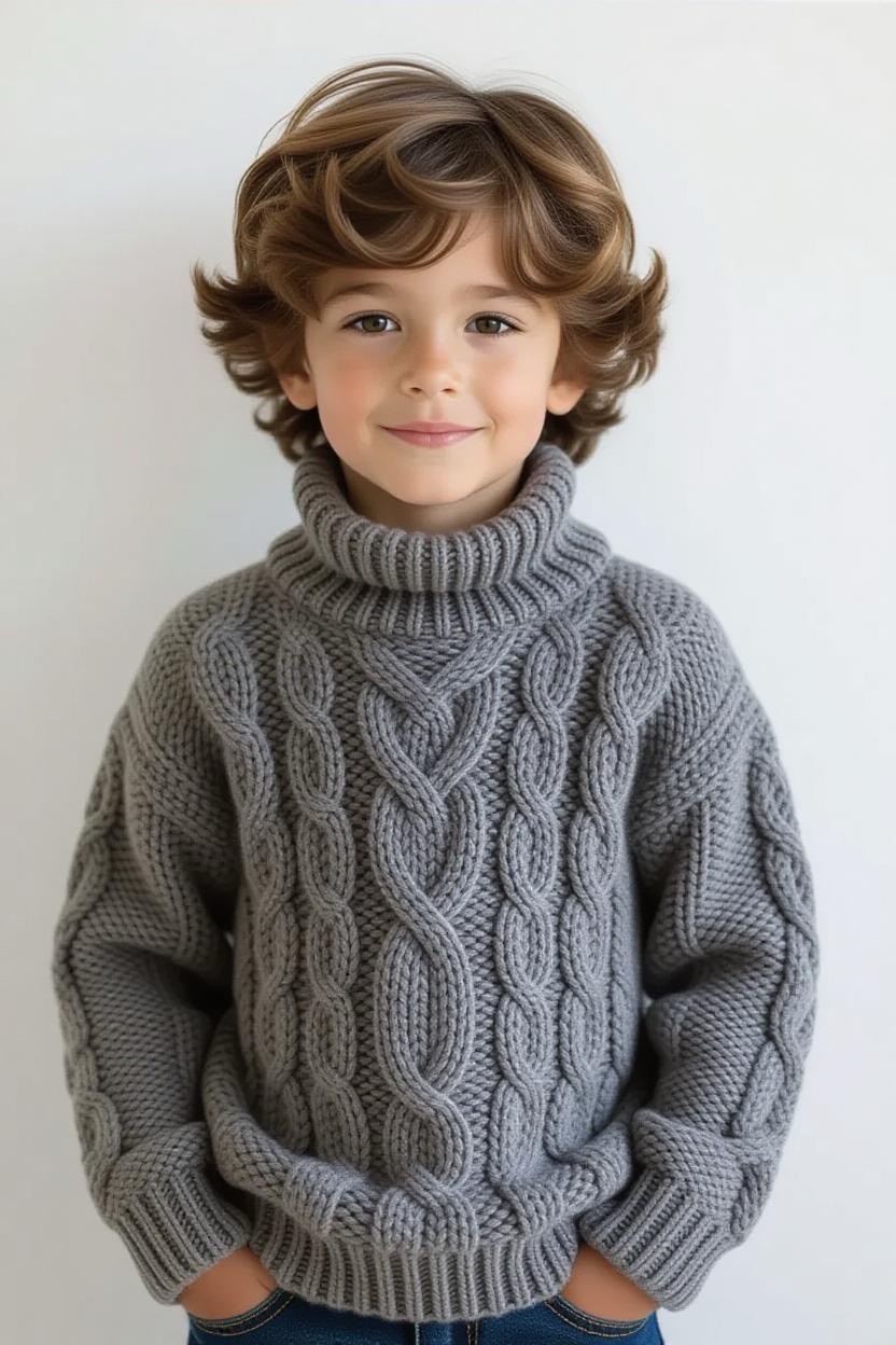 Puff sleeves add a trendy flair to a traditional kids’ sweater. This style balances comfort with fashion-forward design, making it a standout piece.