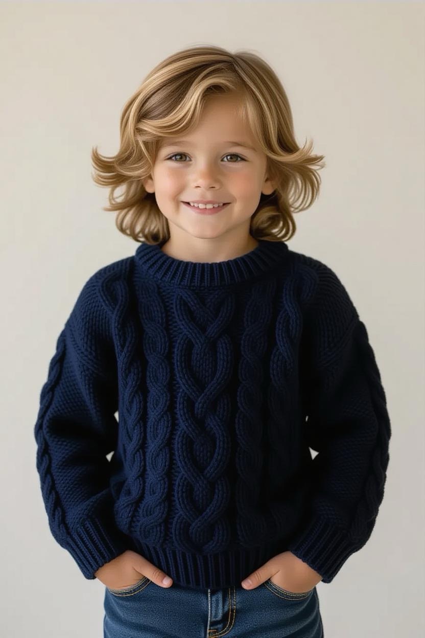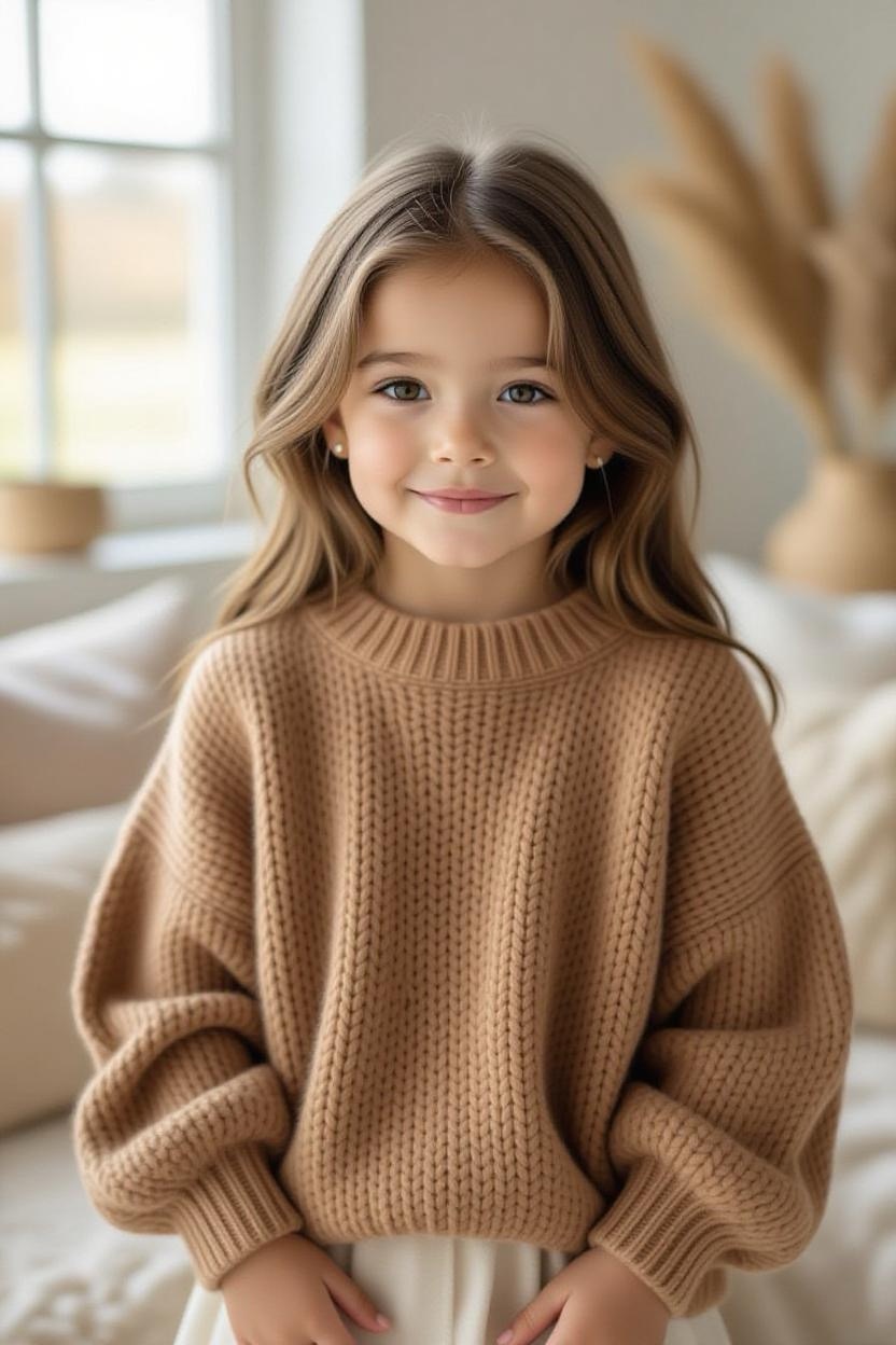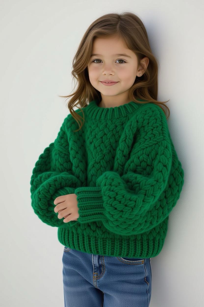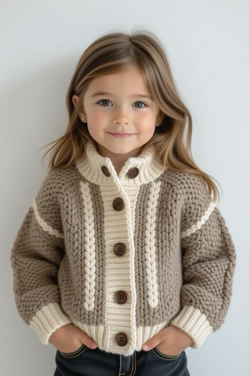 Puff sleeves add a trendy flair to a traditional kids’ sweater. This style balances comfort with fashion-forward design, making it a standout piece.