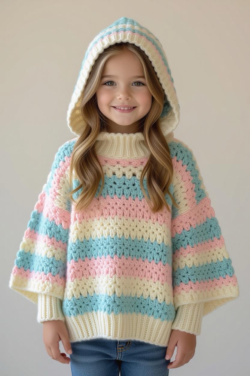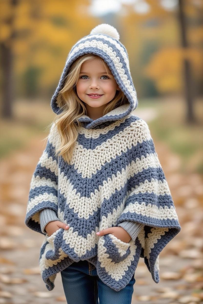 A poncho-inspired sweater provides comfort with plenty of movement. This style is great for active kids while still keeping them warm and stylish.